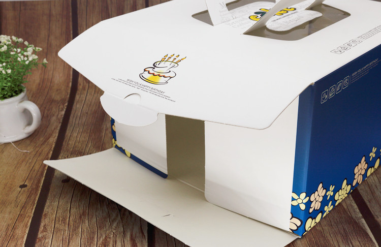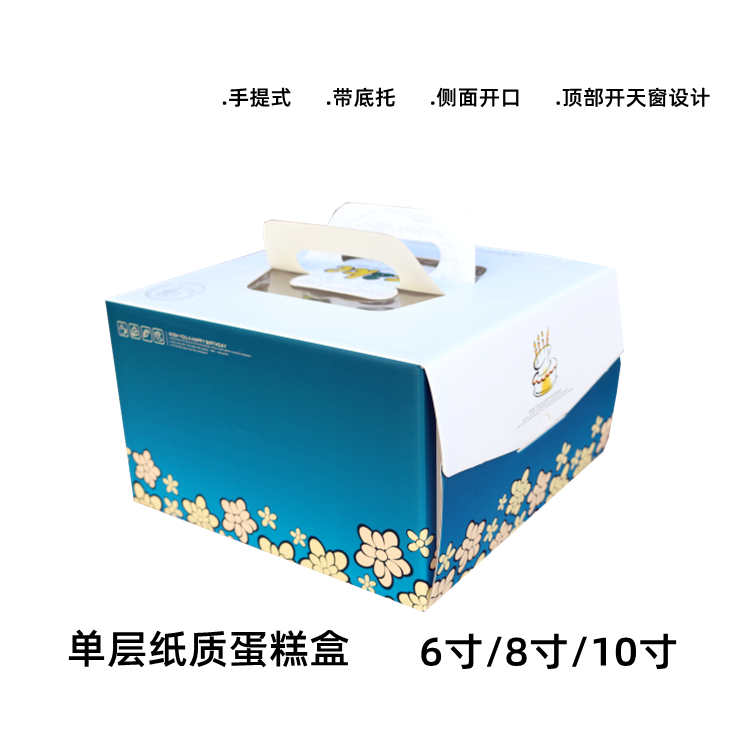蓝色小花 手提纸质单层蛋糕盒 6/8/10寸 生日蛋糕包装盒 带底托