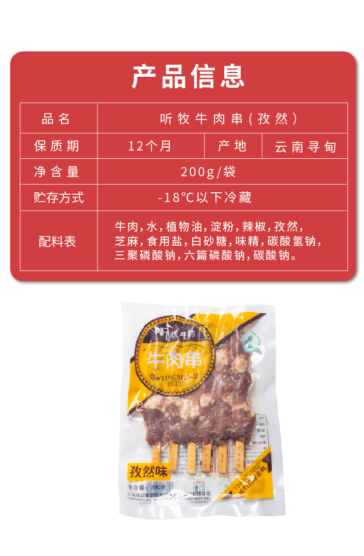 听牧牛肉串(中) 200g/袋(签子尖运输易戳破,介意慎拍)