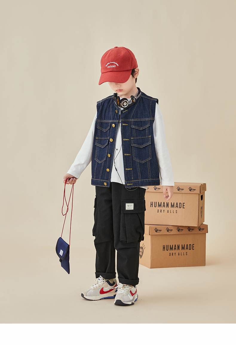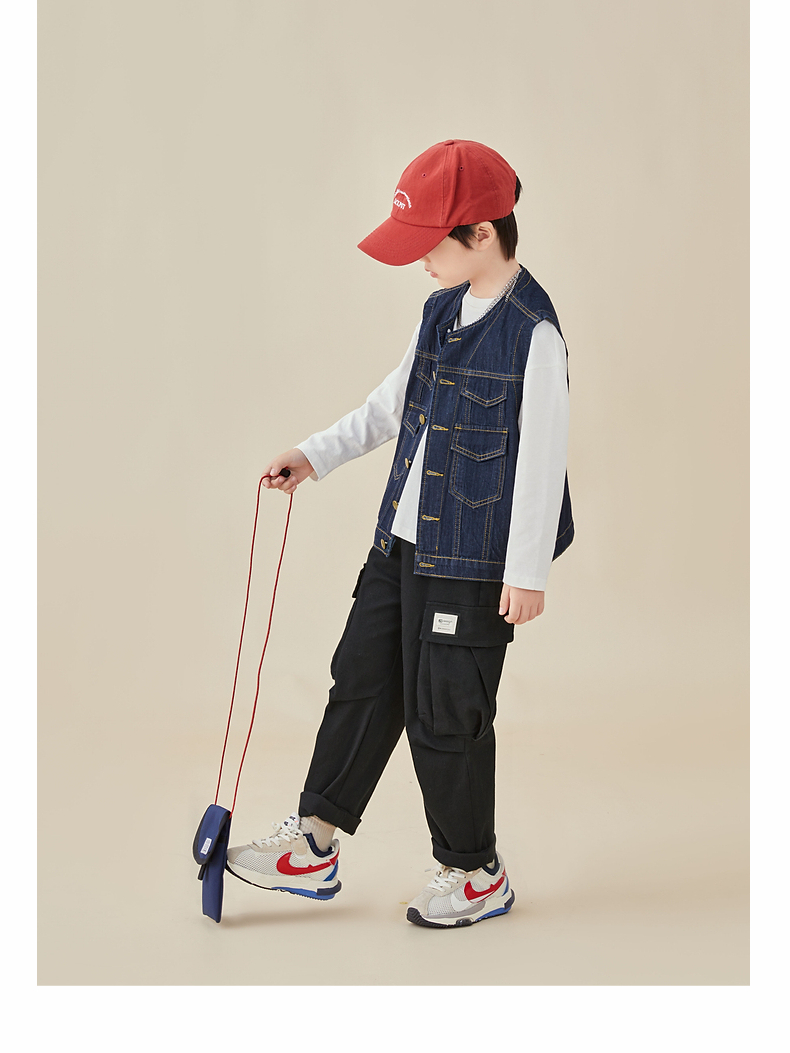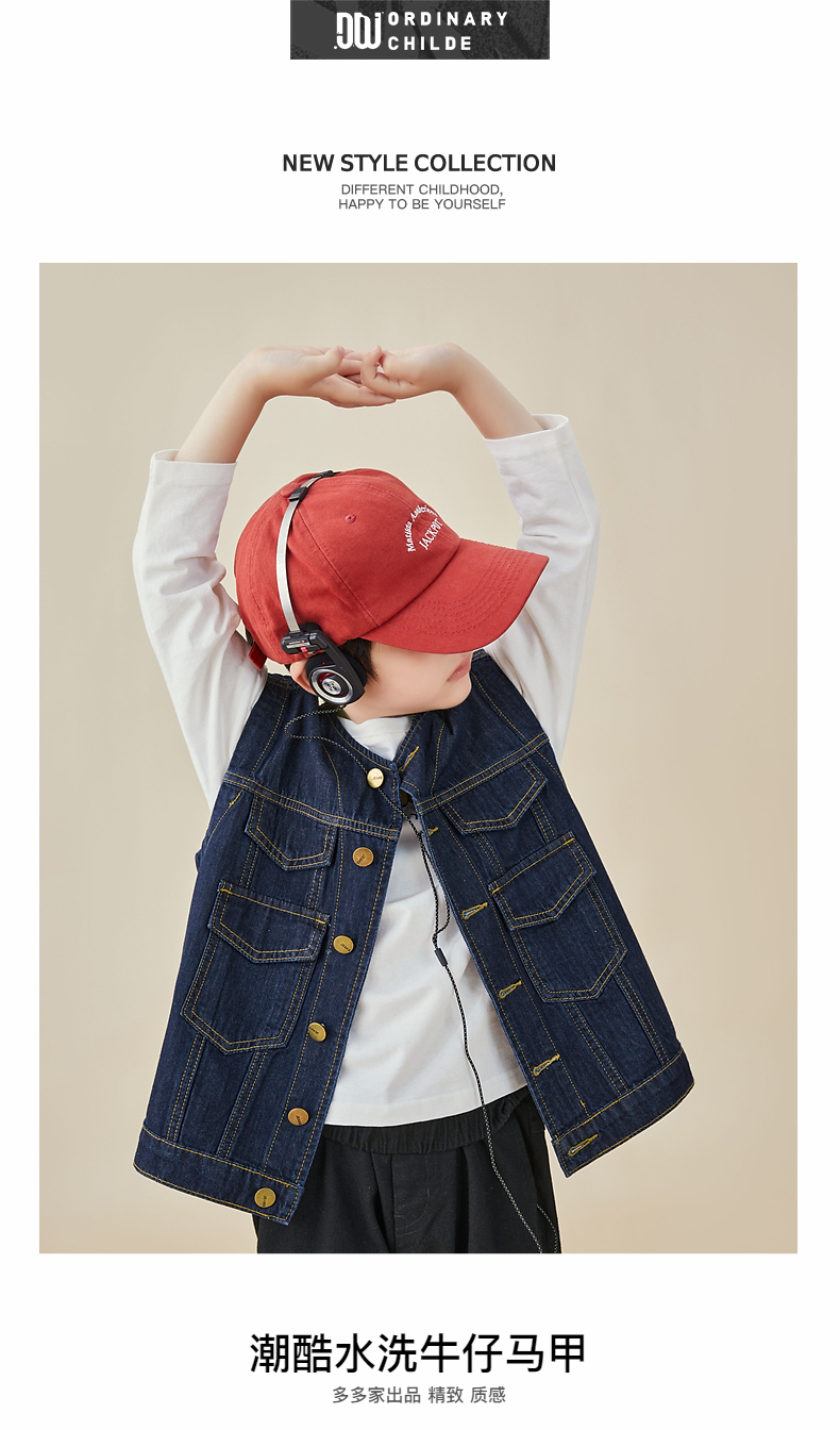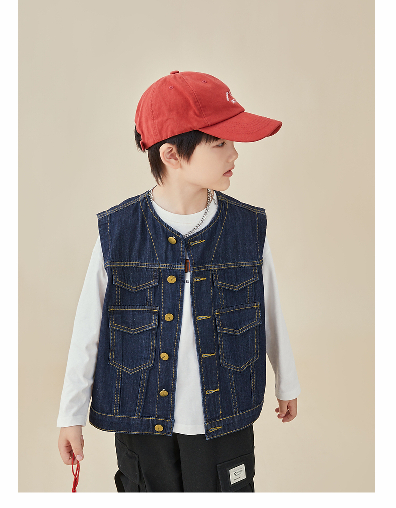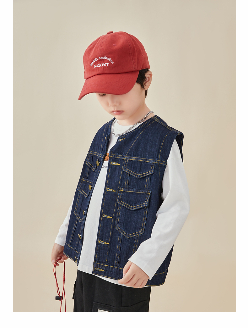 【专区任选2件减10】多多家童装男童牛仔马甲春秋简约时尚潮酷儿童背心宽松中大童秋装8005