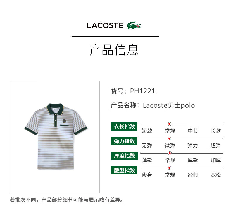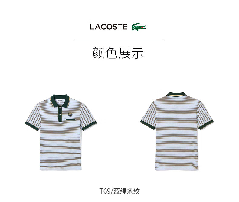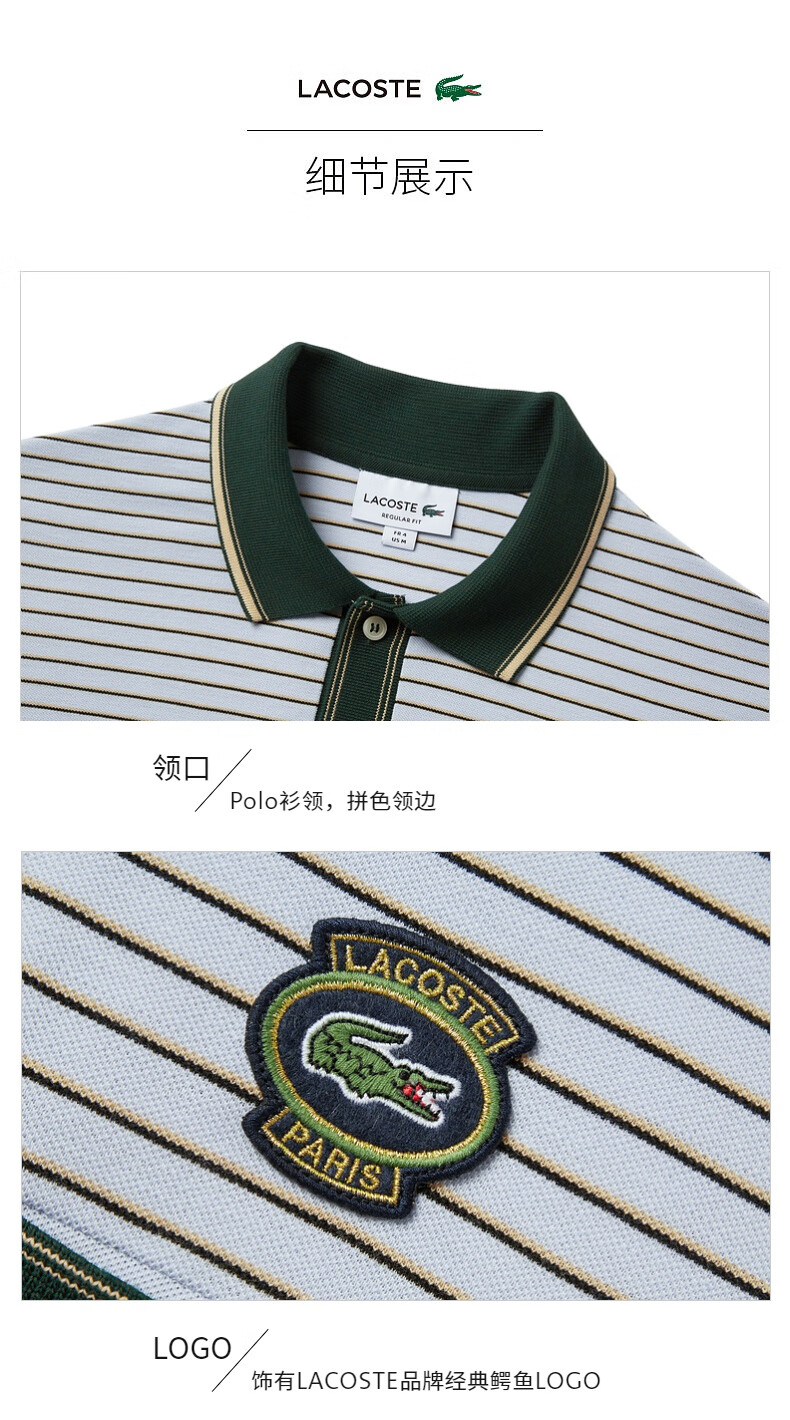 Lacoste法国鳄鱼男士短袖新款时尚条纹简约短袖POLO衫PH1221-10