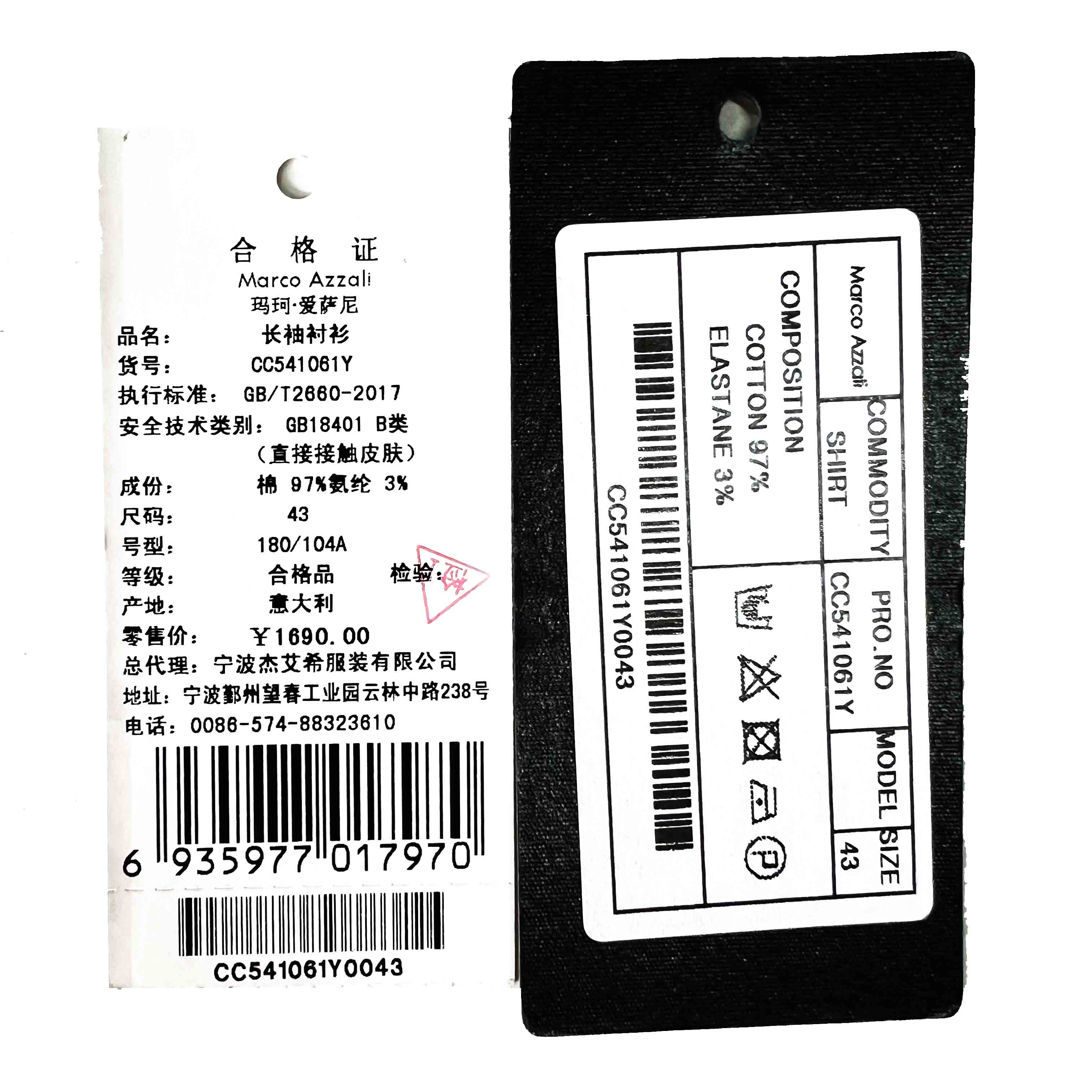 MARCO AZZALI 男士长袖衬衫 CC541061Y