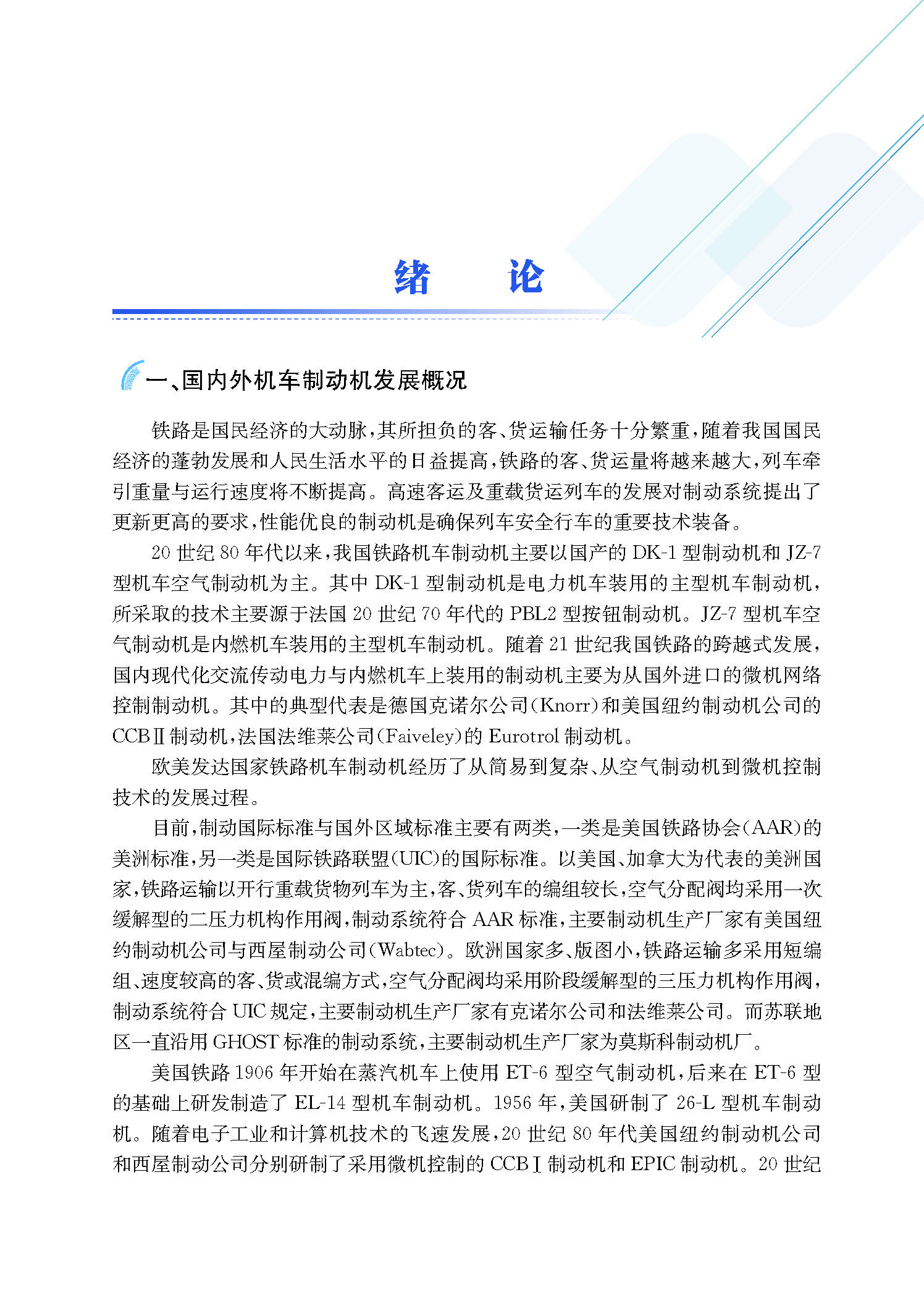 重载和高速是铁路运输的发展方向,性能先进的机车制动机系统是提高列车运行速度和牵引重量不可缺少的关键系统,性能优良的制动系统是确保列车安全行车的重要技术装备。