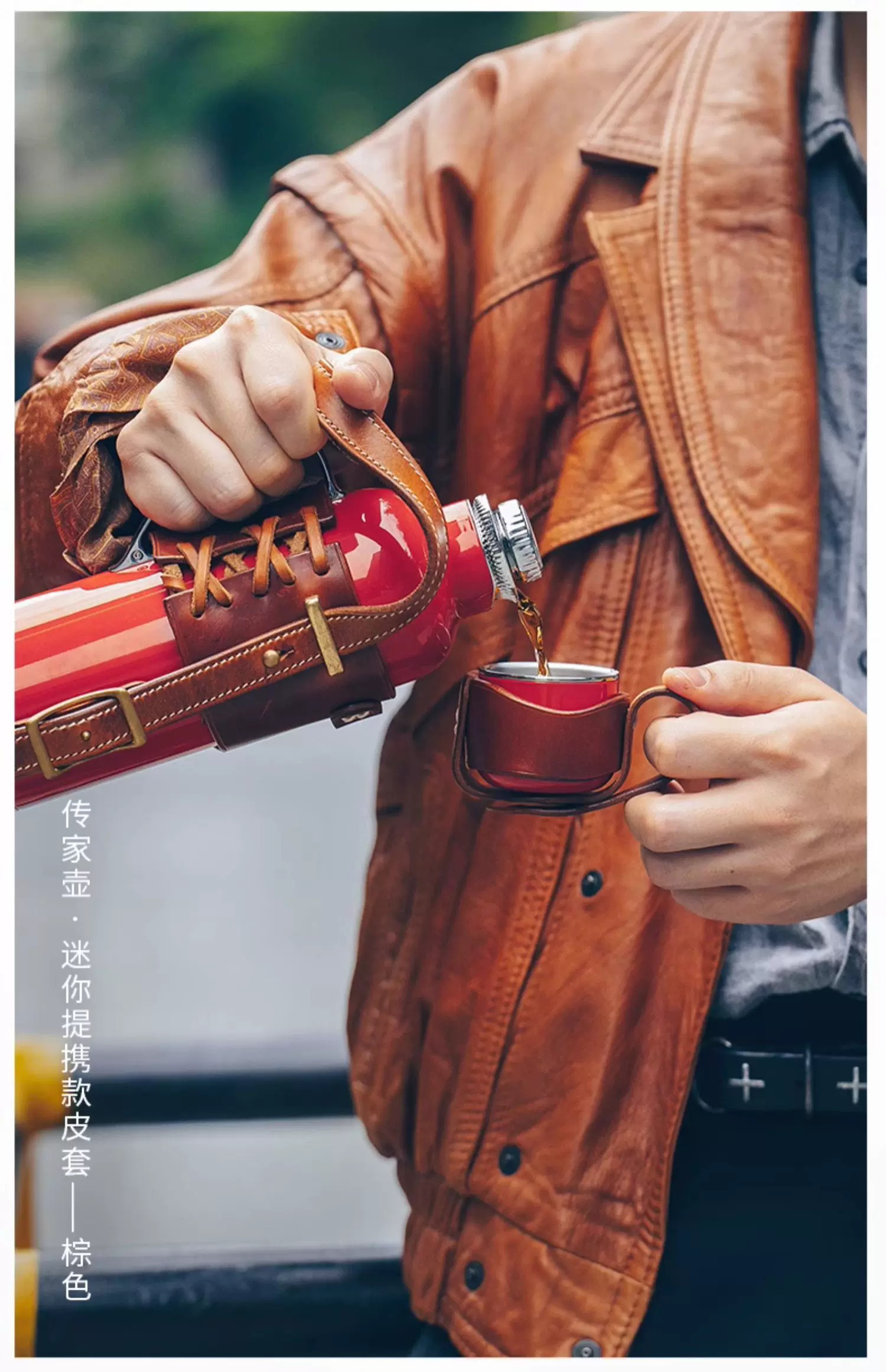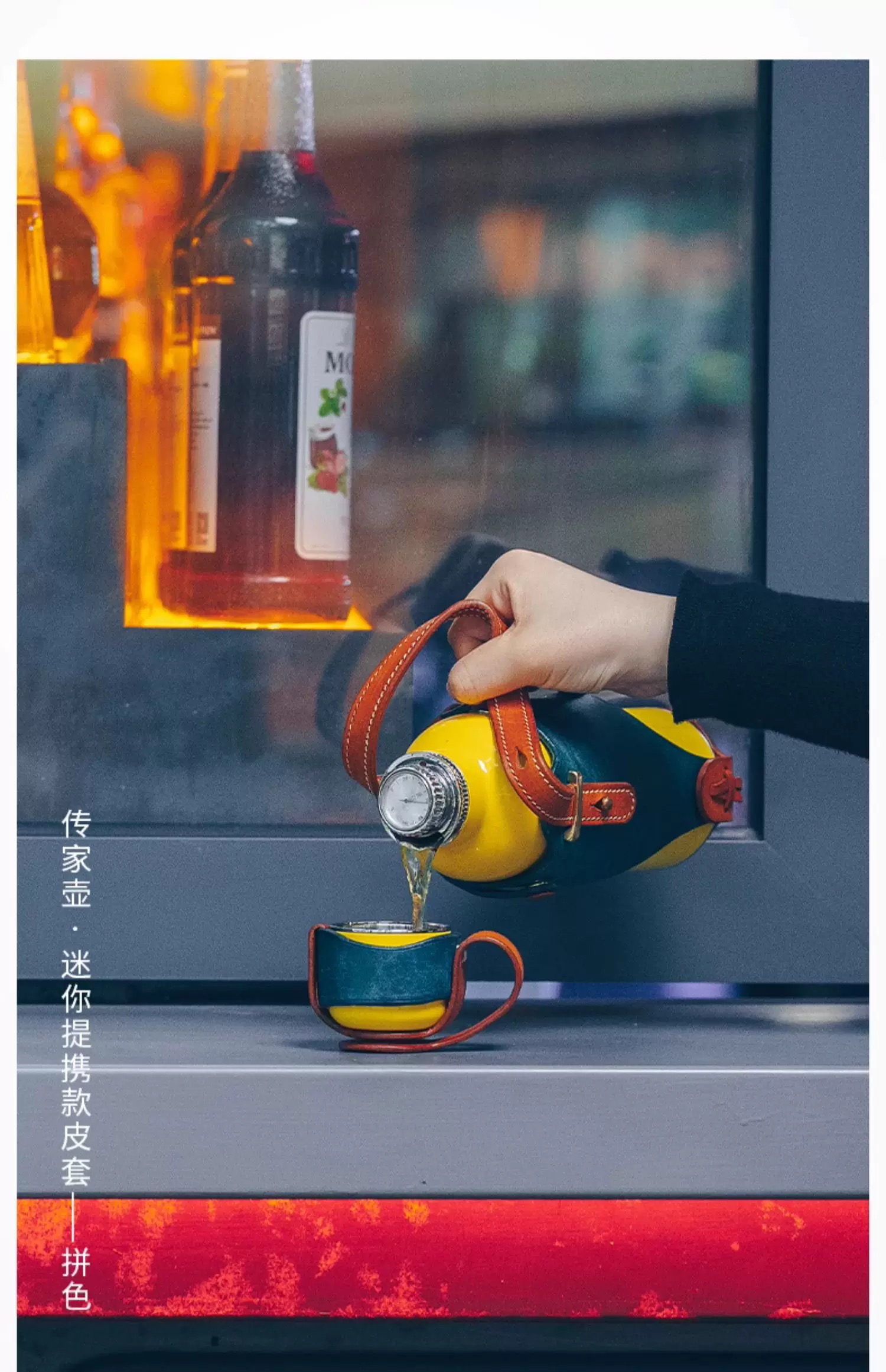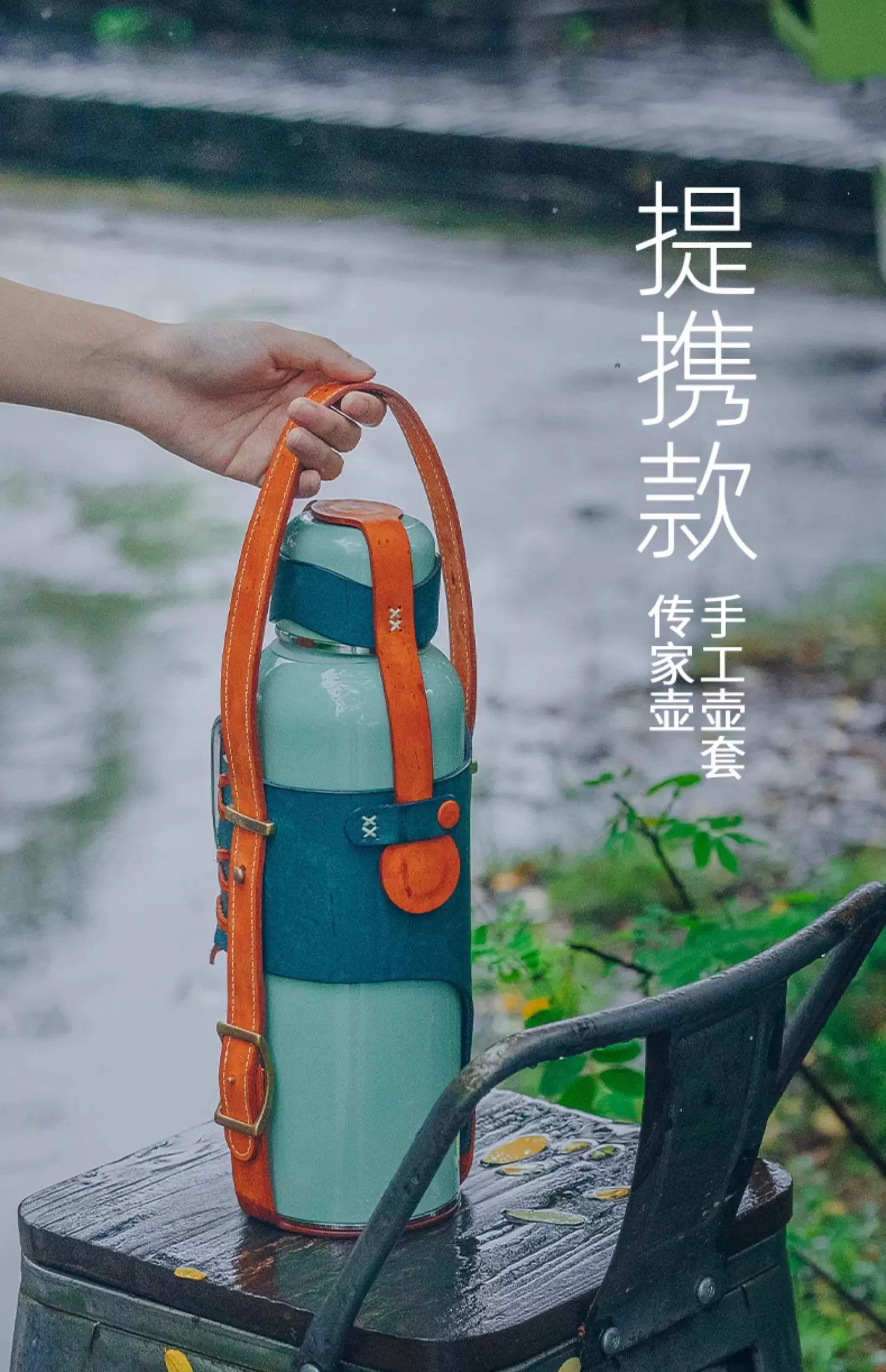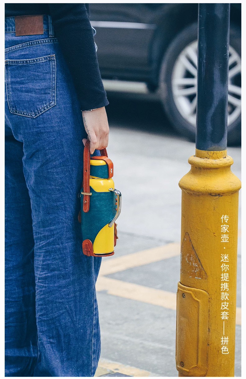 学古|提携 传家壶手工皮套 意大利头层牛皮便携手拎露营拼色纯色
