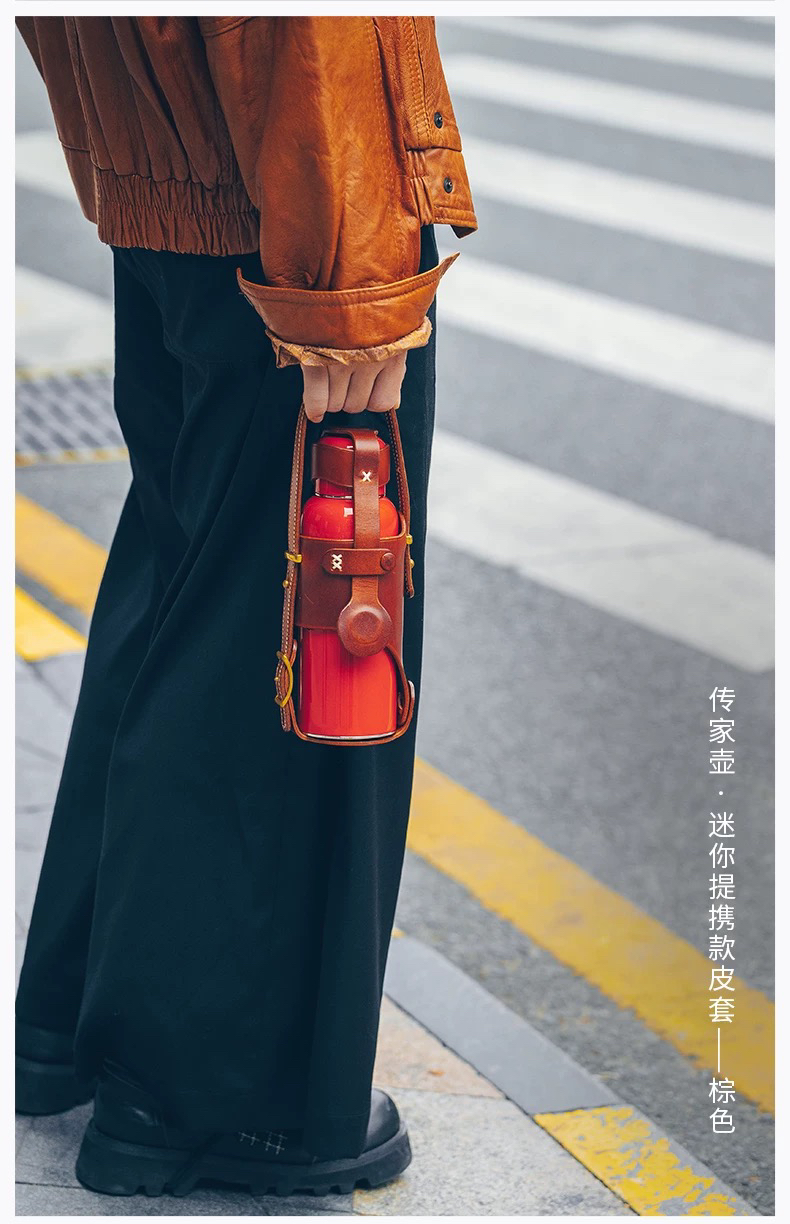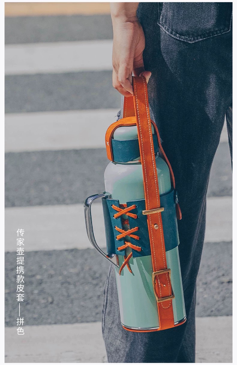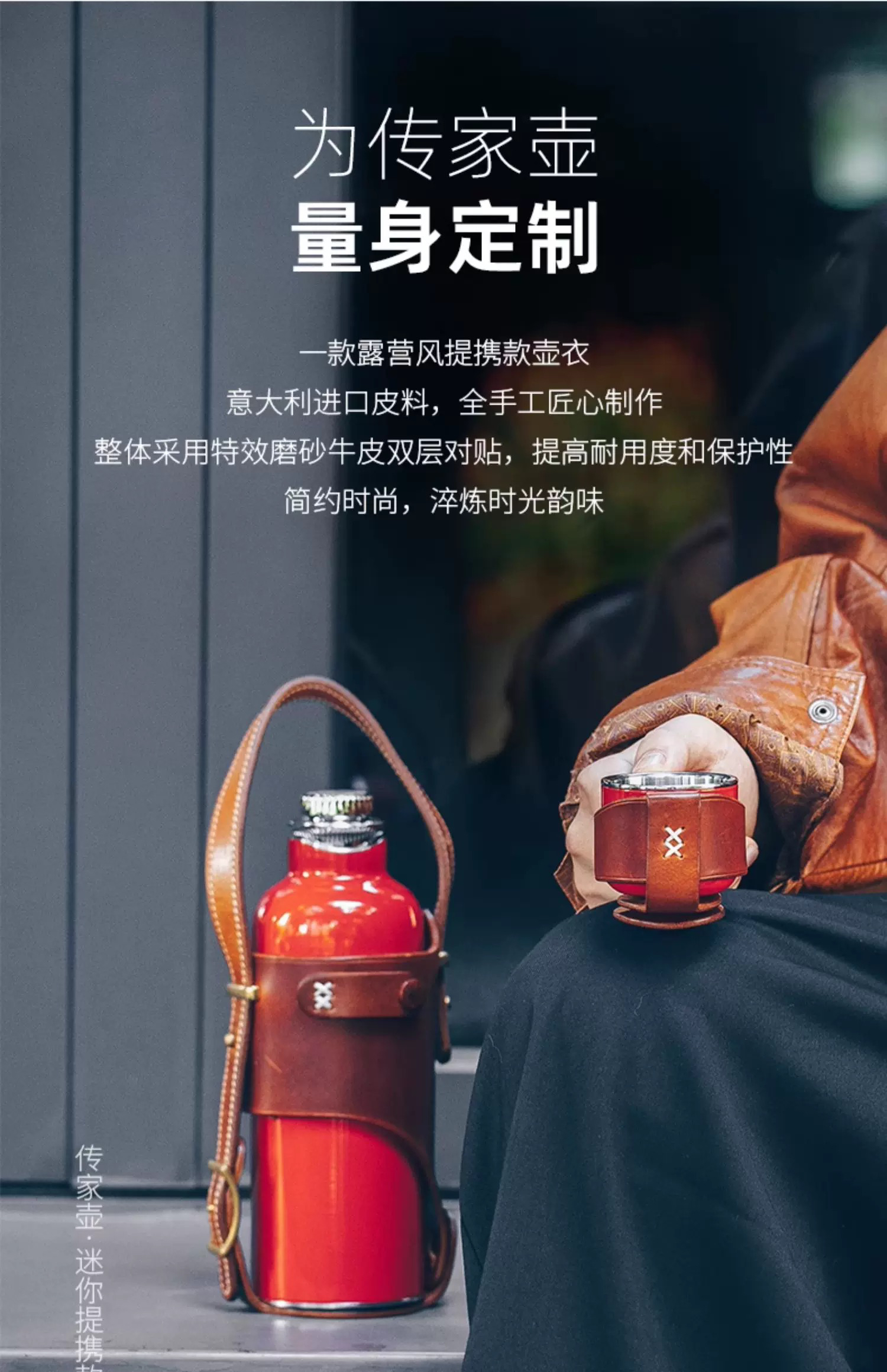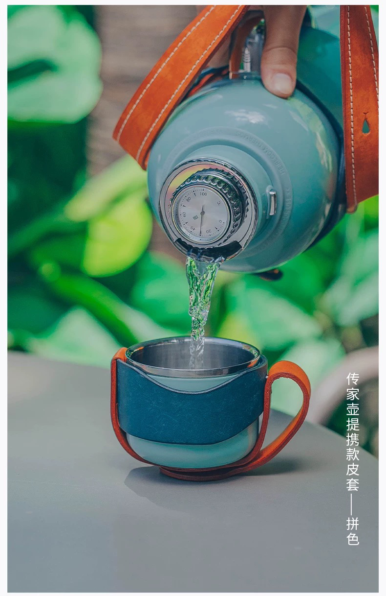 学古|提携 传家壶手工皮套 意大利头层牛皮便携手拎露营拼色纯色