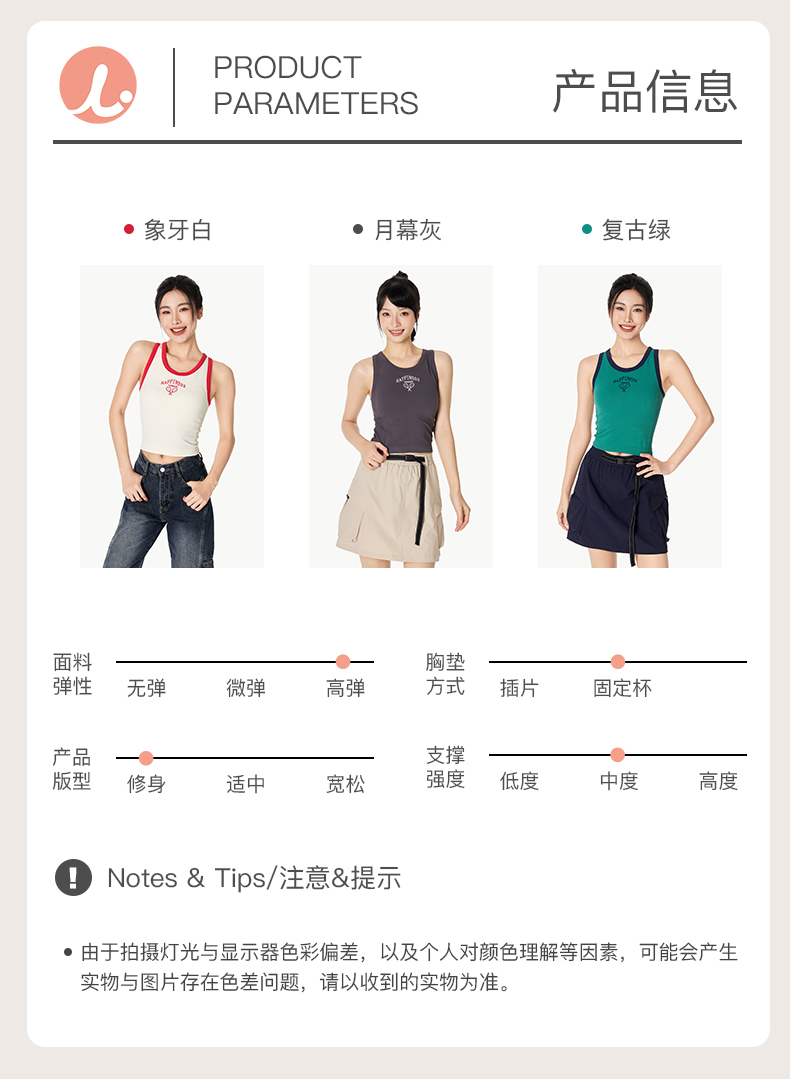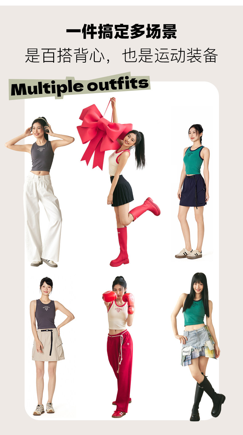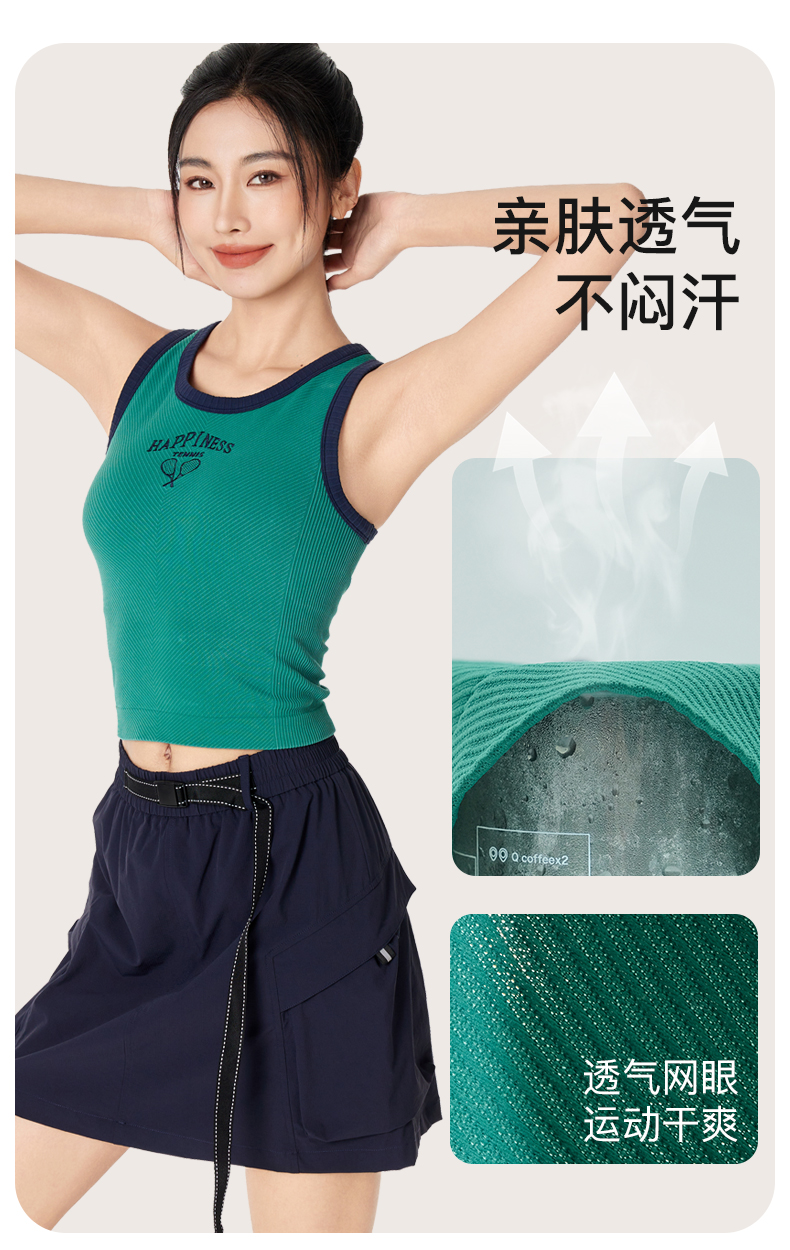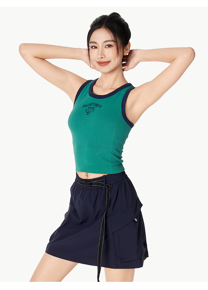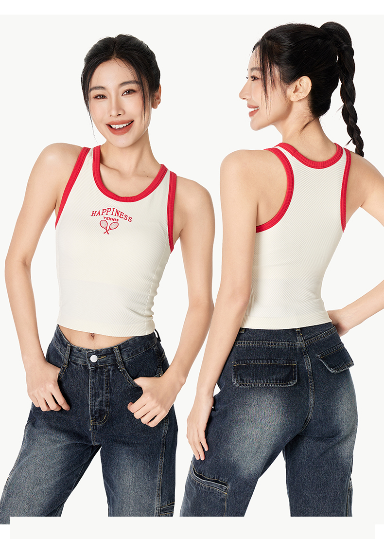Leorrey/乐拉一体织中强度高弹撞色亲肤透气运动背心复古风WX1095
