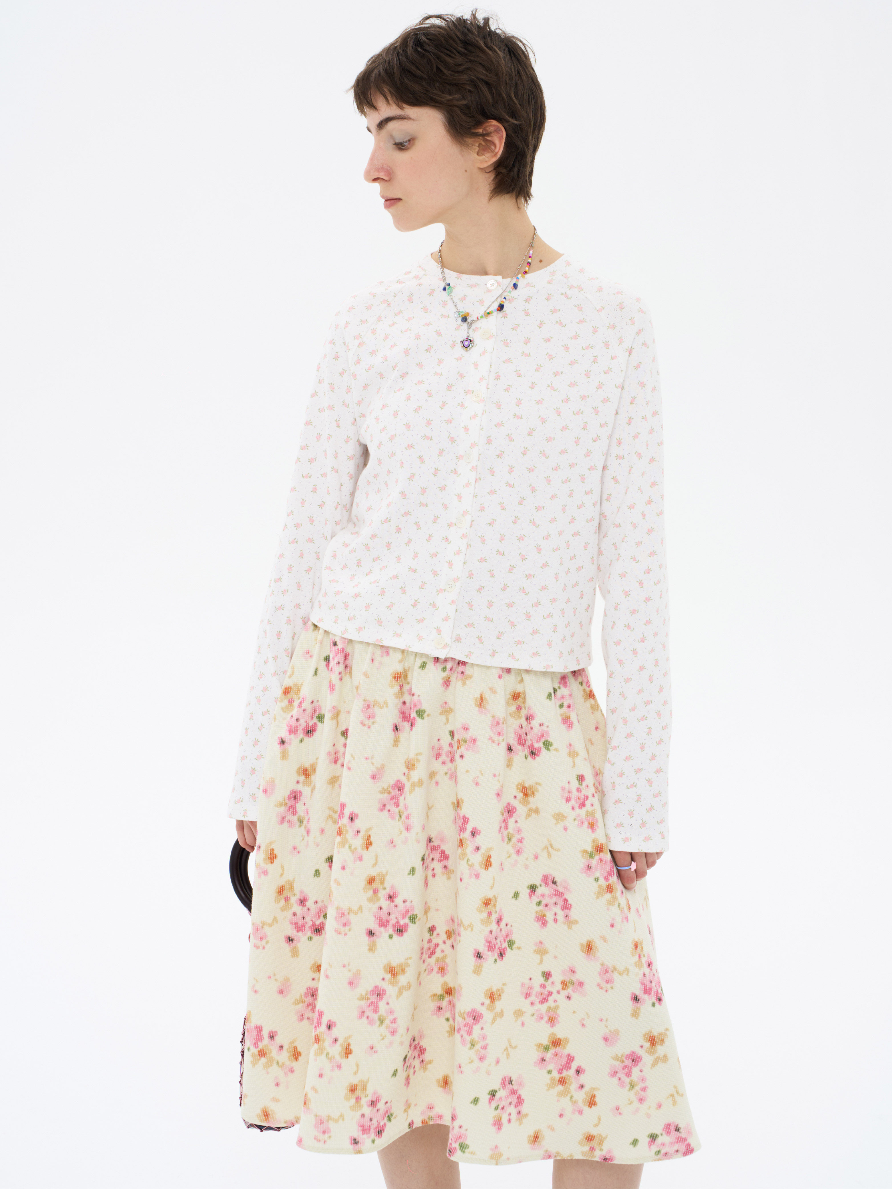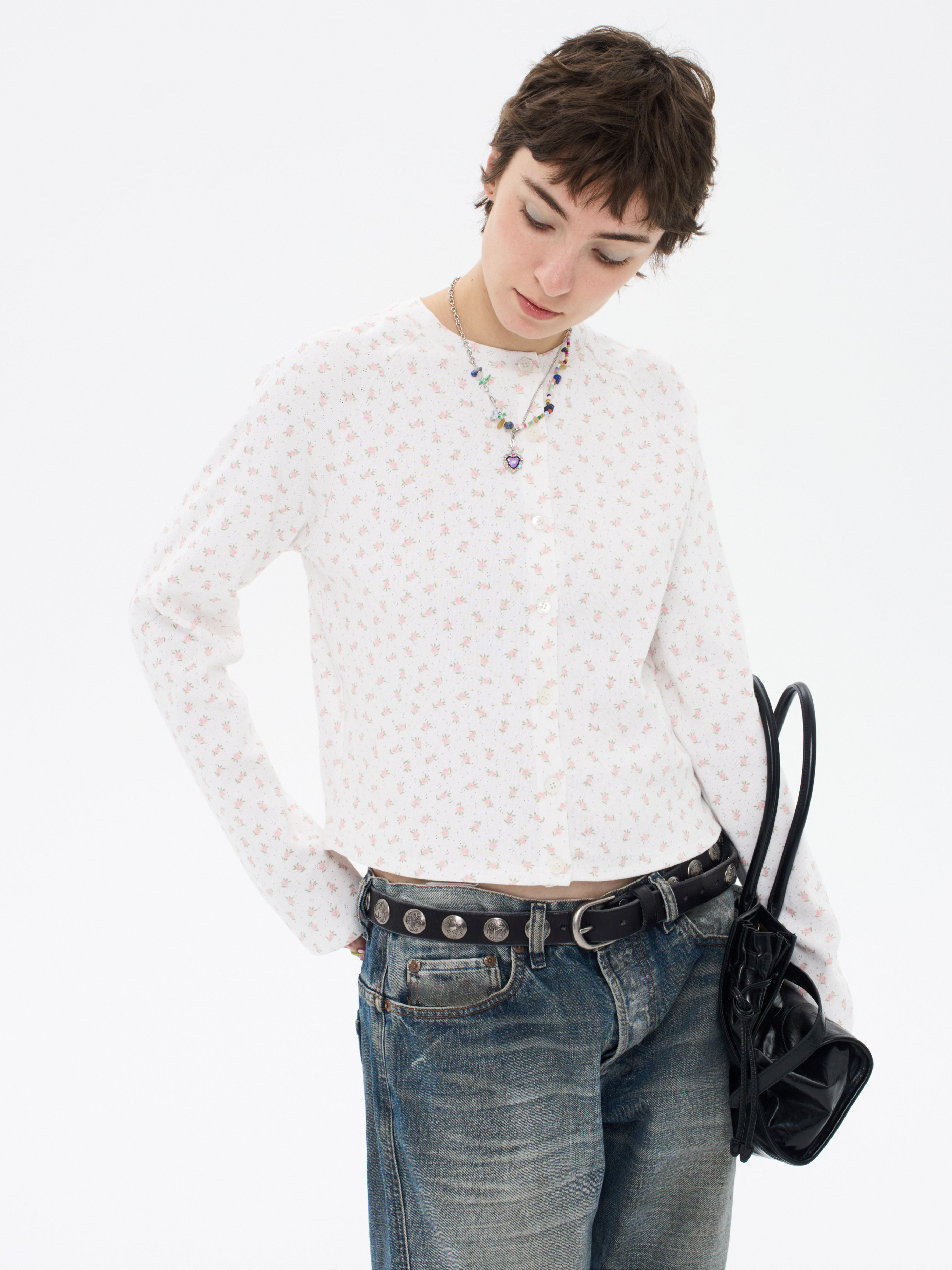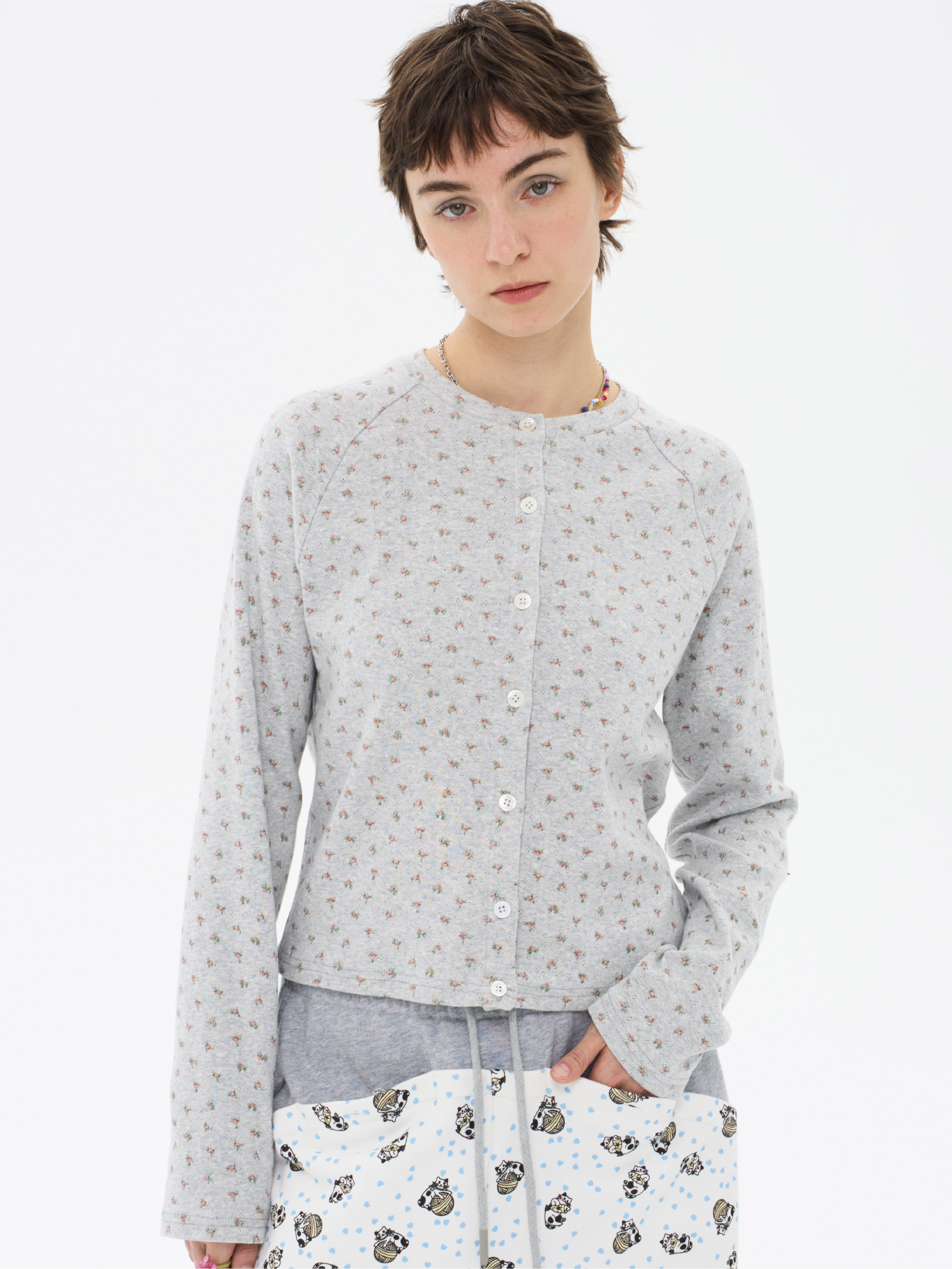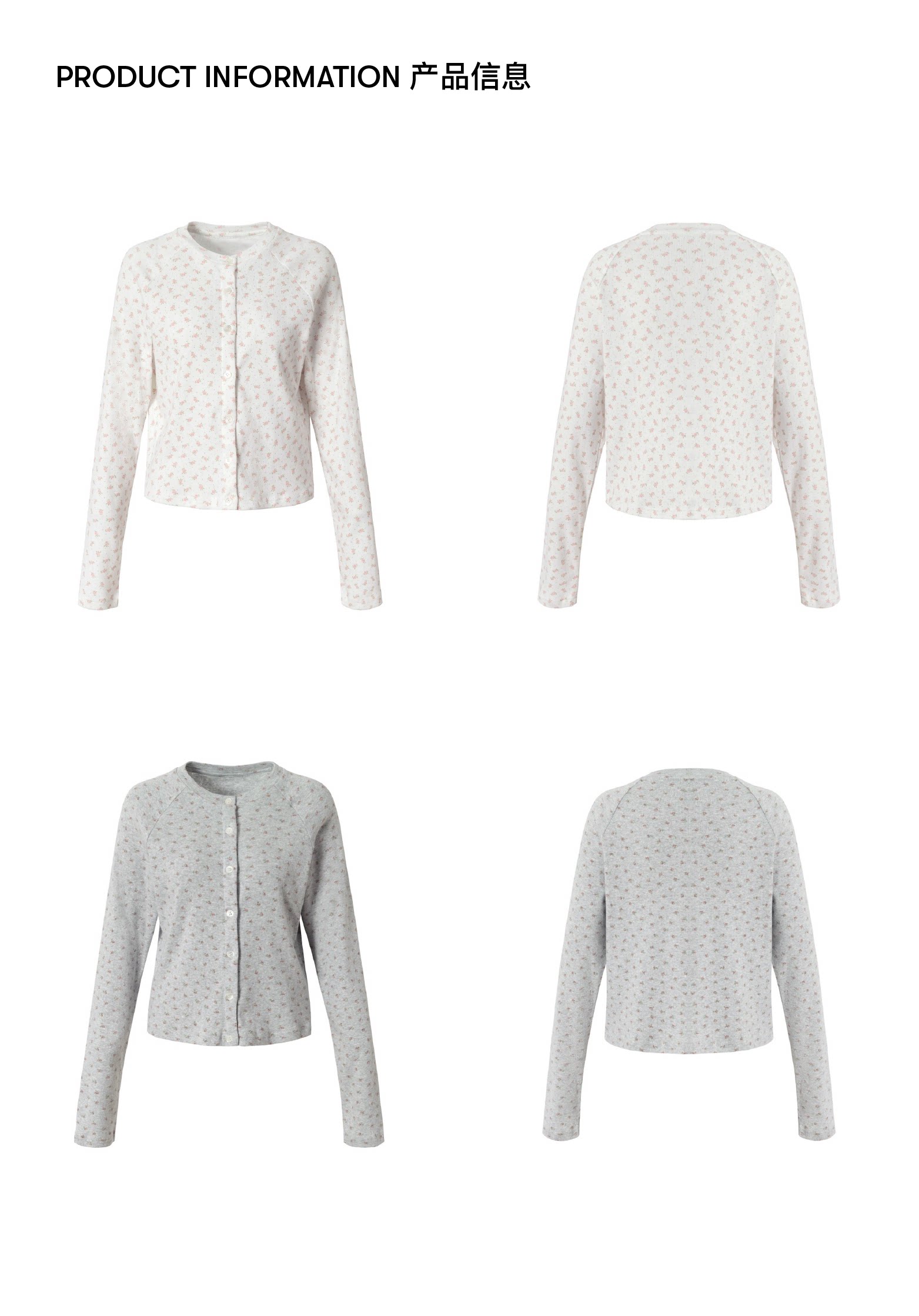 local tag/lt26ssk30/尼斯花园 碎花印花针织插肩袖修身开衫 圆领打底衫