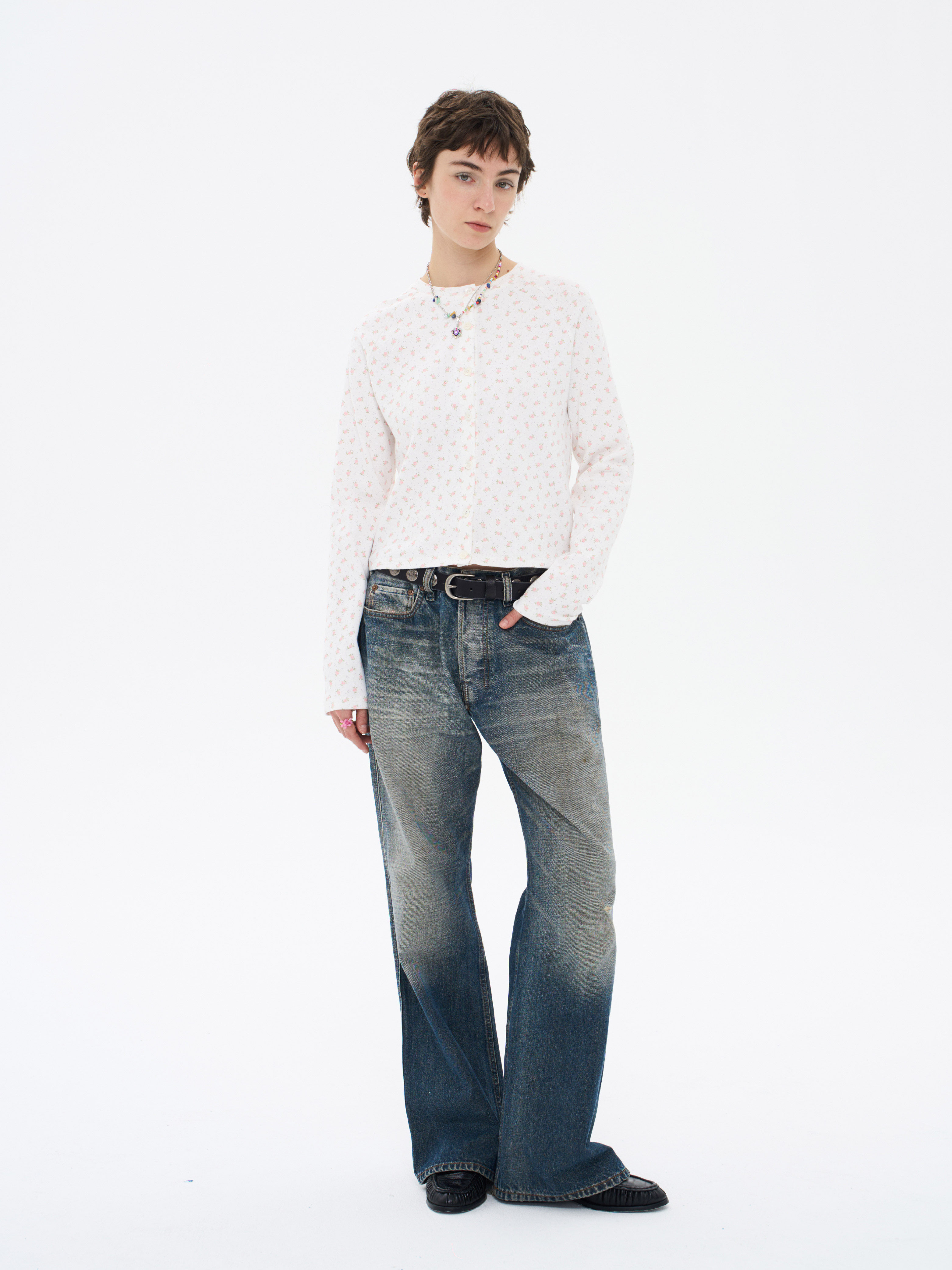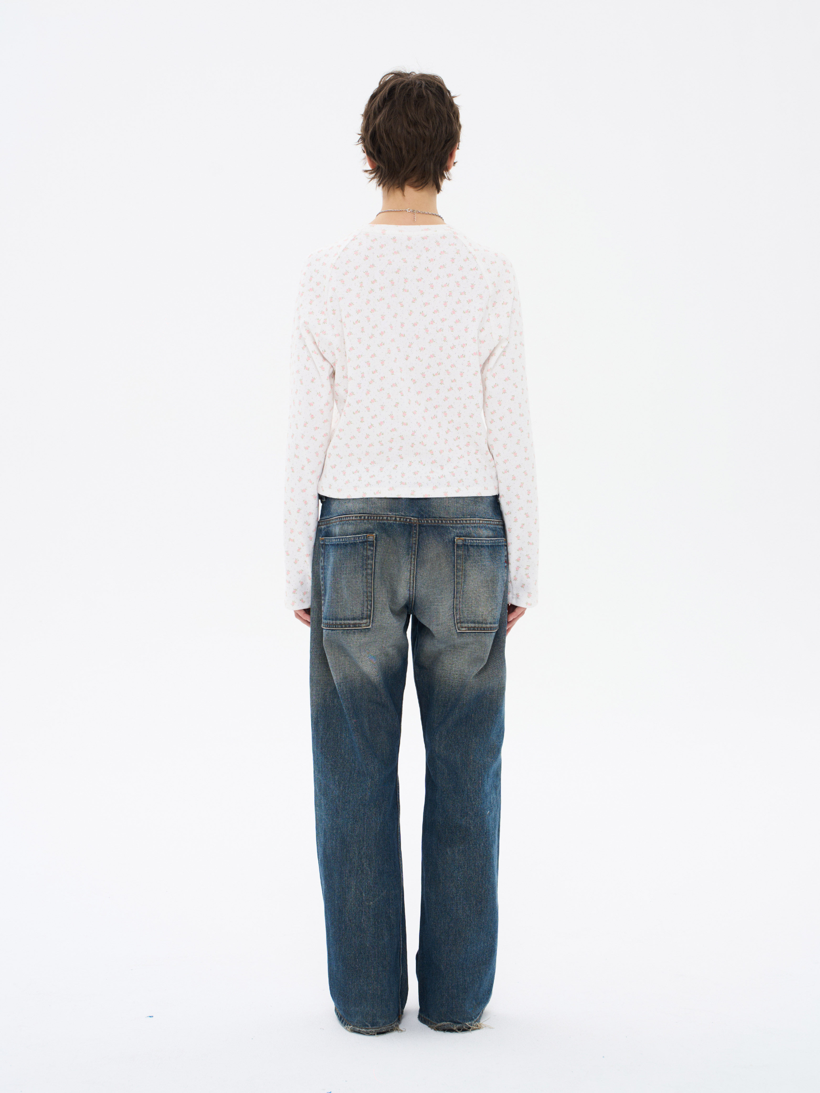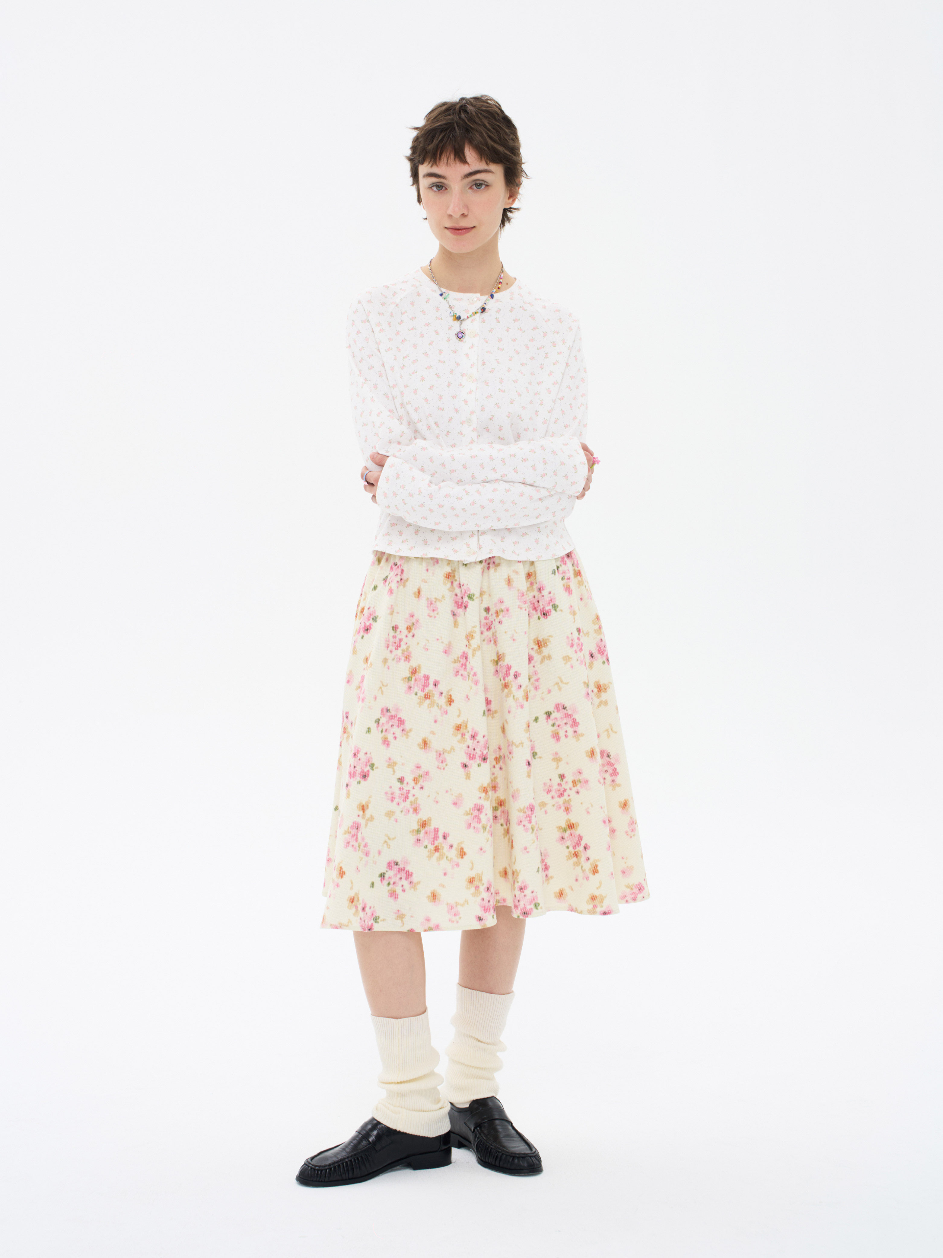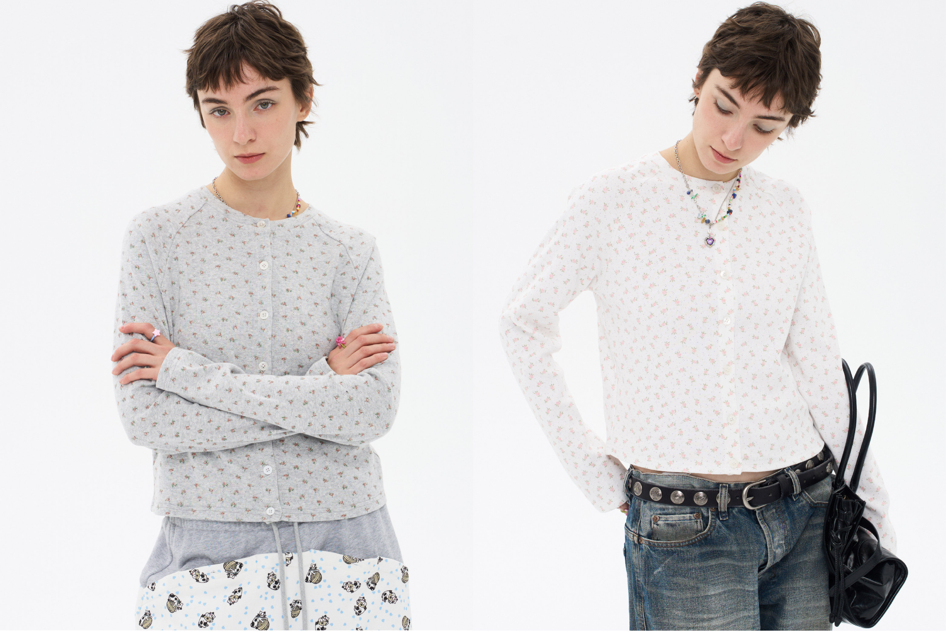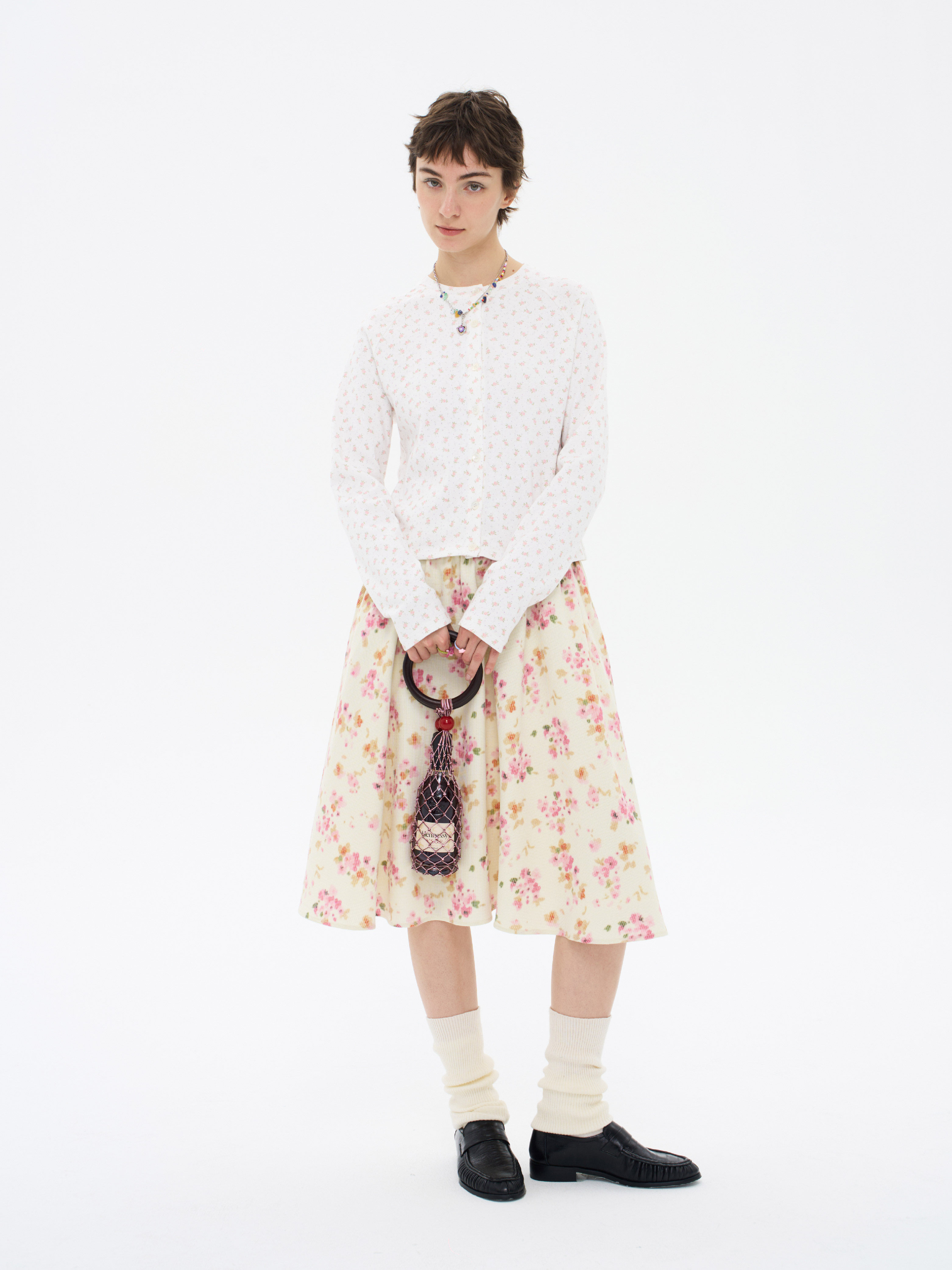 local tag/lt26ssk30/尼斯花园 碎花印花针织插肩袖修身开衫 圆领打底衫