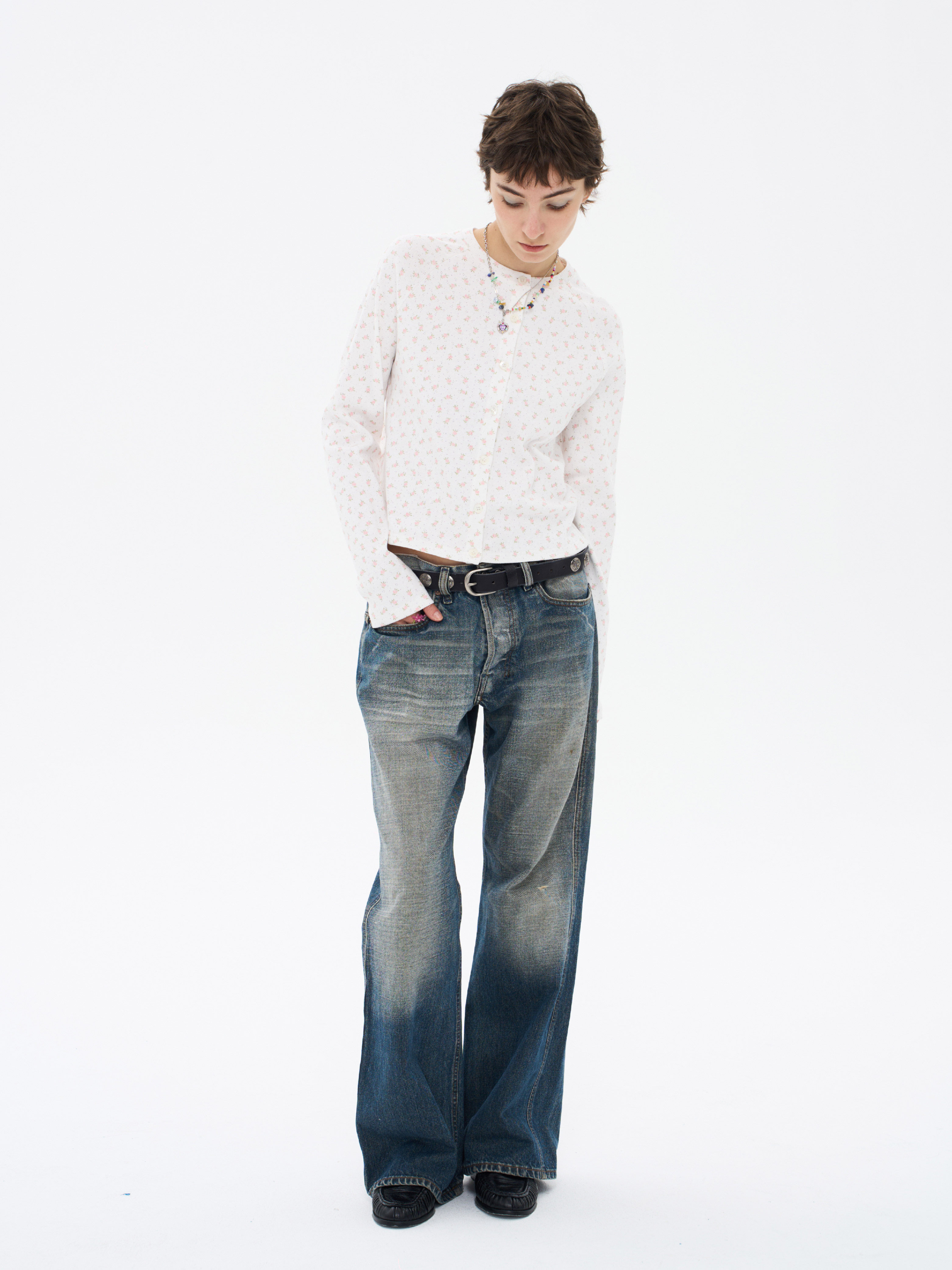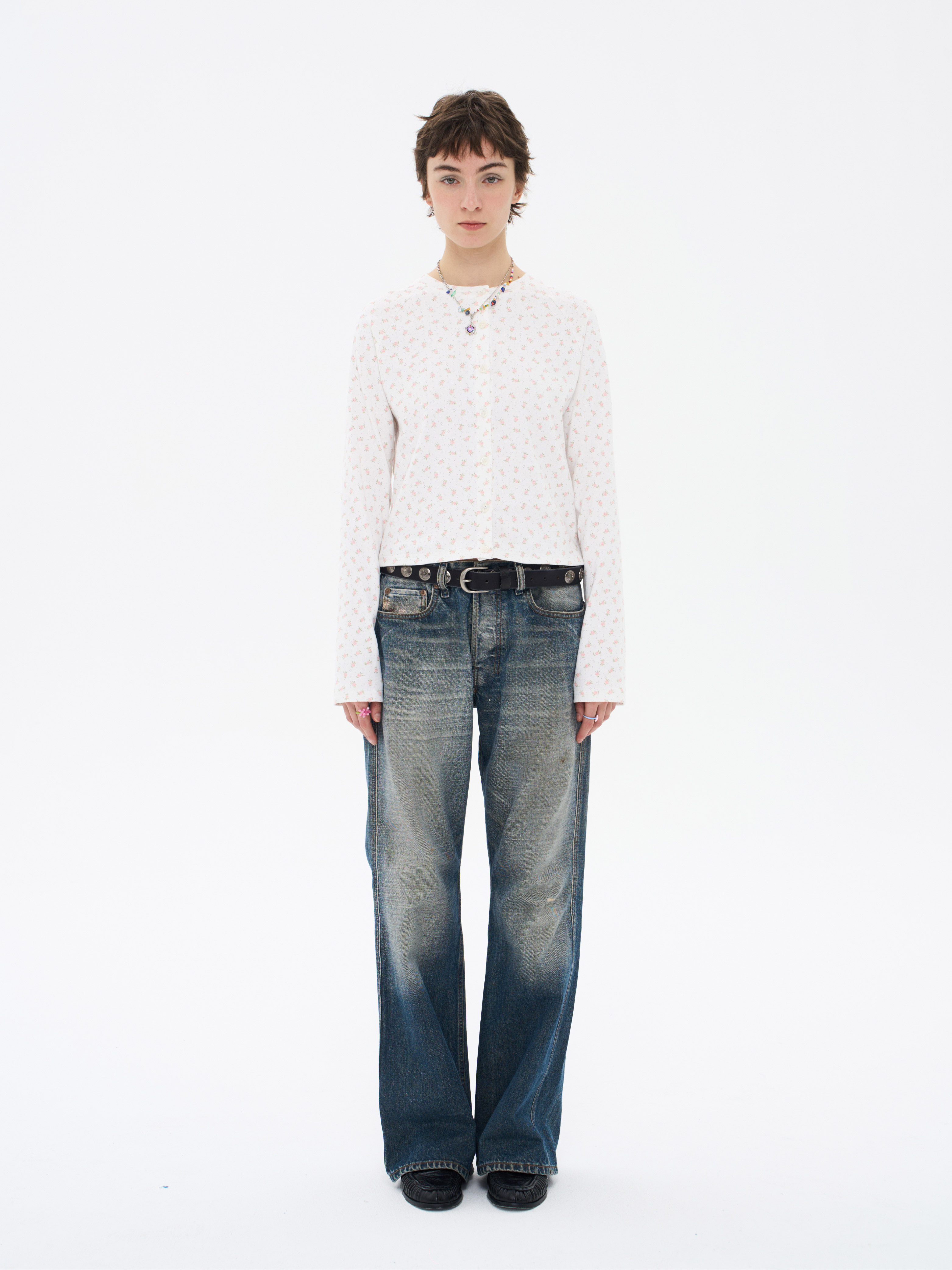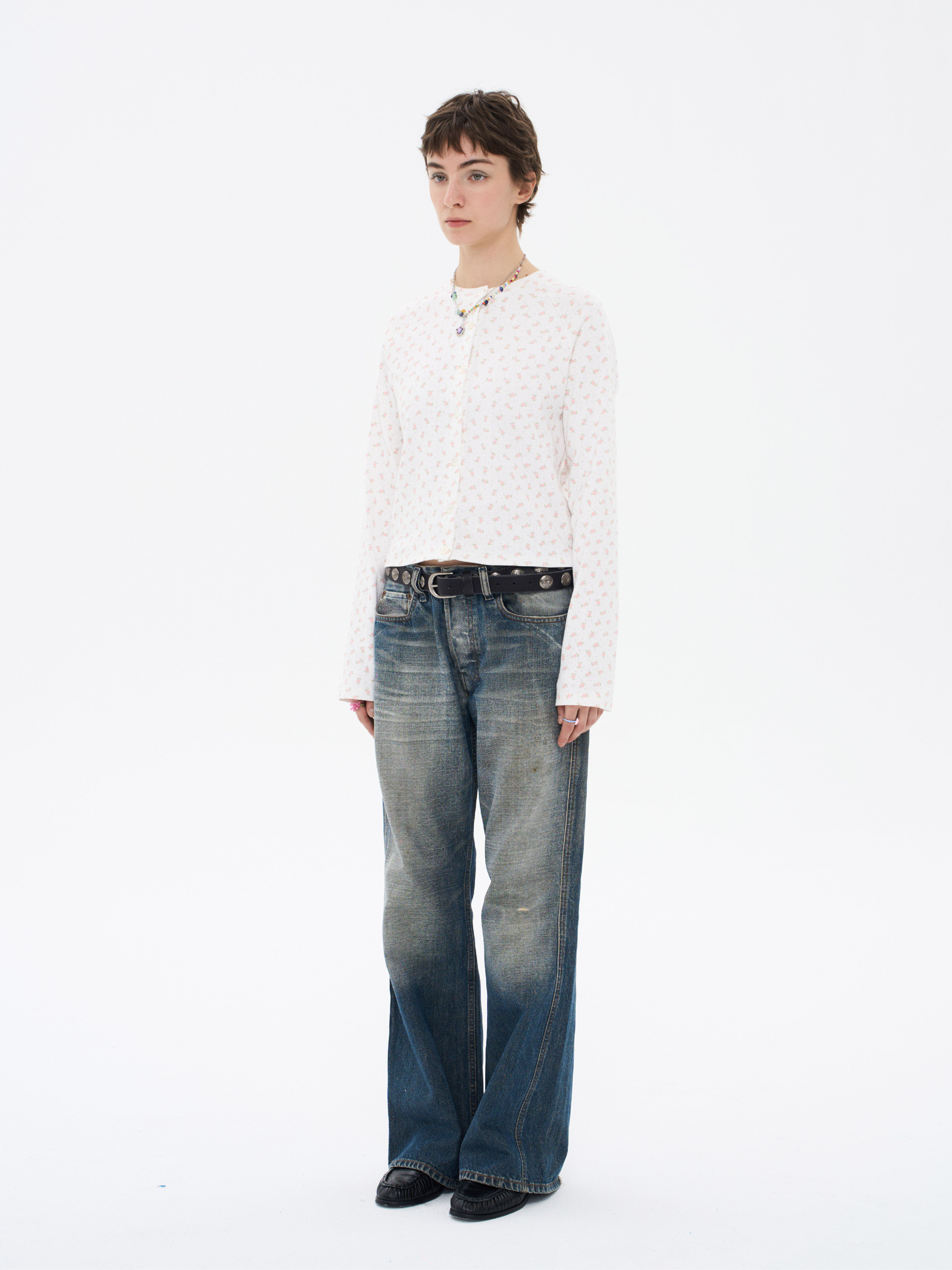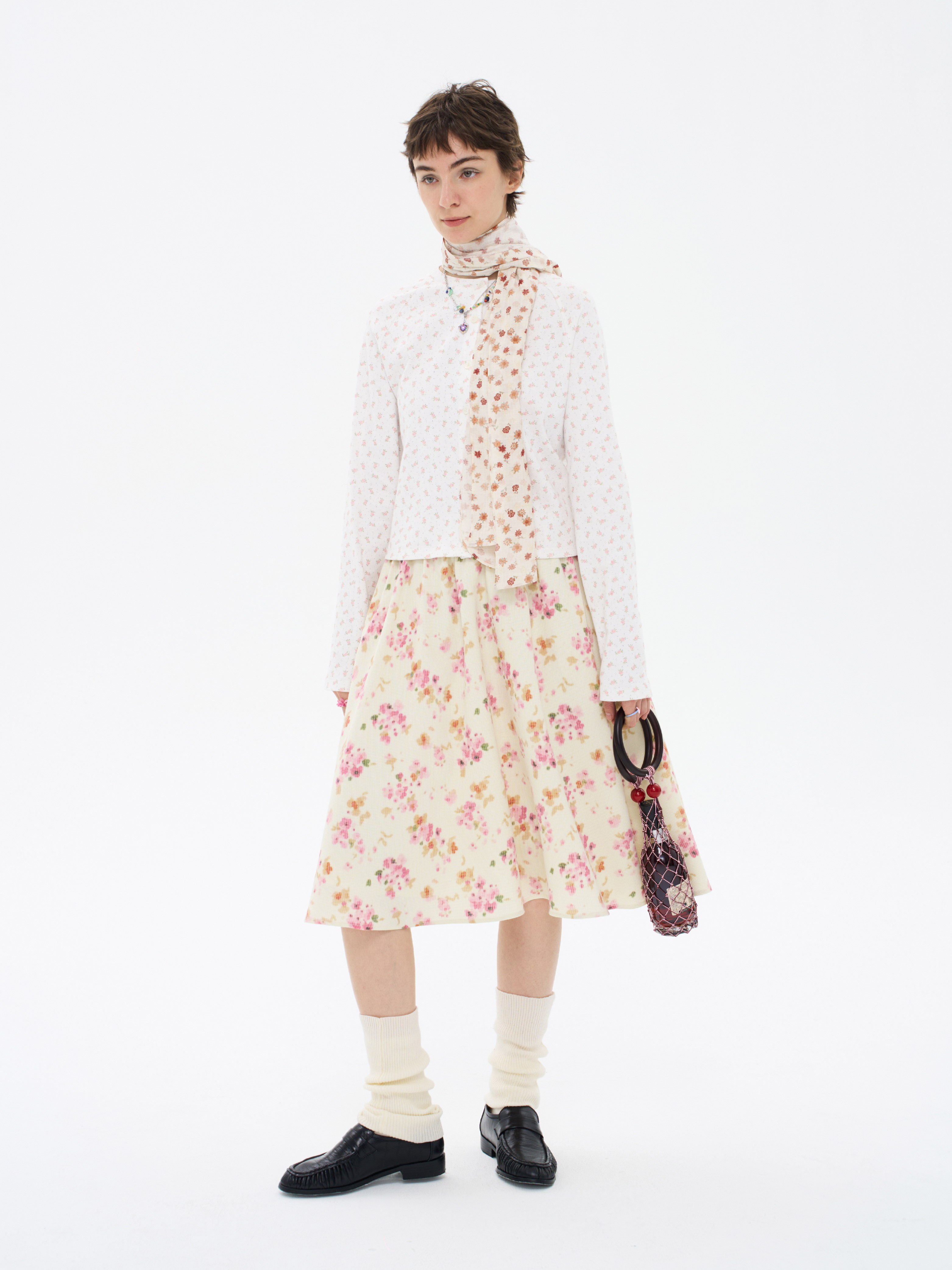 local tag/lt26ssk30/尼斯花园 碎花印花针织插肩袖修身开衫 圆领打底衫