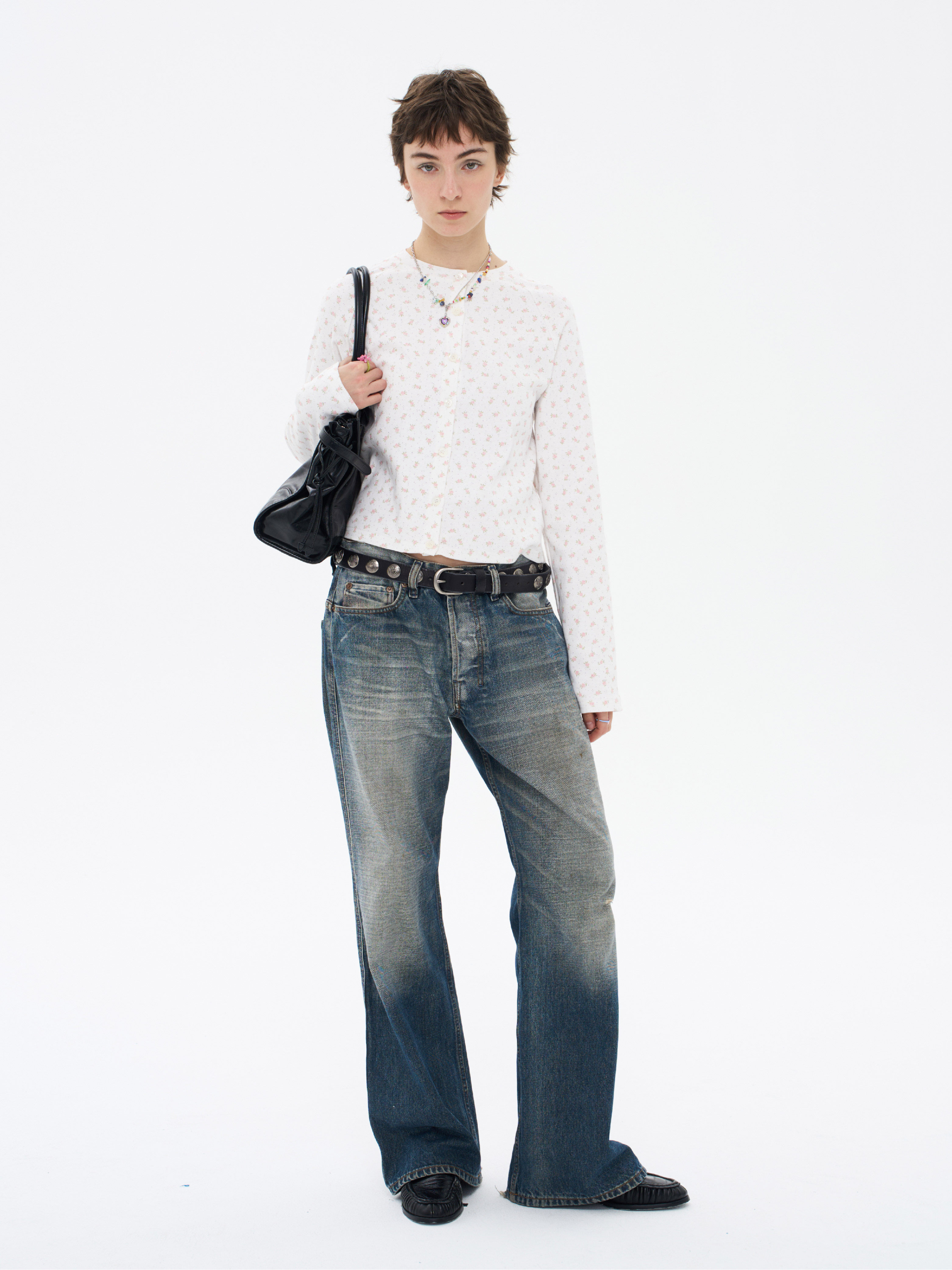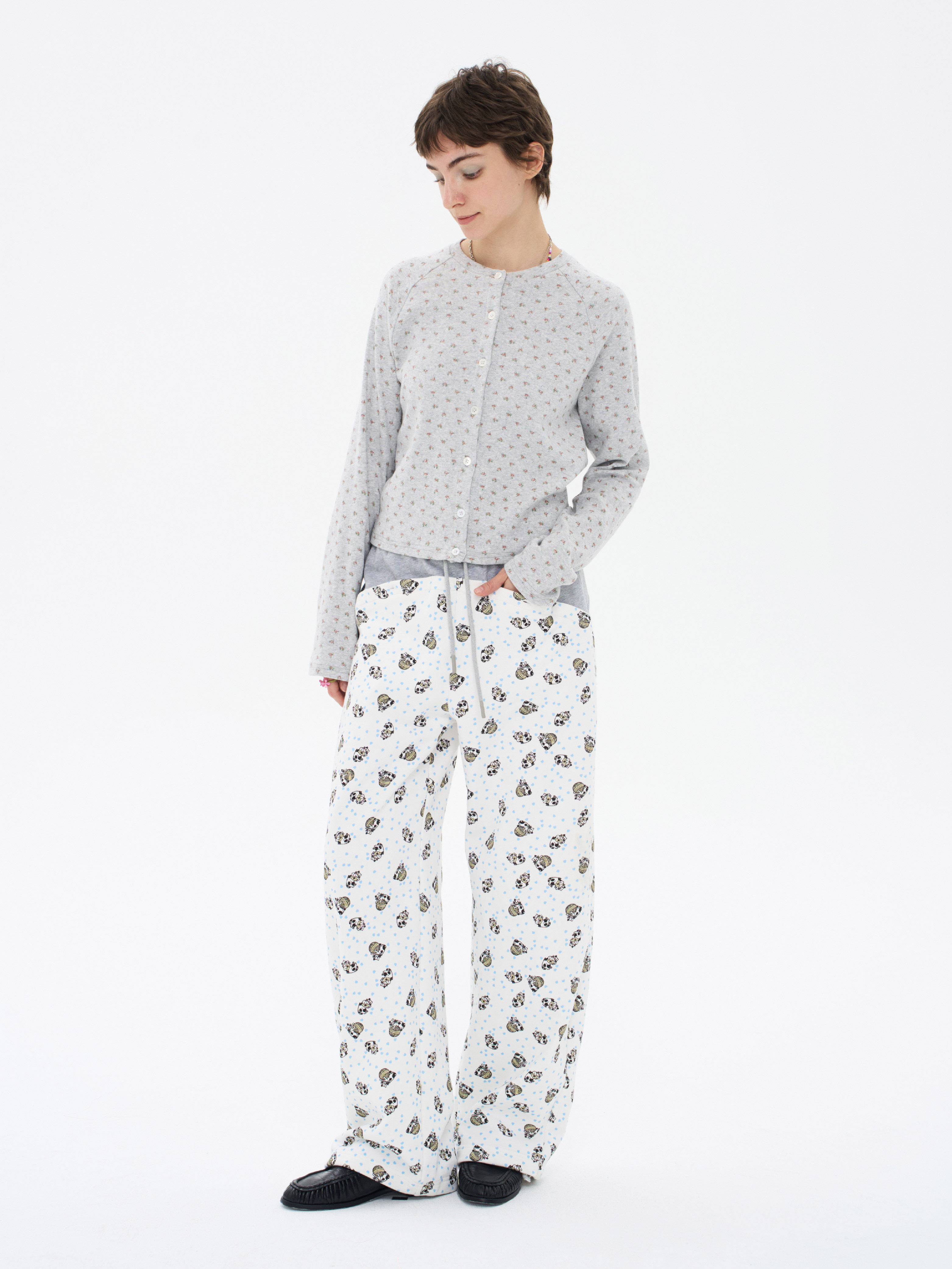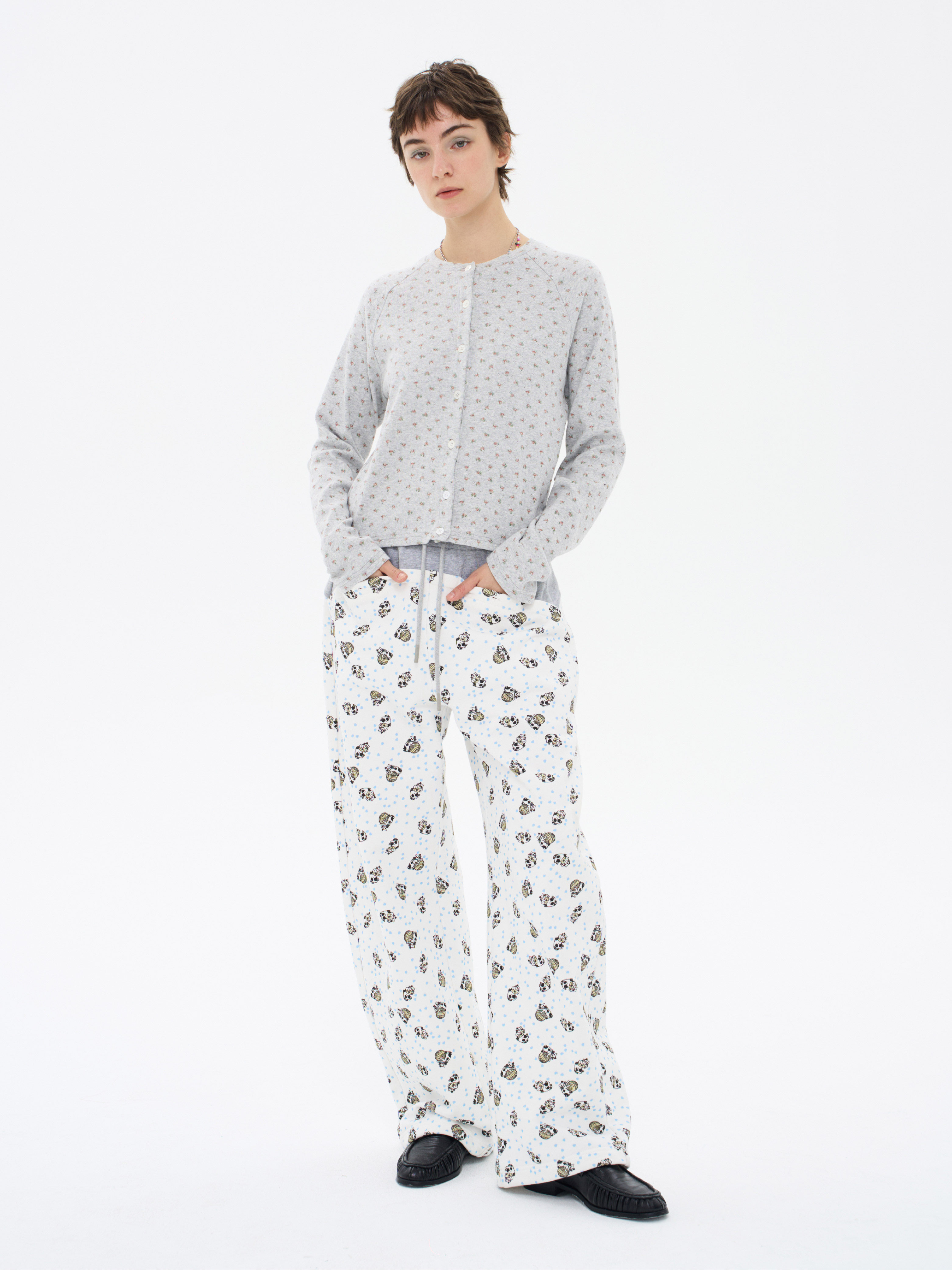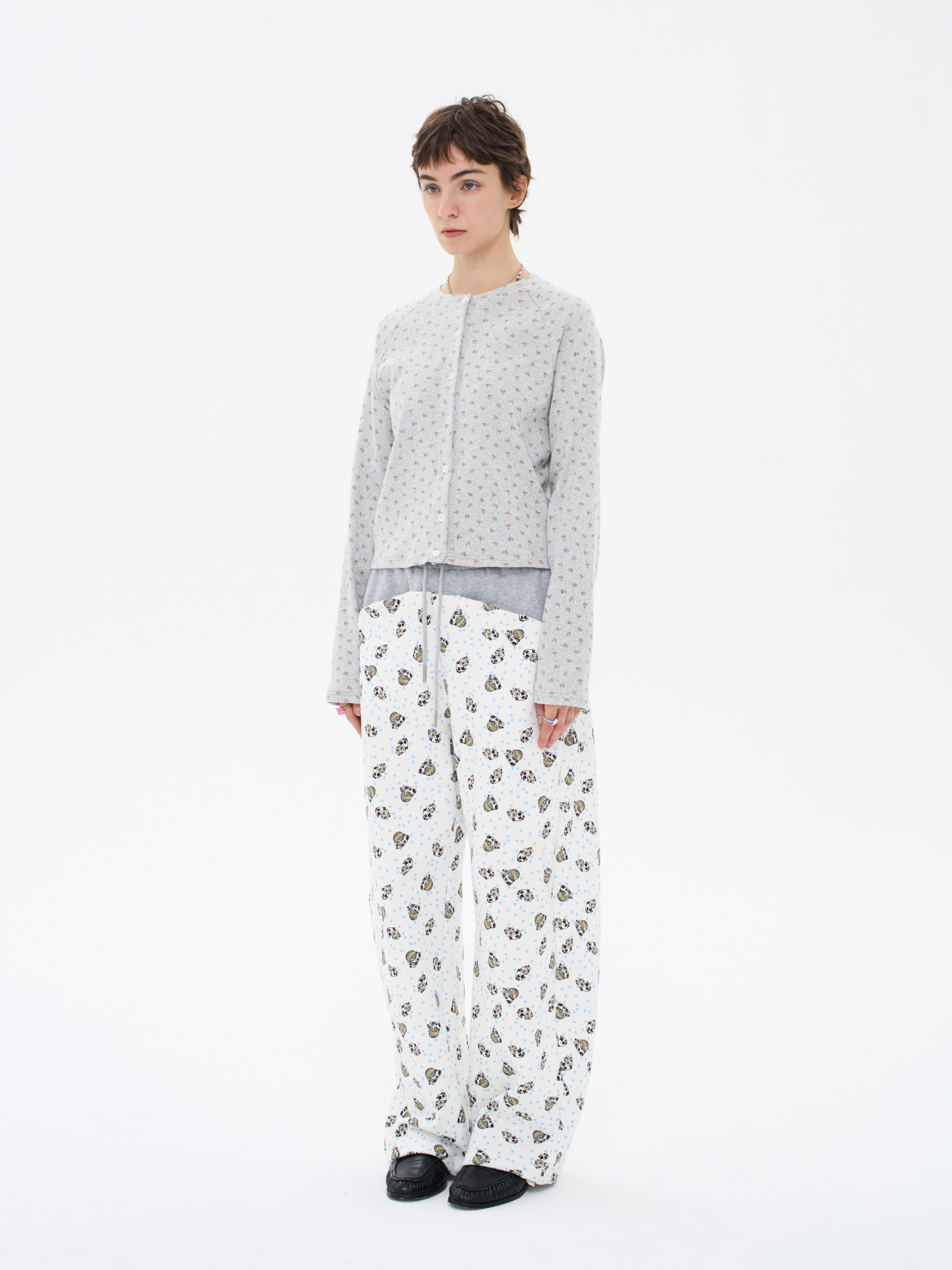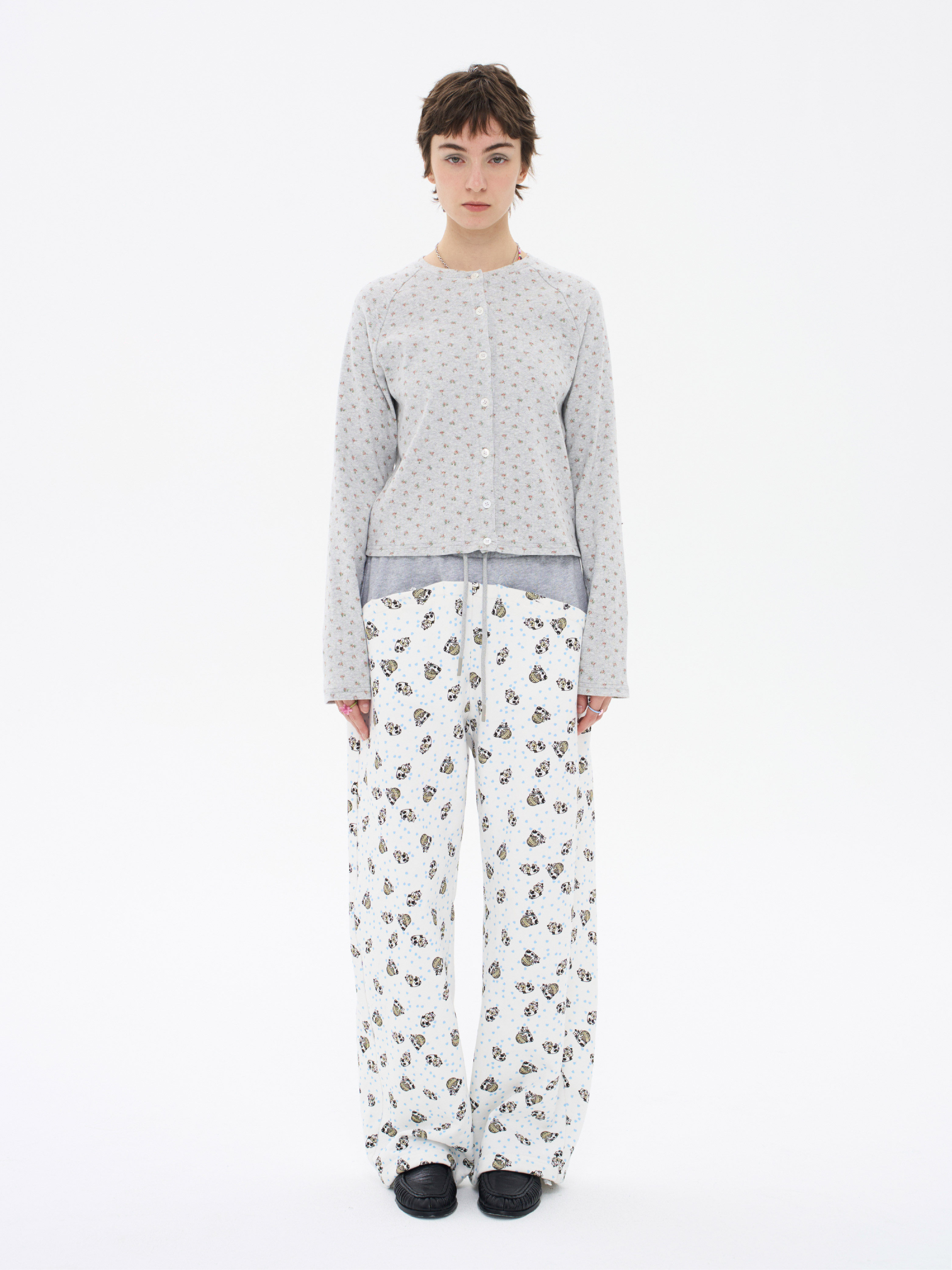 local tag/lt26ssk30/尼斯花园 碎花印花针织插肩袖修身开衫 圆领打底衫