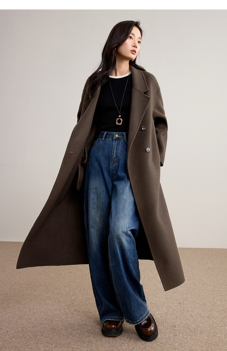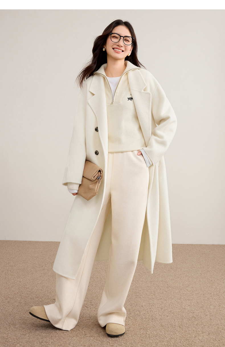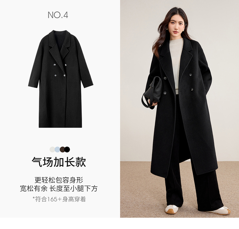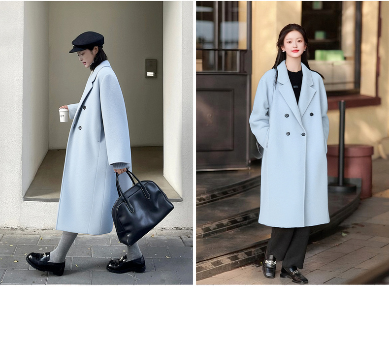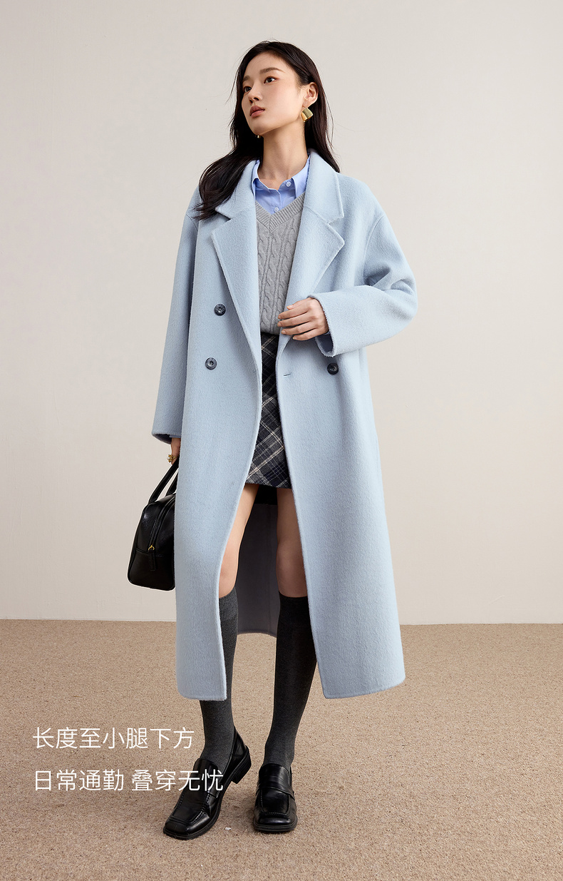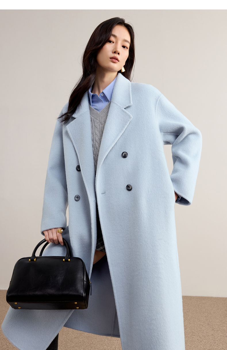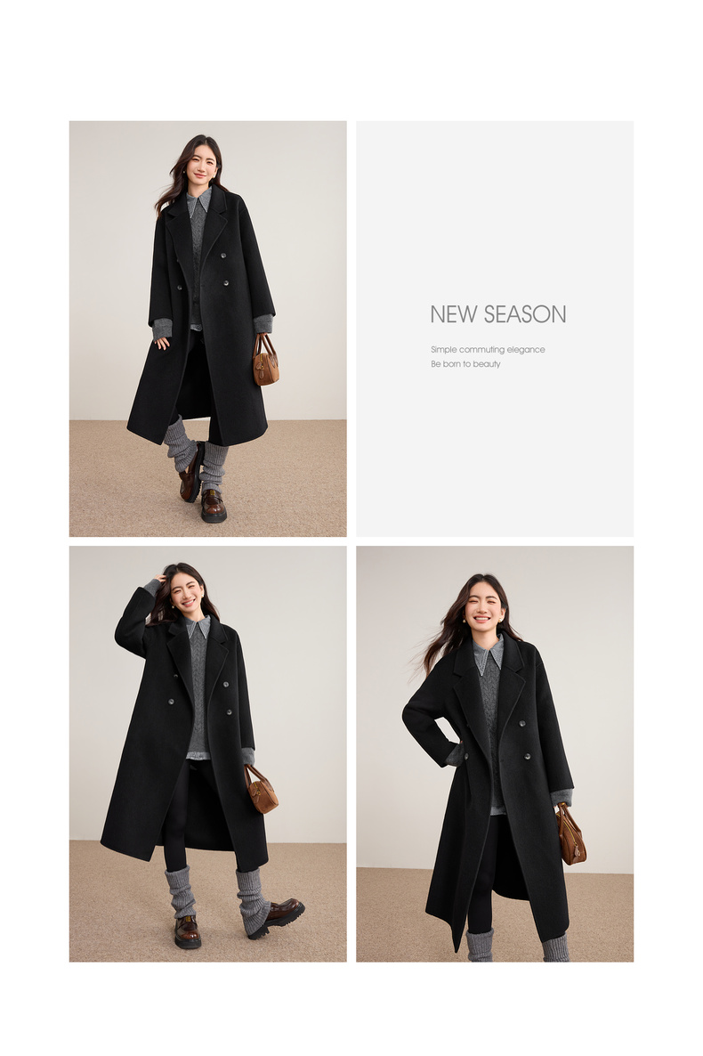 【内购】【100%绵羊毛】简约通勤西装领双排扣长袖长款保暖厚毛呢外套-W54OA8780