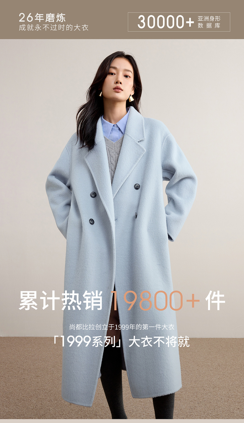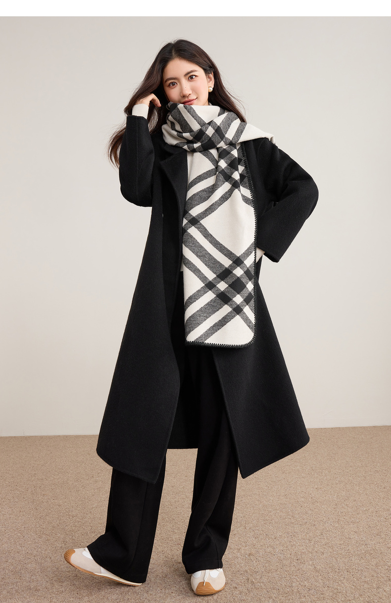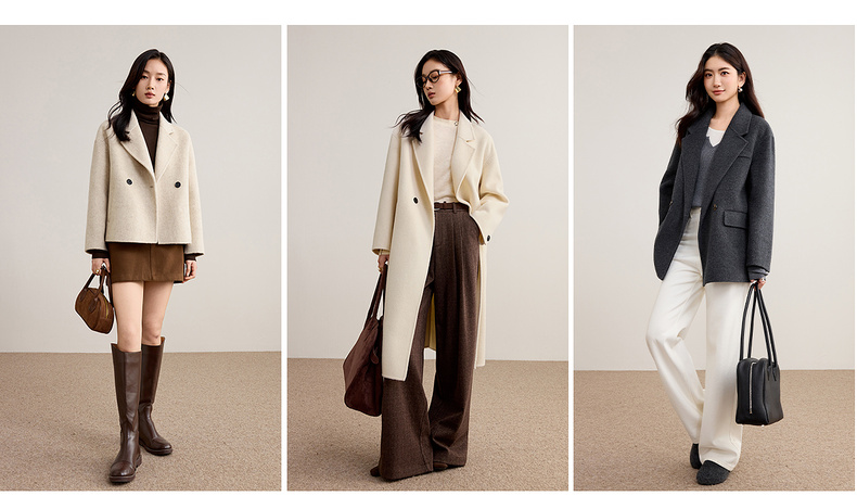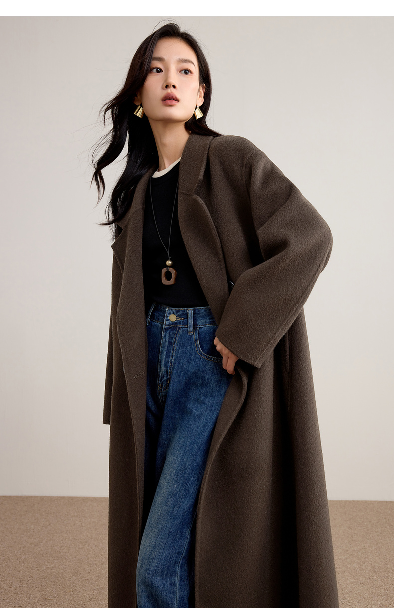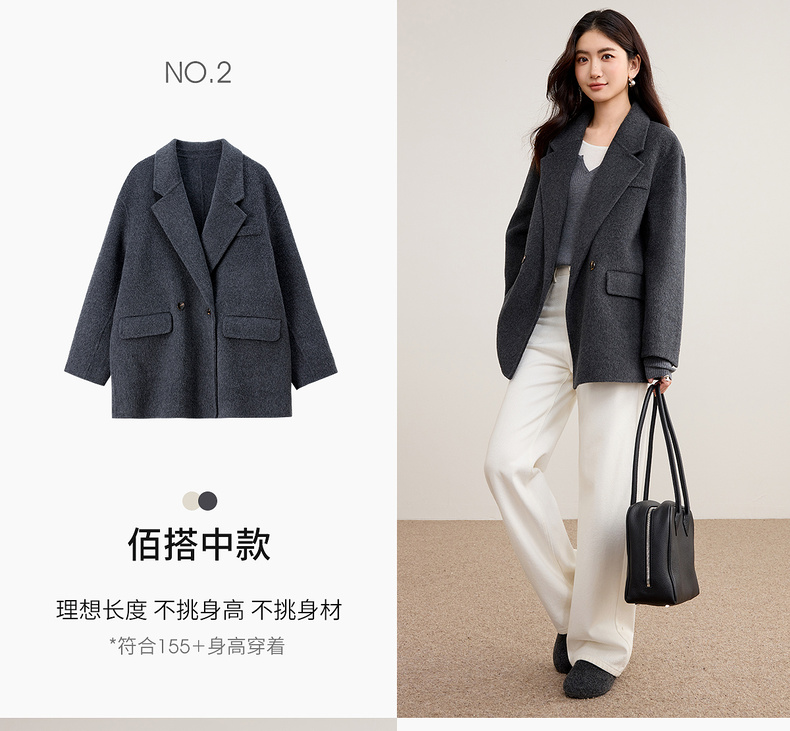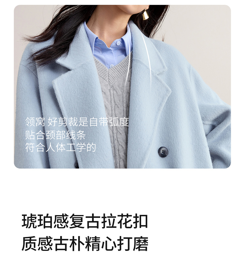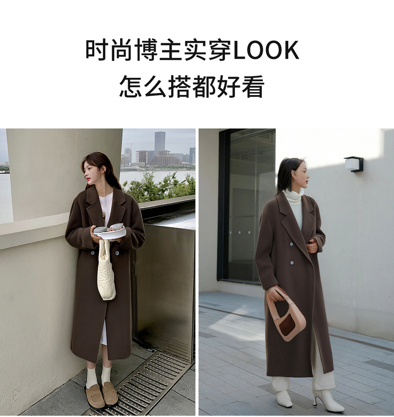【内购】【100%绵羊毛】简约通勤西装领双排扣长袖长款保暖厚毛呢外套-W54OA8780