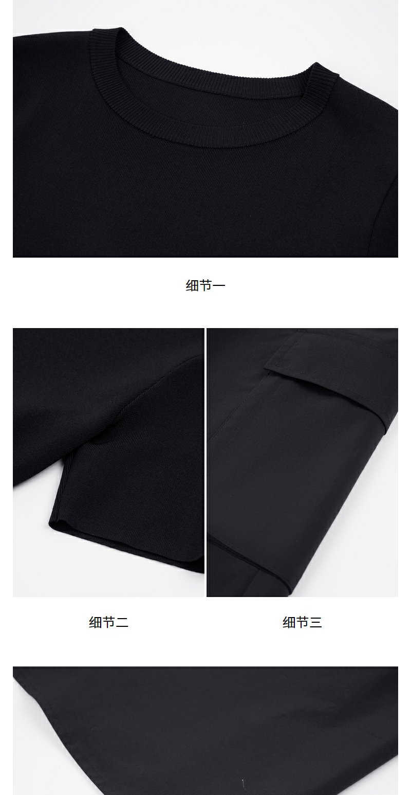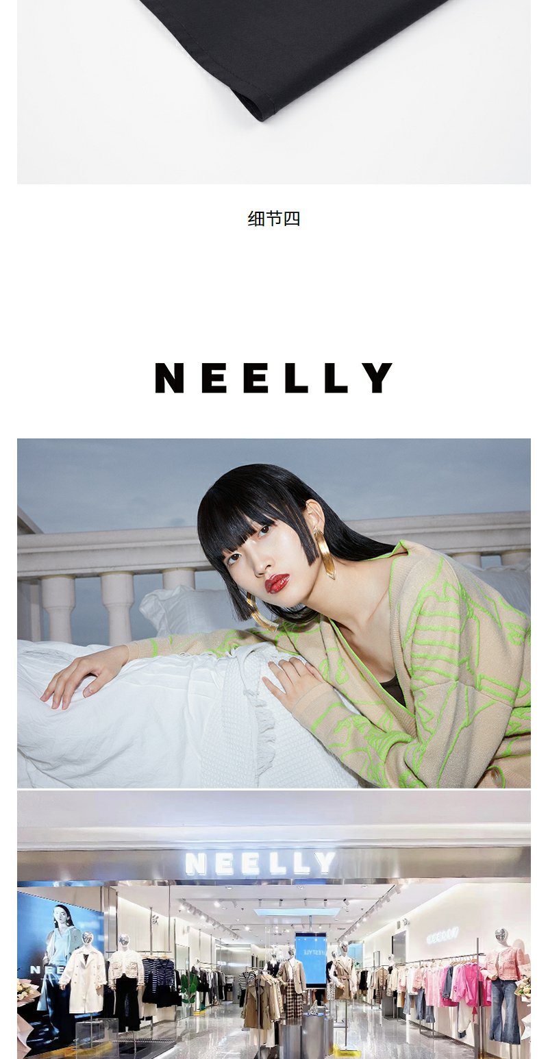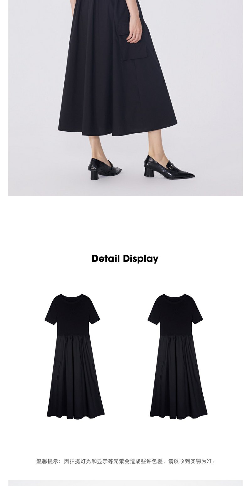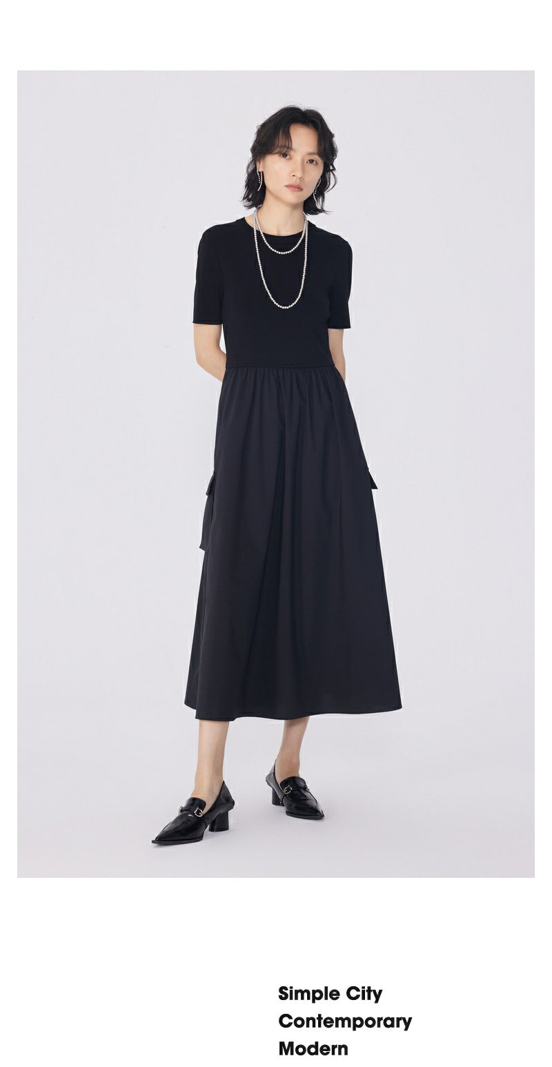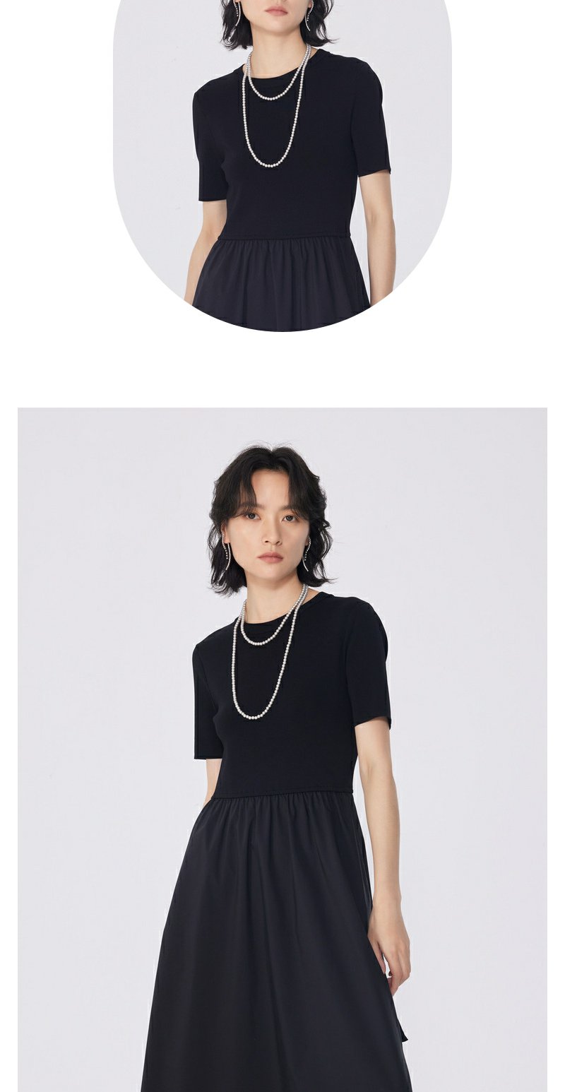 NEELLY纳俪商场同款夏新款黑色显瘦短袖针织拼接连衣裙女收腰长裙N25054Y04598