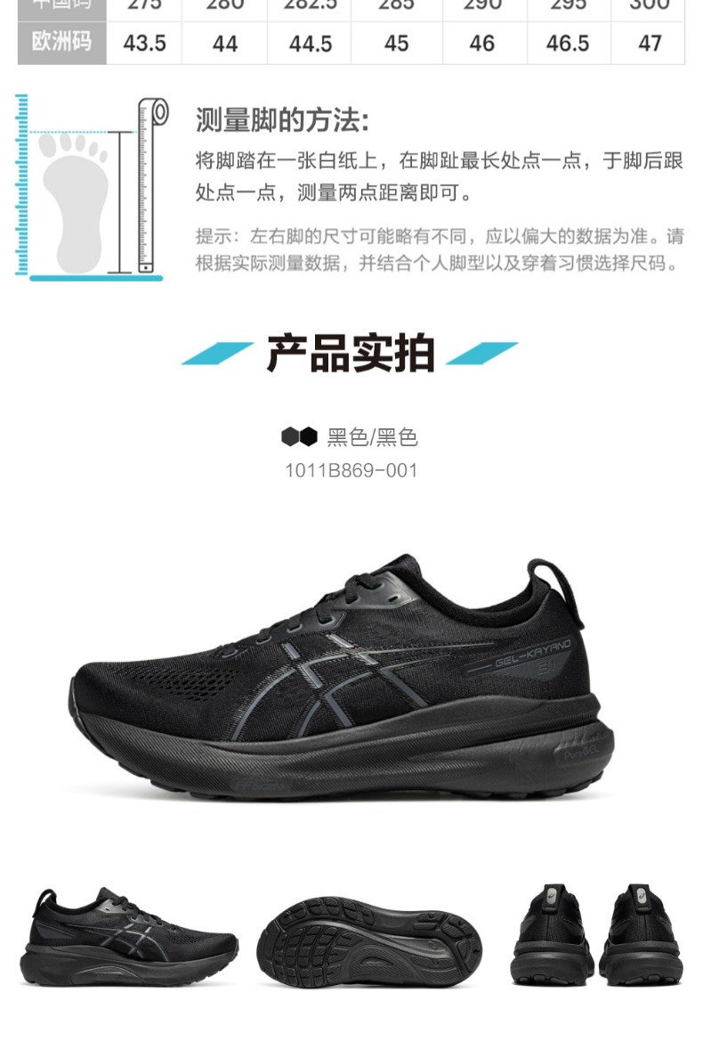 ASICS亚瑟士男子旗舰稳定支撑宽楦跑鞋GEL-KAYANO 31 (2E)舒适透气运动鞋1011B869-001