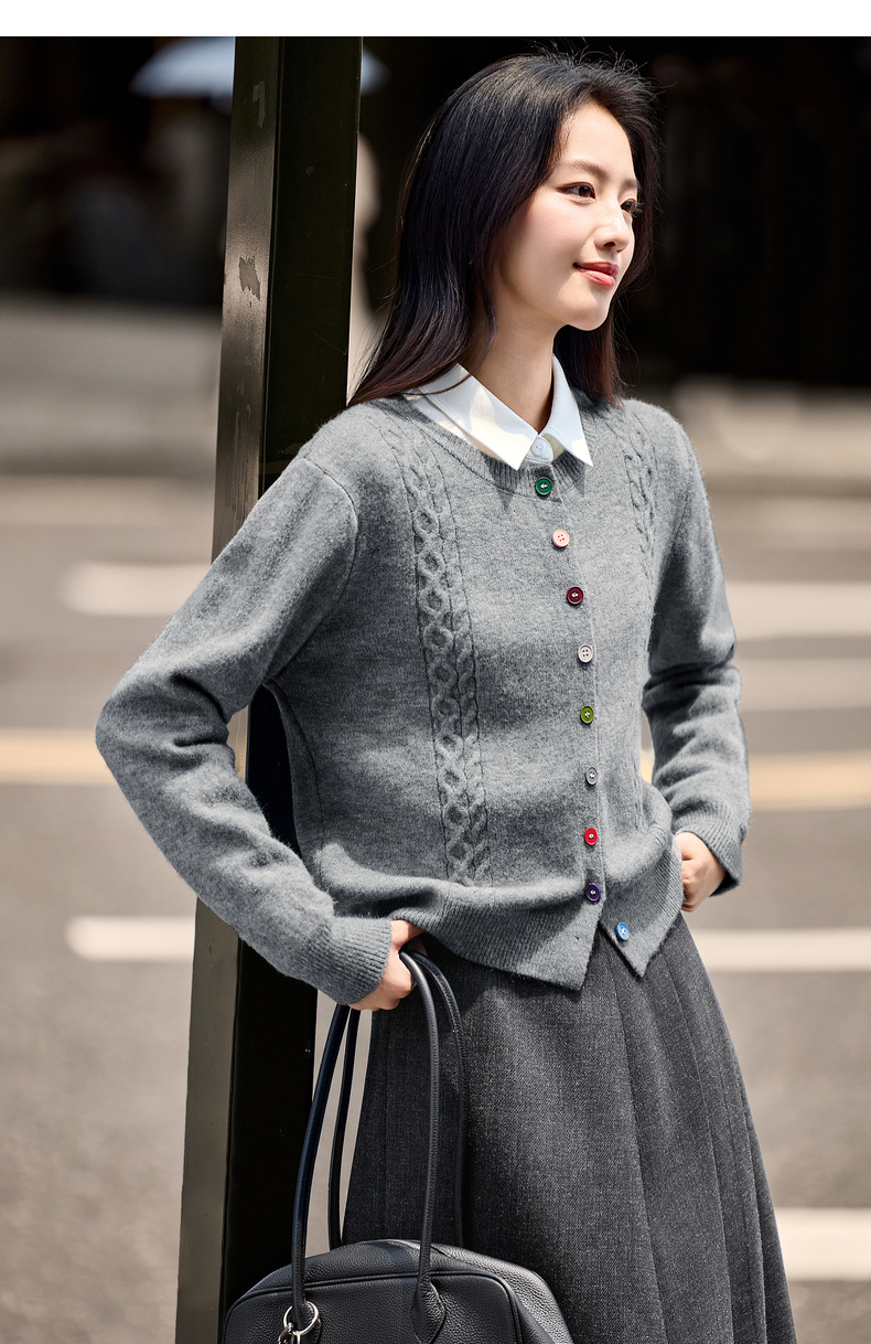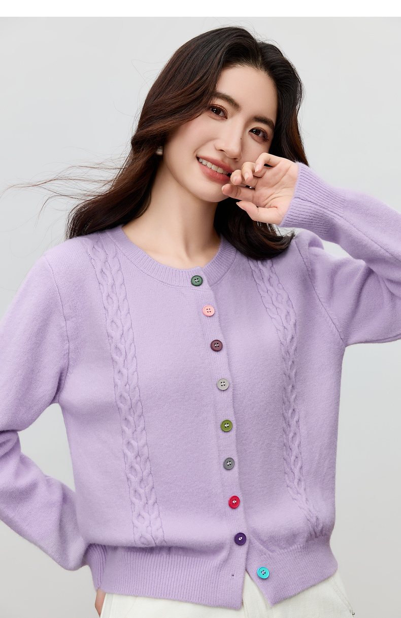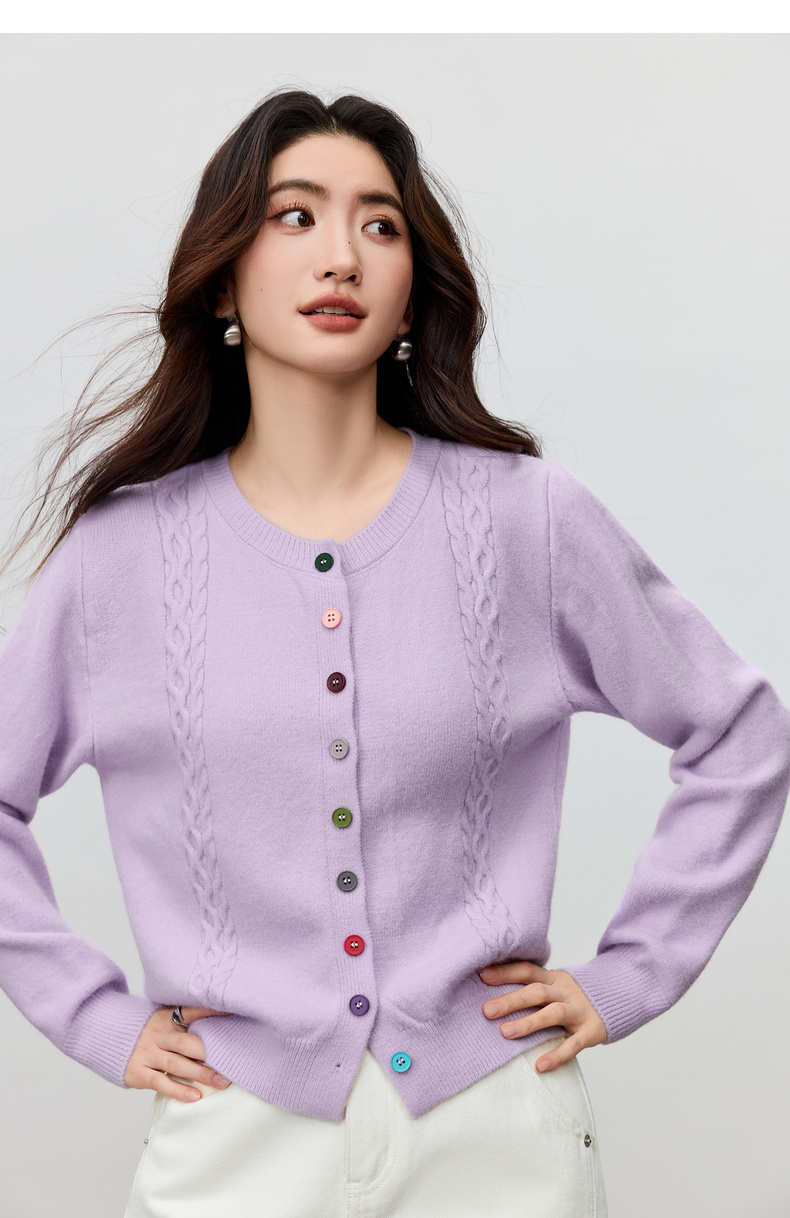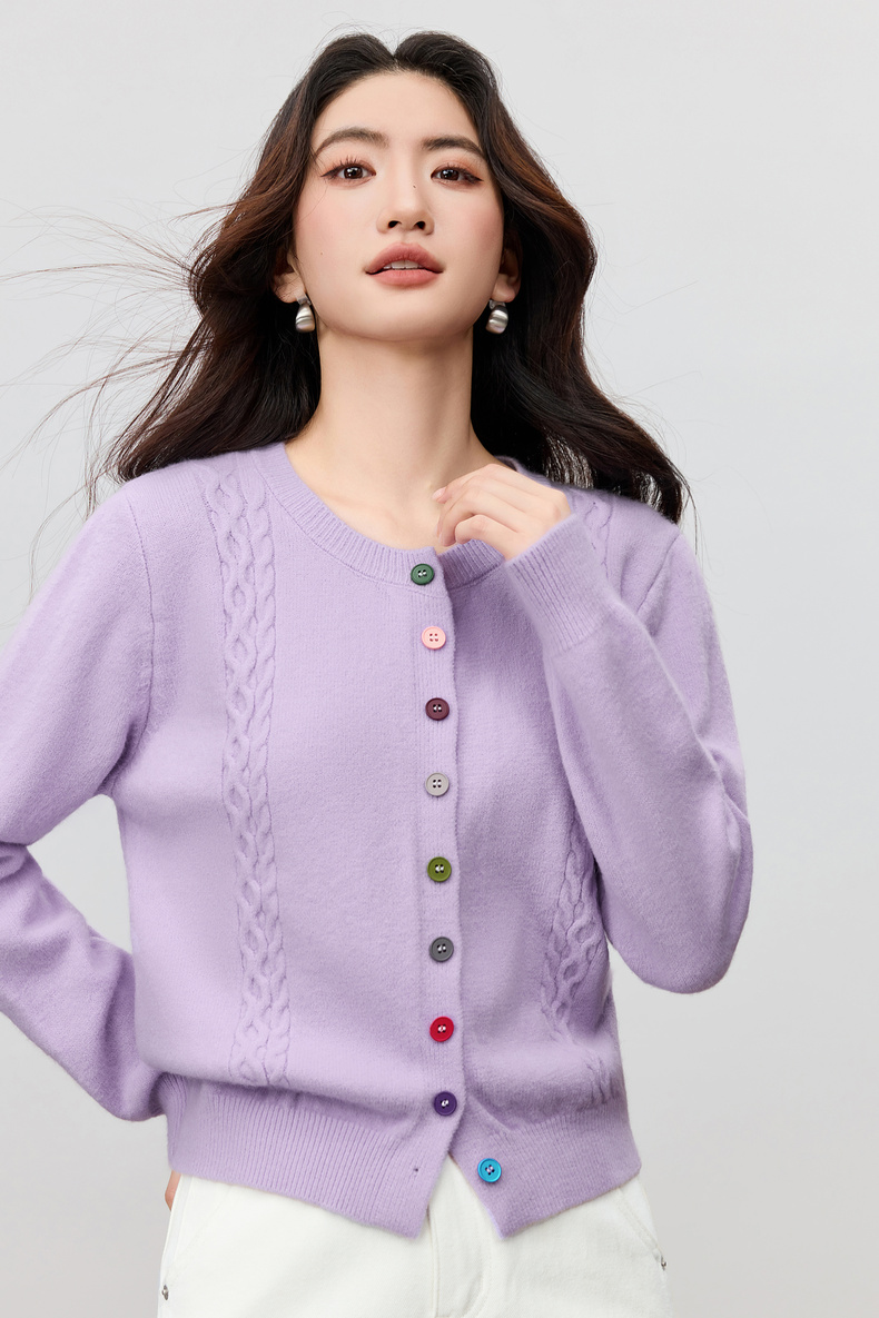 【内购】【糖果扣】多巴胺通勤圆领单排扣麻花绞花肌理厚弹力开衫毛衣-W54EB3987