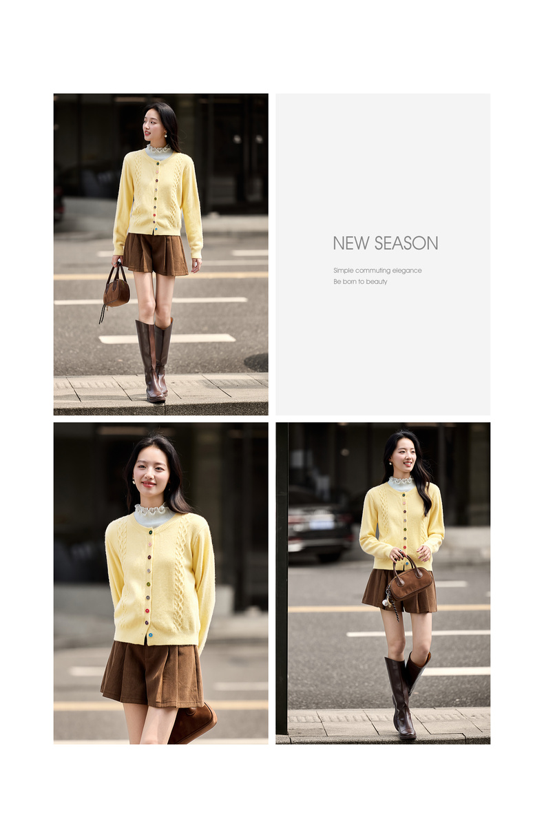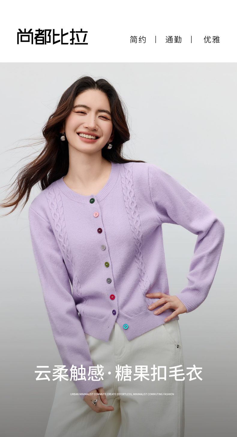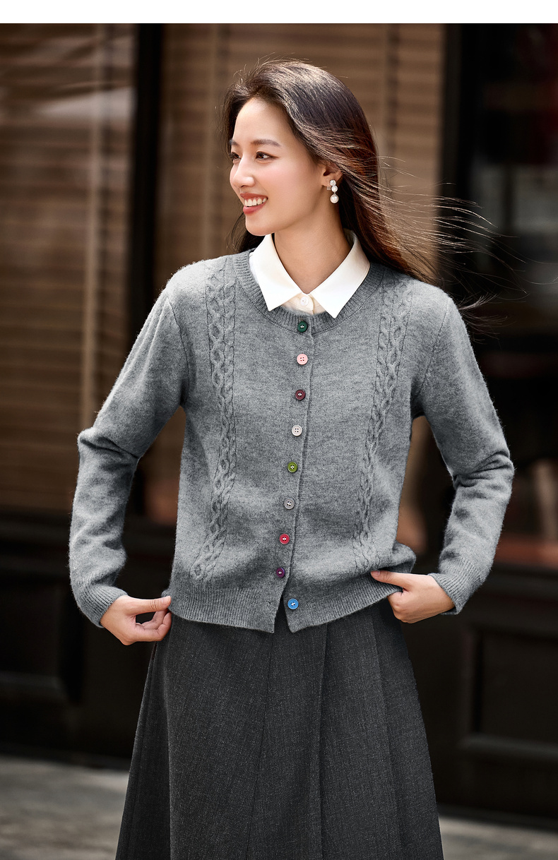 【内购】【糖果扣】多巴胺通勤圆领单排扣麻花绞花肌理厚弹力开衫毛衣-W54EB3987
