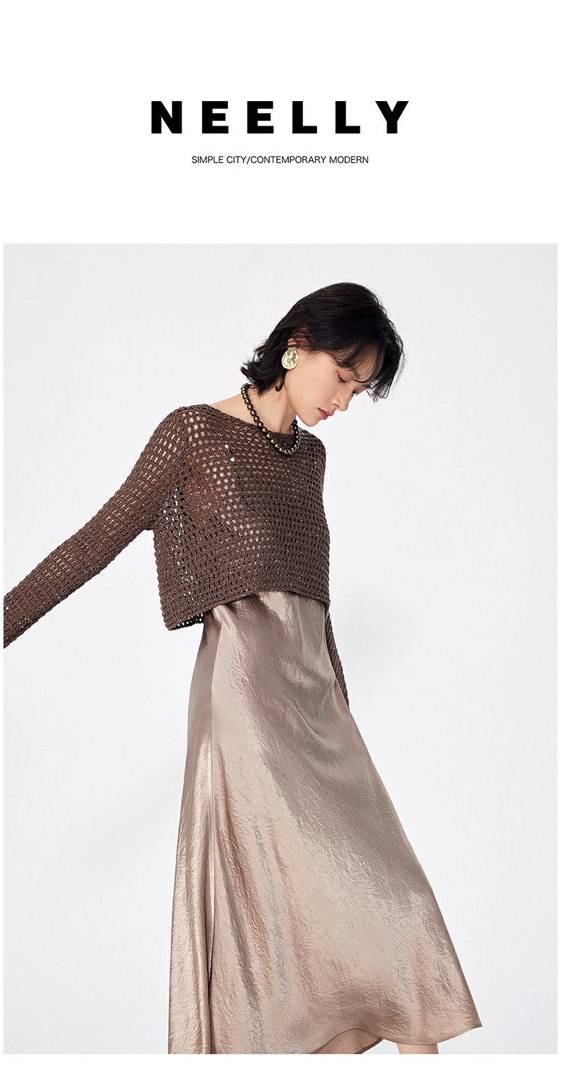 NEELLY纳俪商场同款春季新款镂空罩衫宽松通勤短款针织衫上衣女N25024A04576