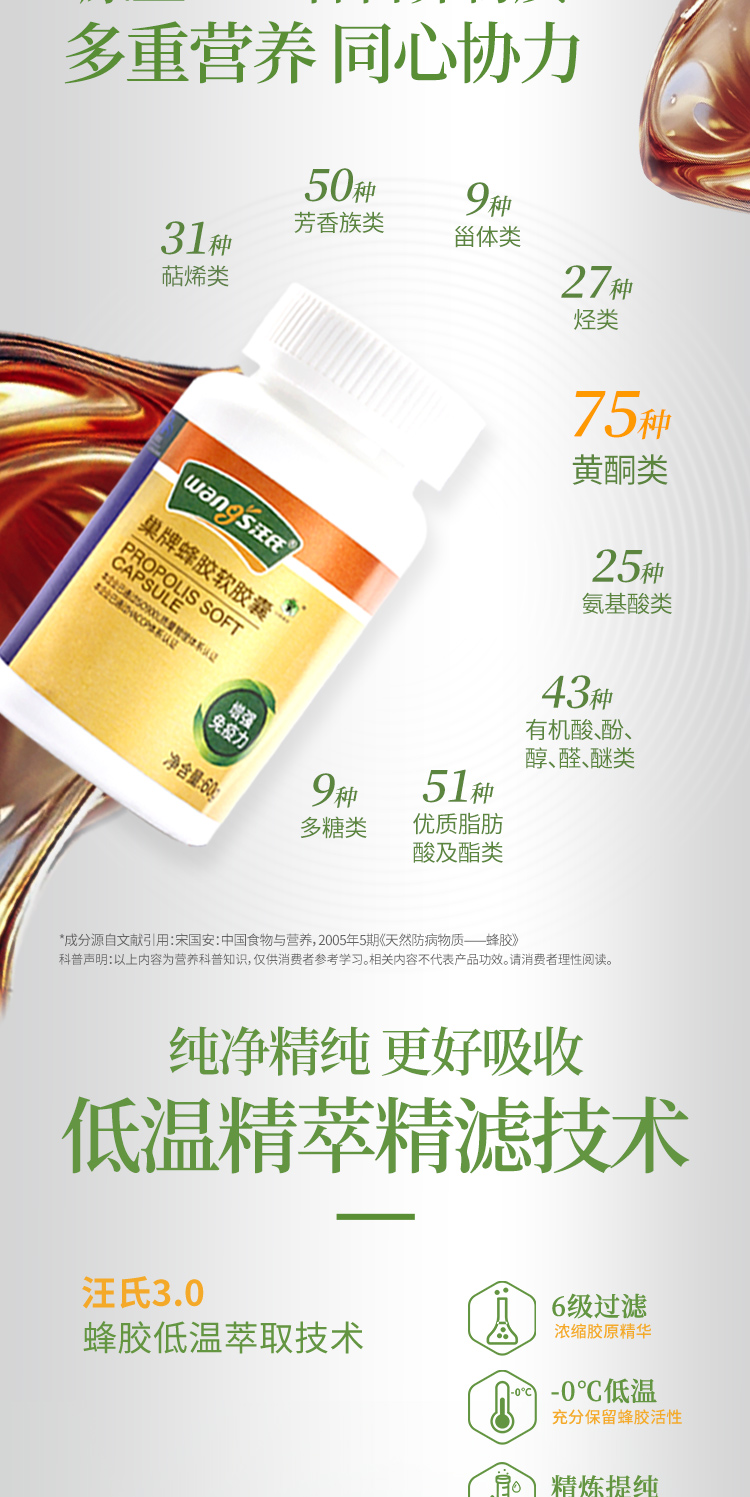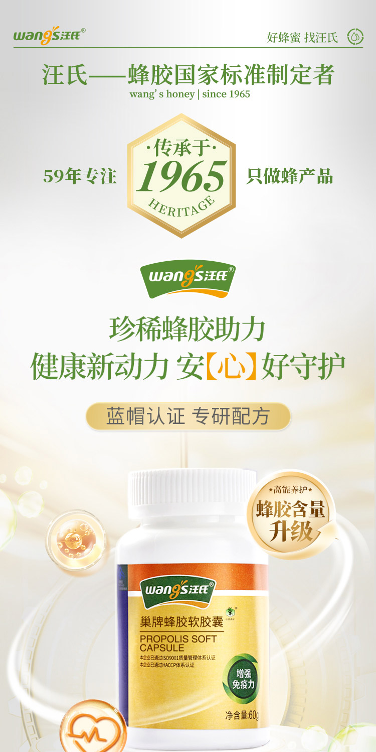 【汪氏】巢牌蜂胶软胶囊500mg/粒*120粒(紫悦蜂胶)