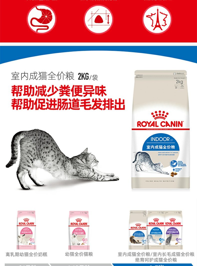 皇家猫粮I27室内成猫猫粮2KG去毛球猫粮成猫猫主粮