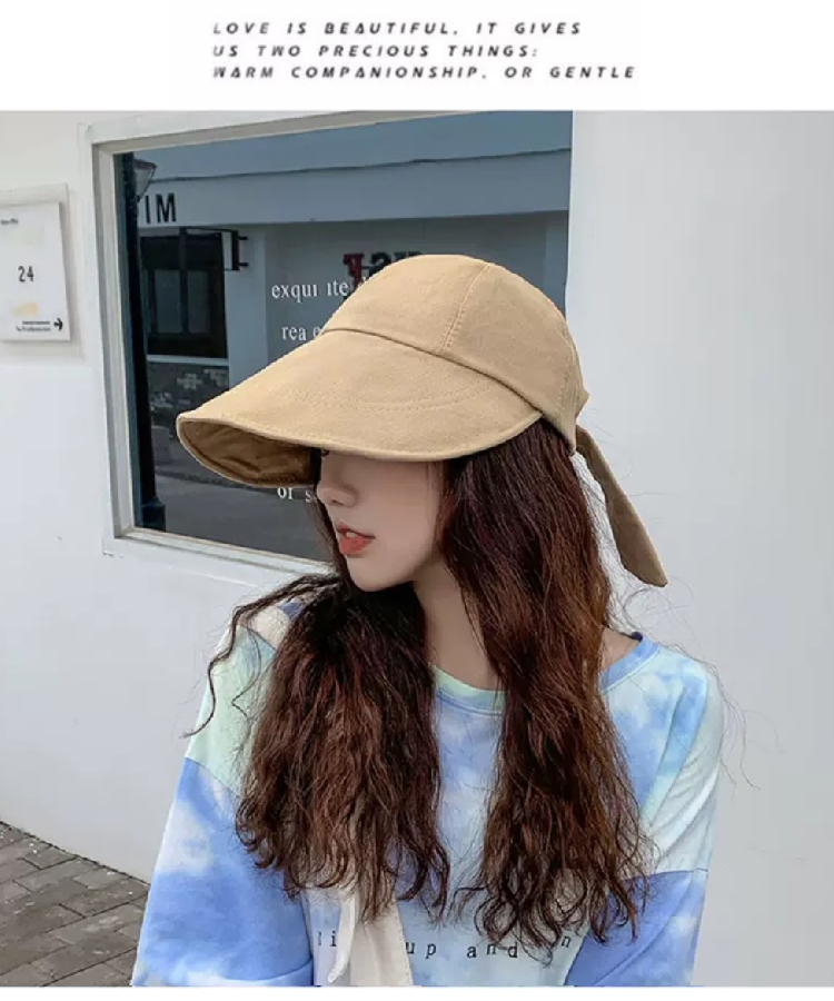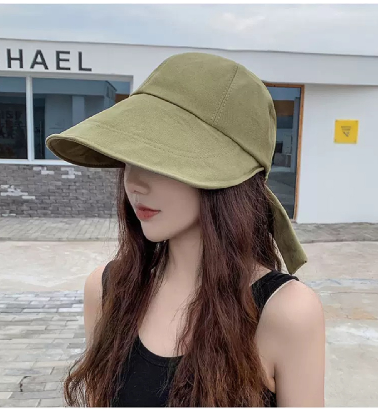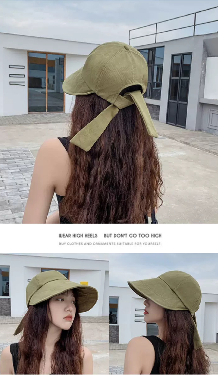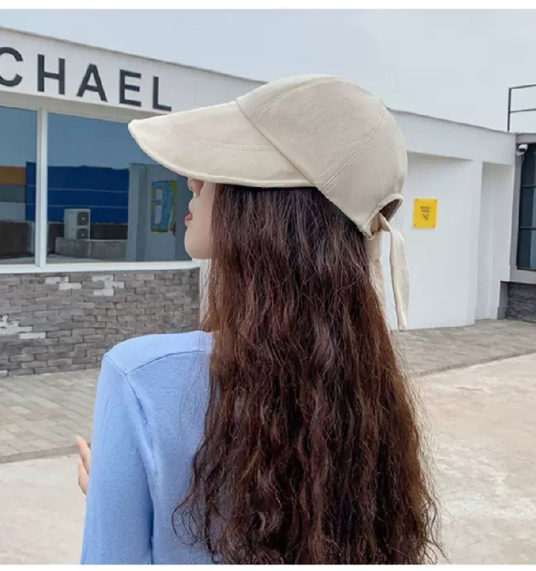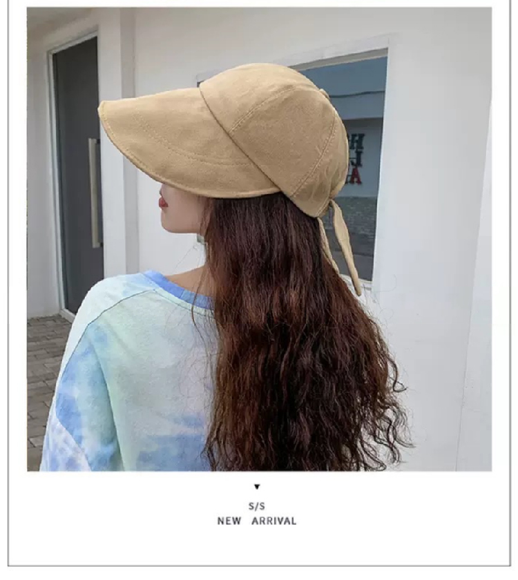 【新潮流防晒鸭舌帽】 韩版夏季潮流大宽檐遮阳帽女 日系棉麻网红系带鸭舌渔夫帽