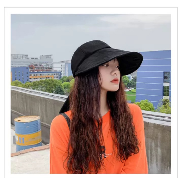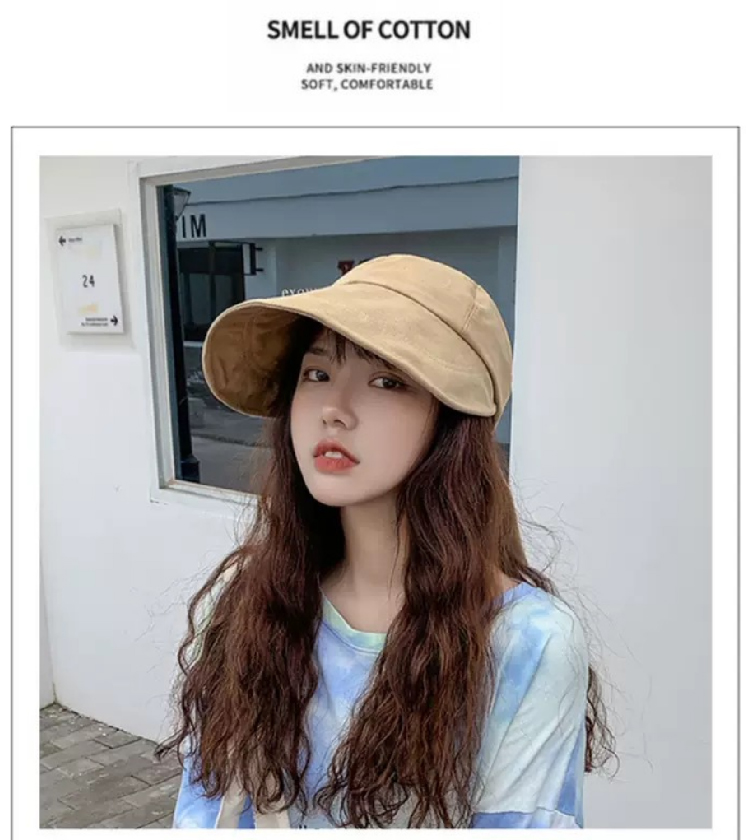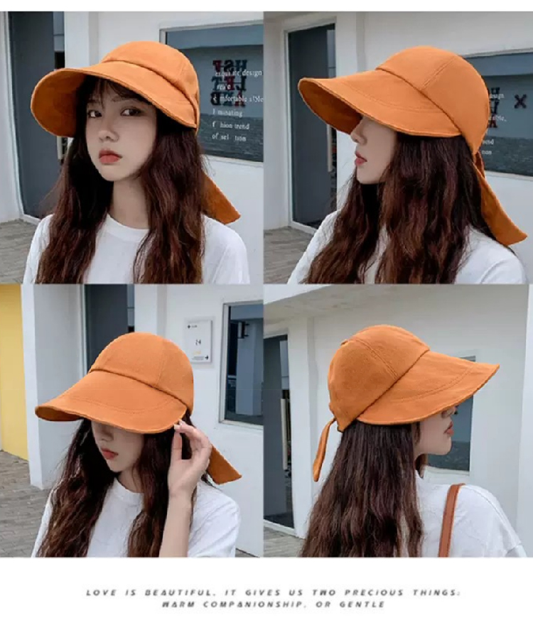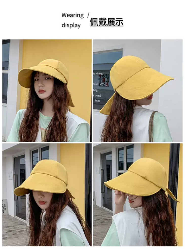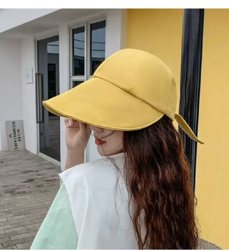【新潮流防晒鸭舌帽】 韩版夏季潮流大宽檐遮阳帽女 日系棉麻网红系带鸭舌渔夫帽