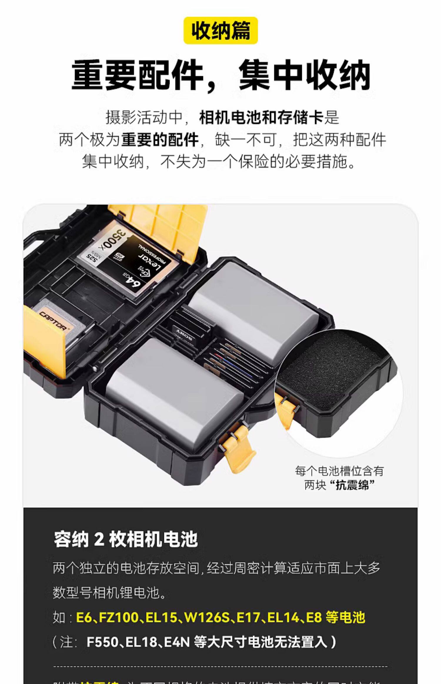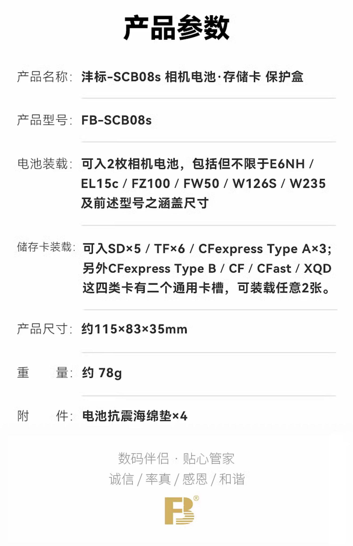 狼族优选丨沣标(FB)SD TF CF XQD CFe存储卡/微单反相机电池二合一收纳保护盒-FB-SCB08s