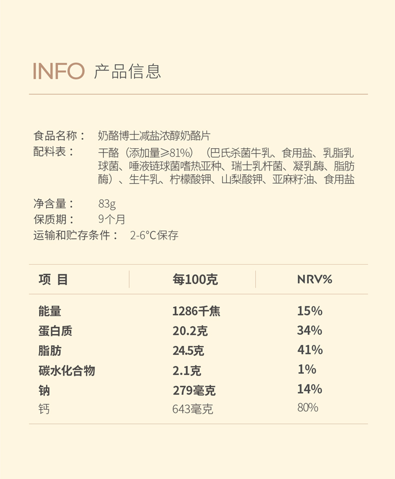 【代发】奶酪博士简盐浓醇奶酪片83g*5袋