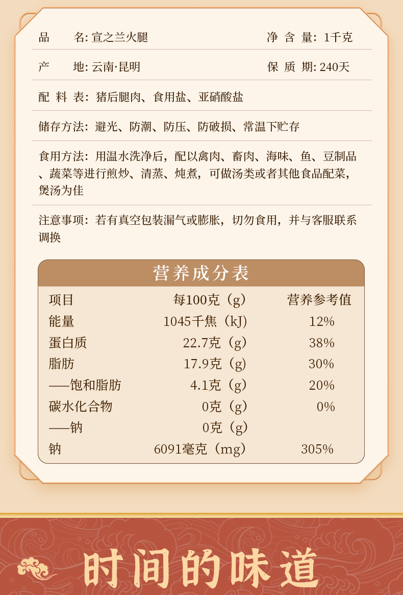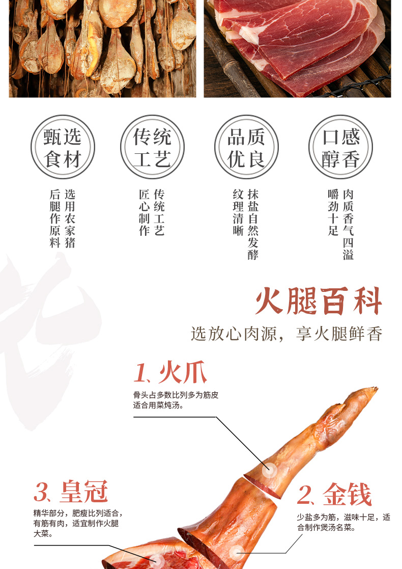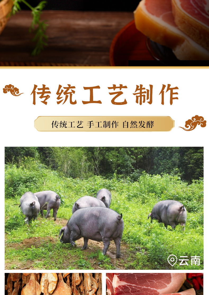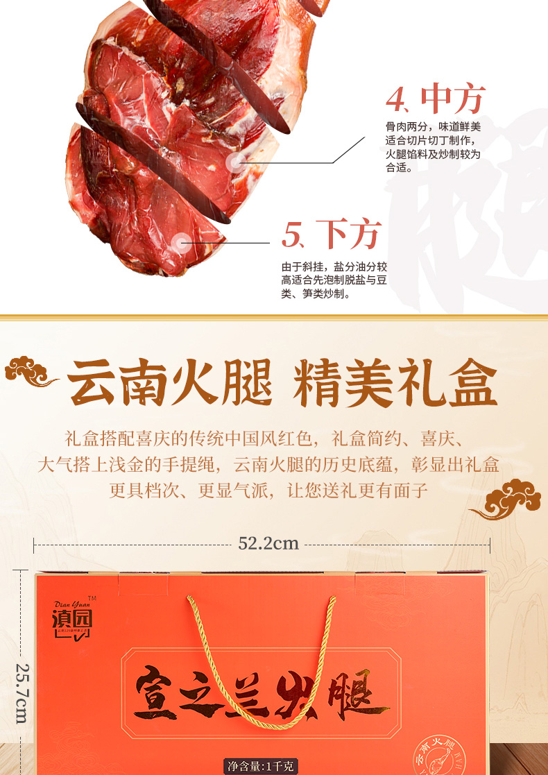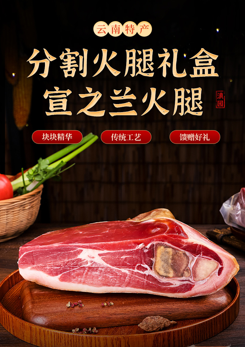云南滇园 整支切片火腿礼盒1000克/400克 袋装/ 3500克礼盒/500克少盐,多种规格