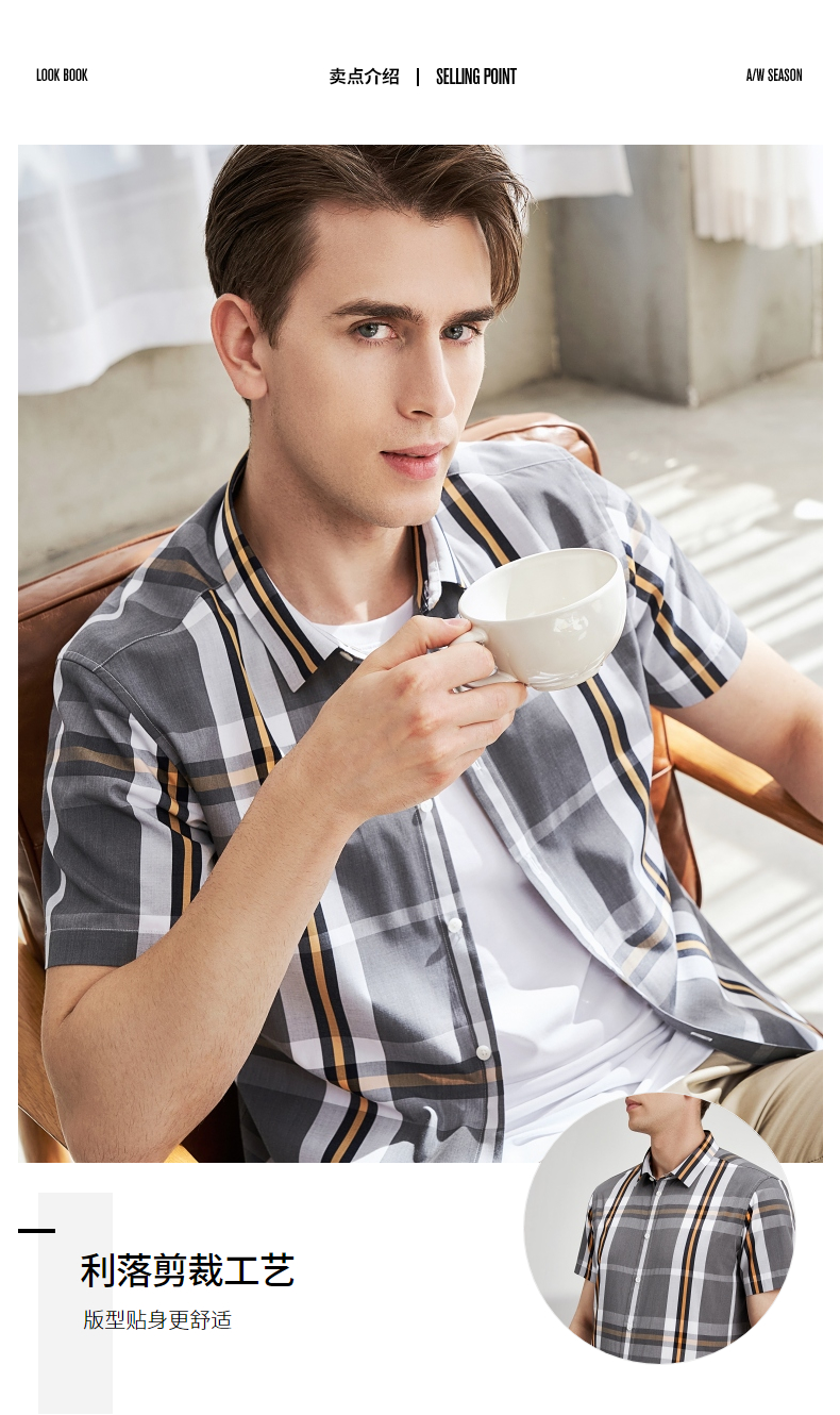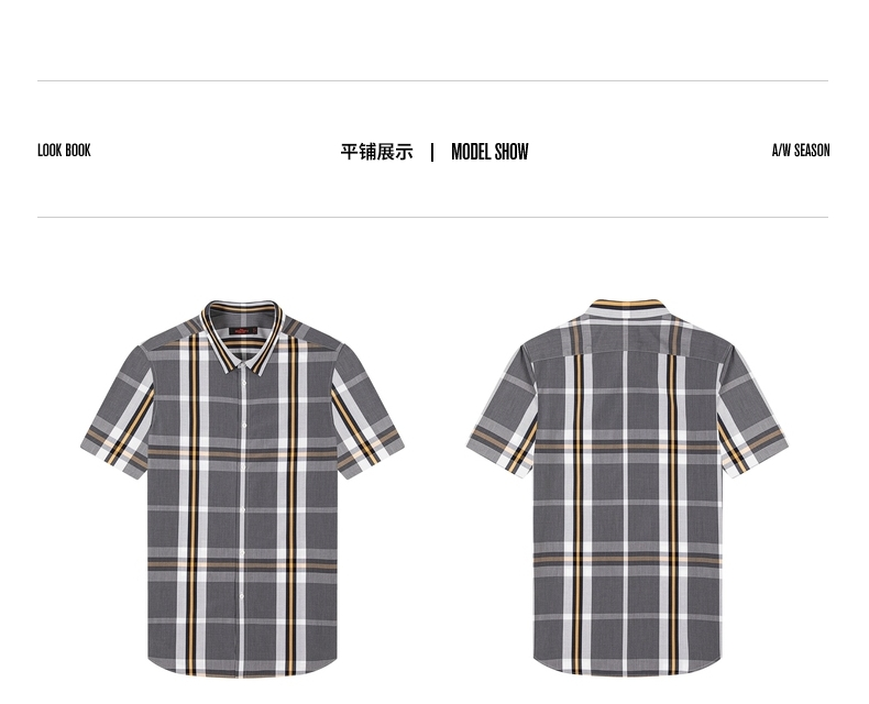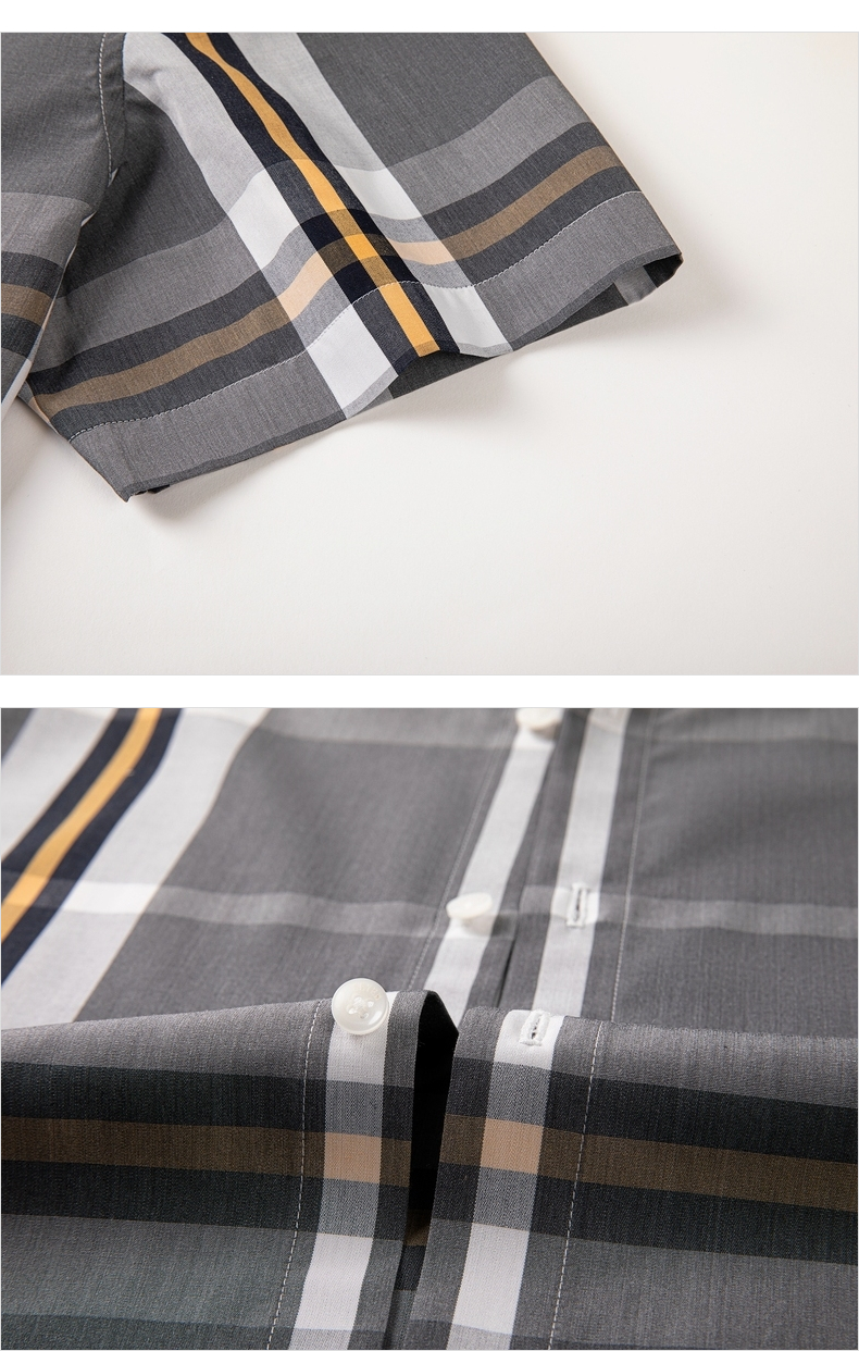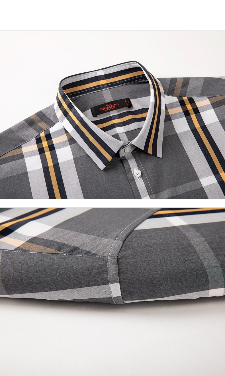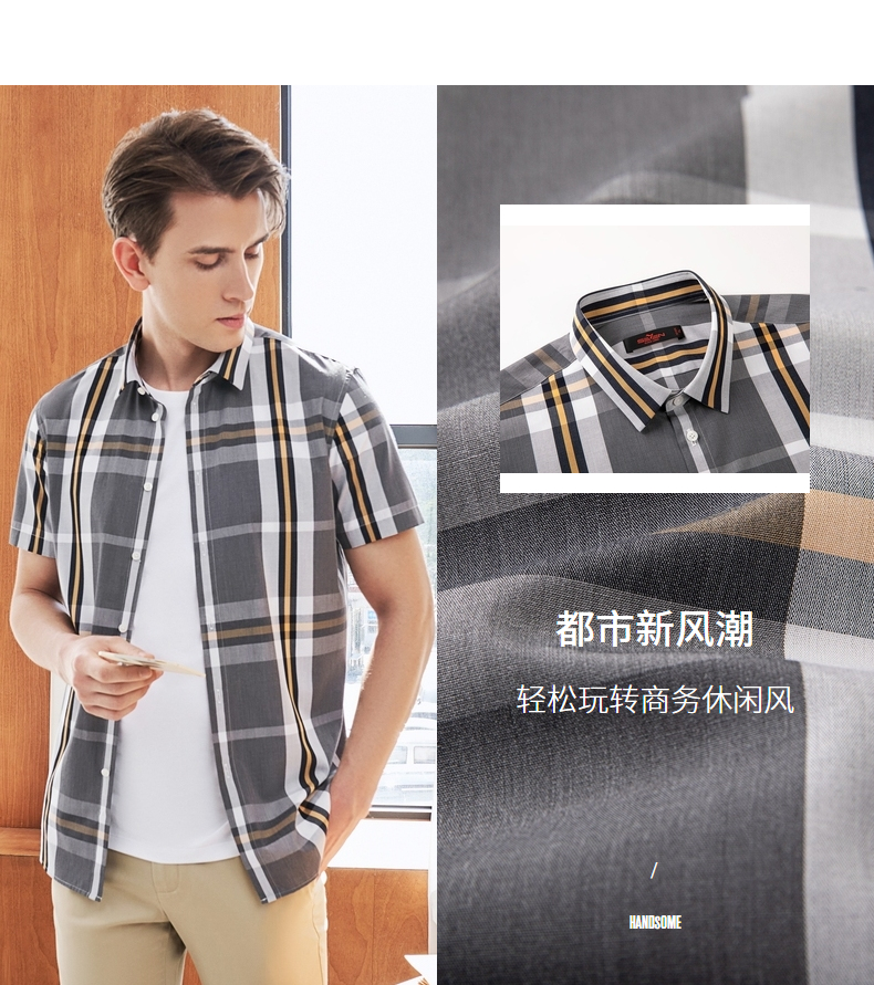 【特价】柒牌衬衫男士商务休闲夏季新款撞色格纹灰色青年翻领短袖衬衣 122A70900