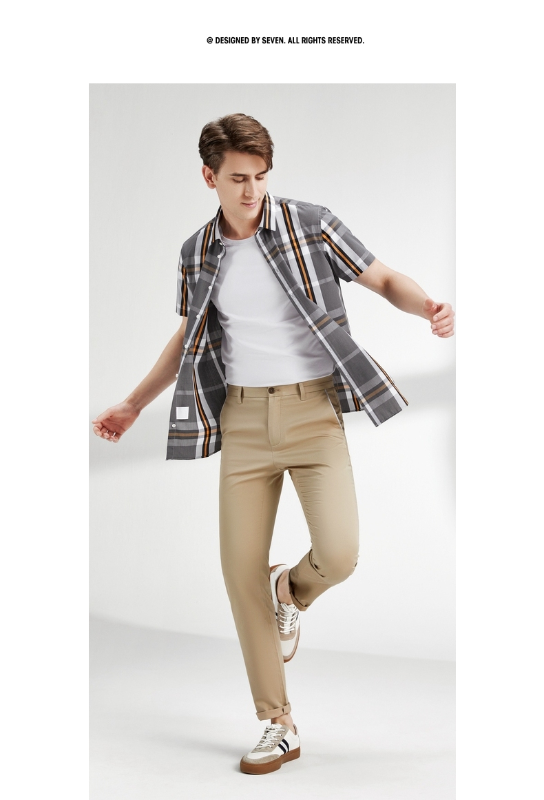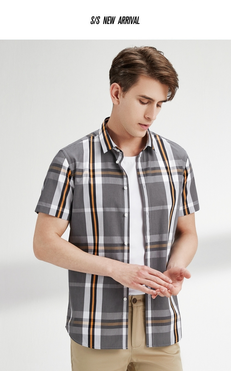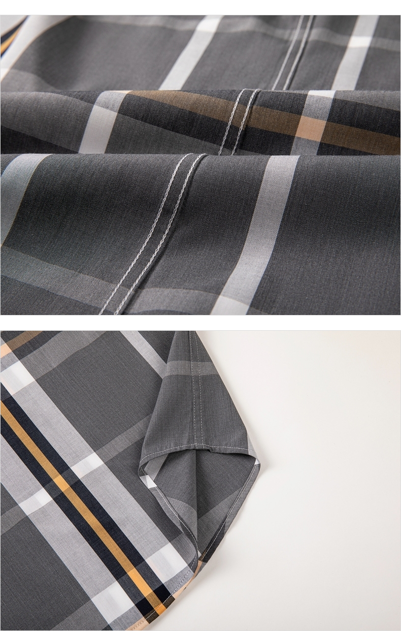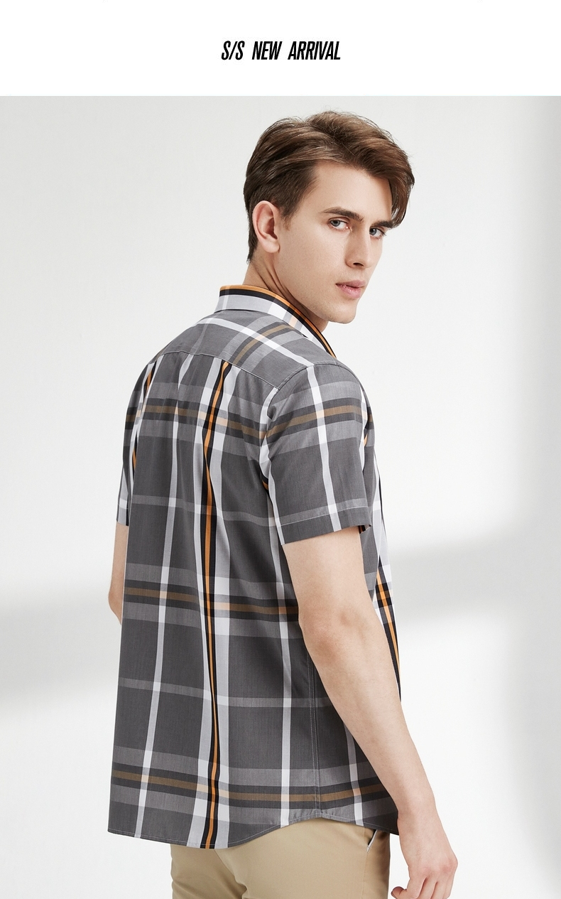【特价】柒牌衬衫男士商务休闲夏季新款撞色格纹灰色青年翻领短袖衬衣 122A70900