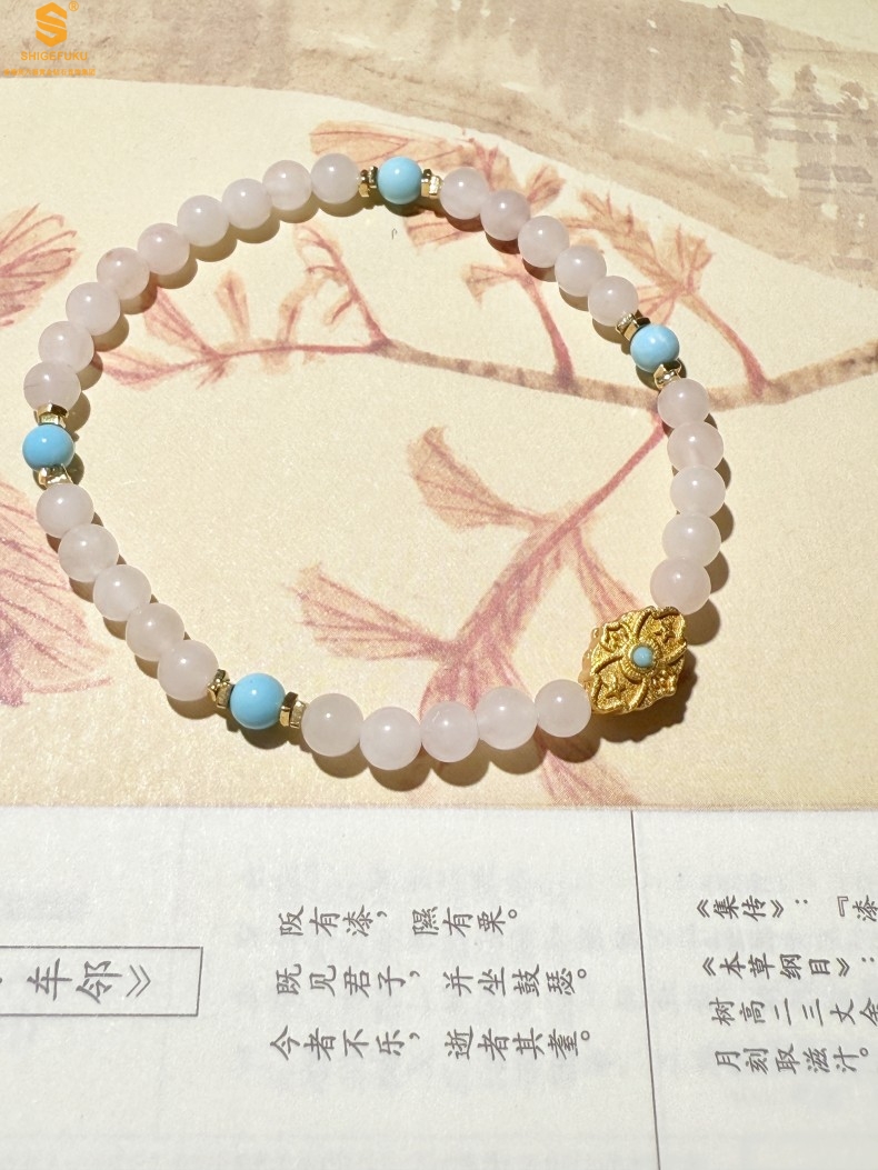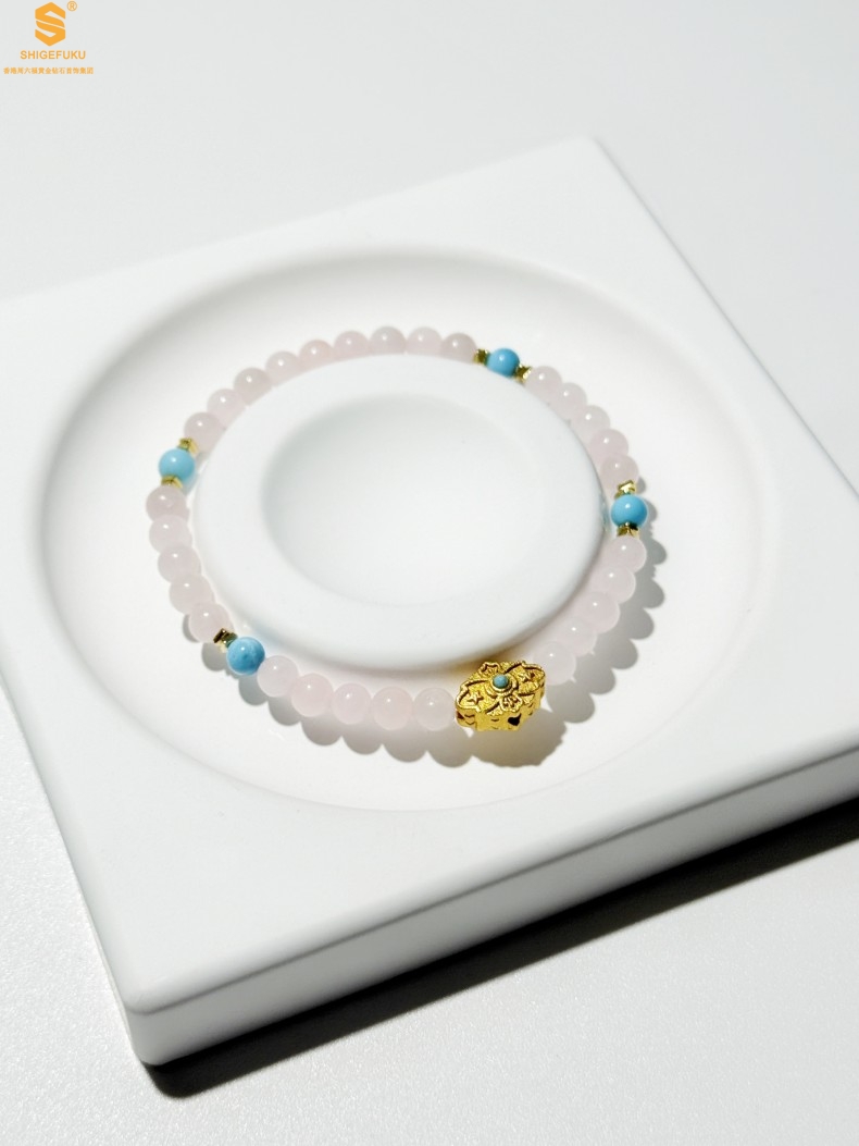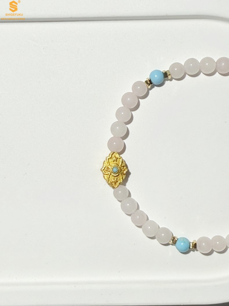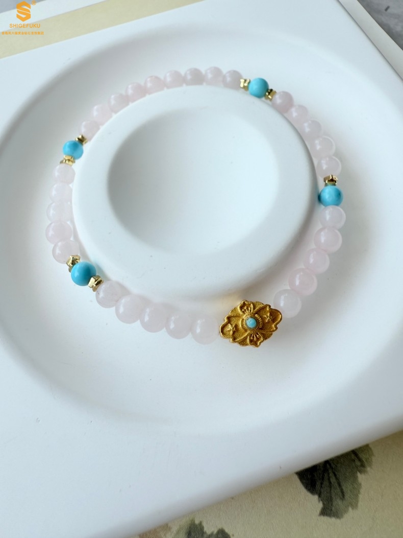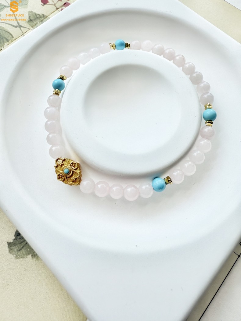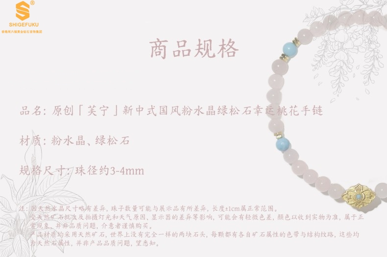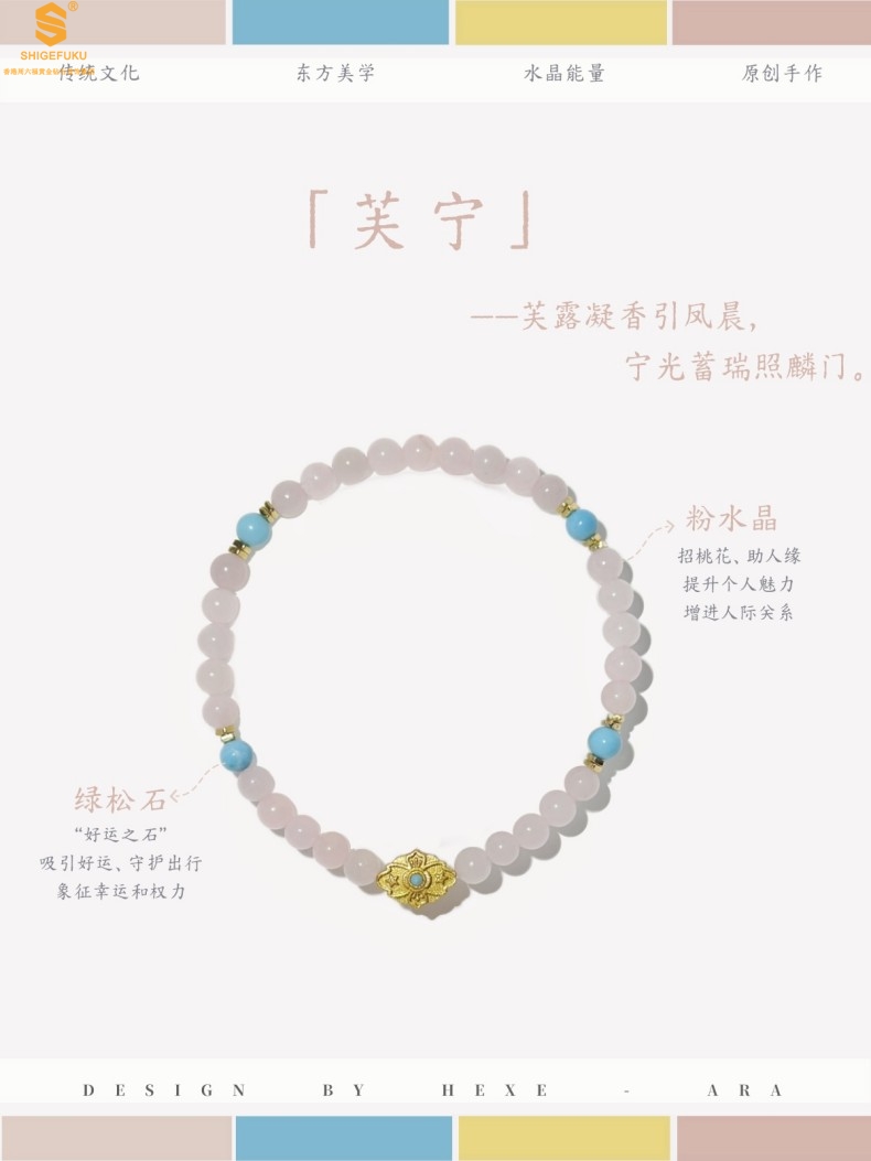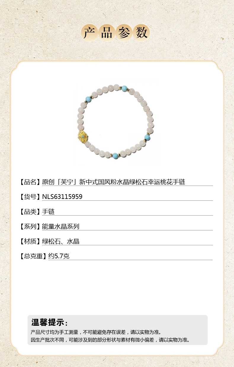 【品名】原创「芙宁」新中式国风粉水晶绿松石幸运桃花手链