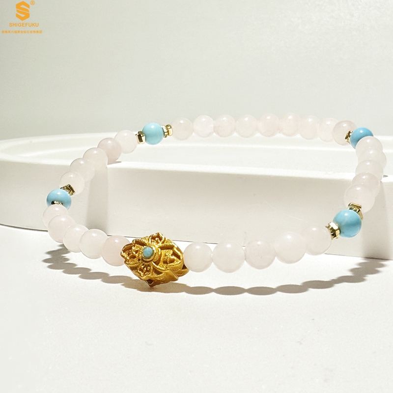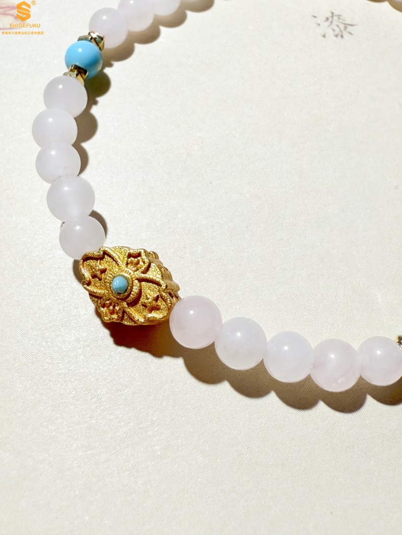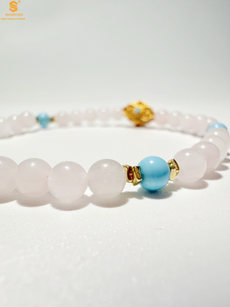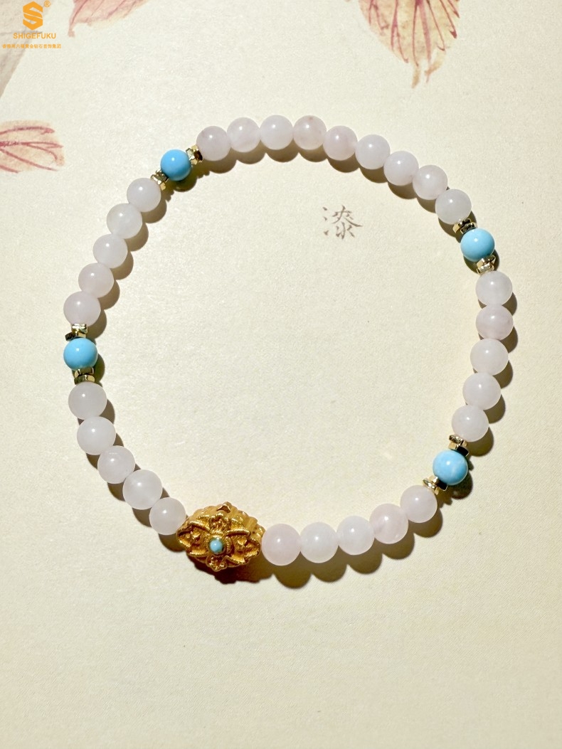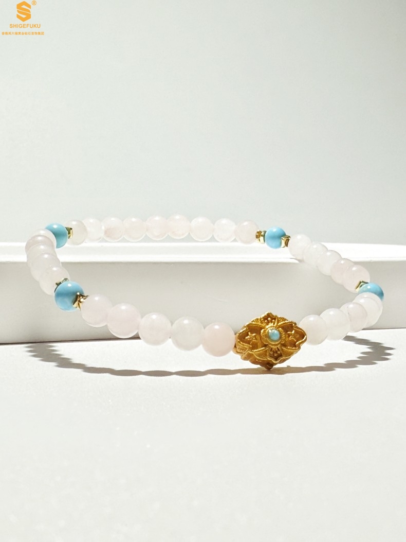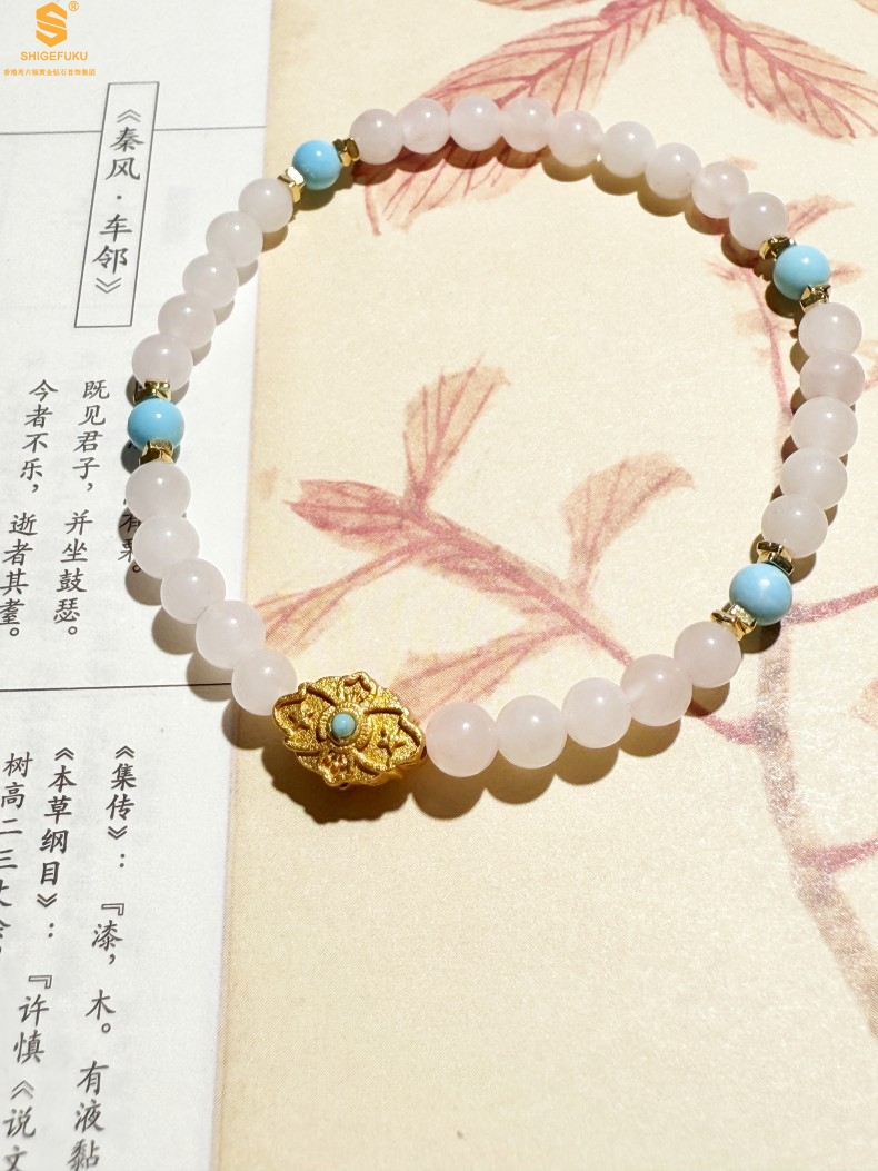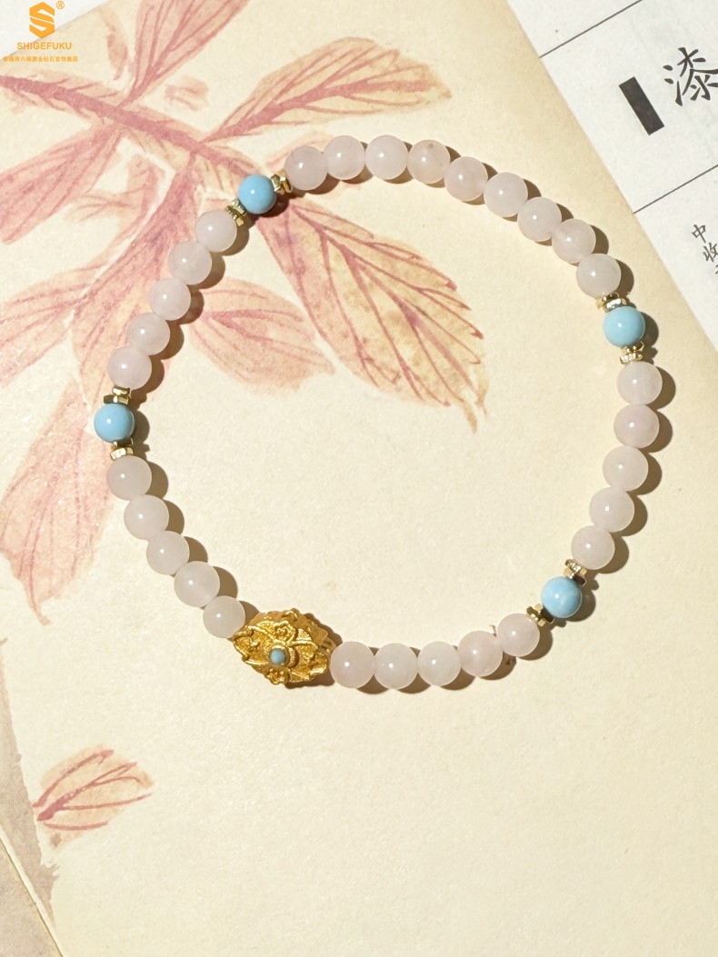 【品名】原创「芙宁」新中式国风粉水晶绿松石幸运桃花手链