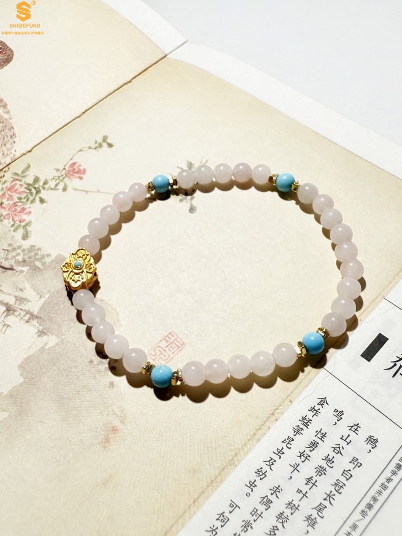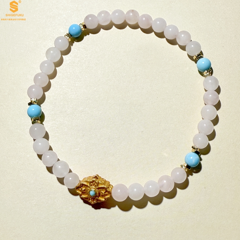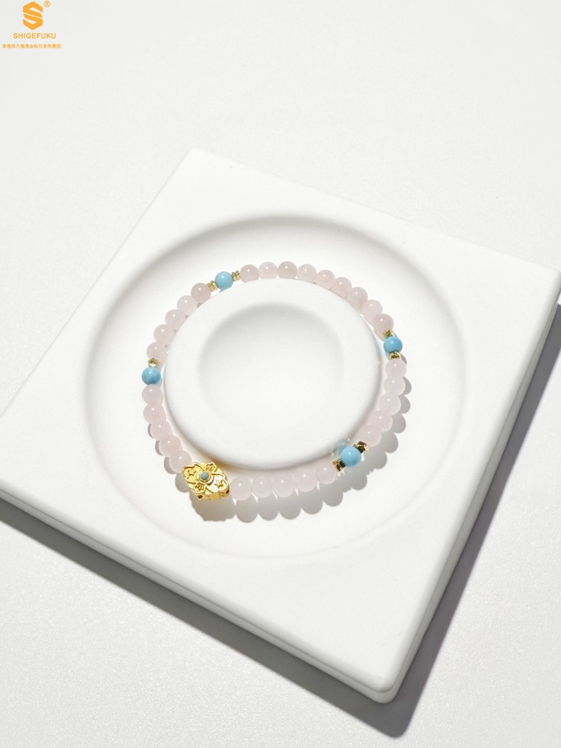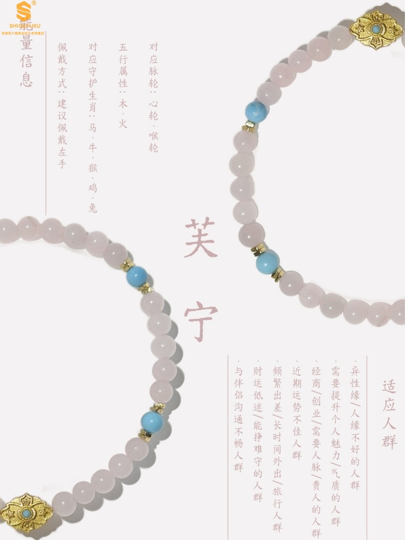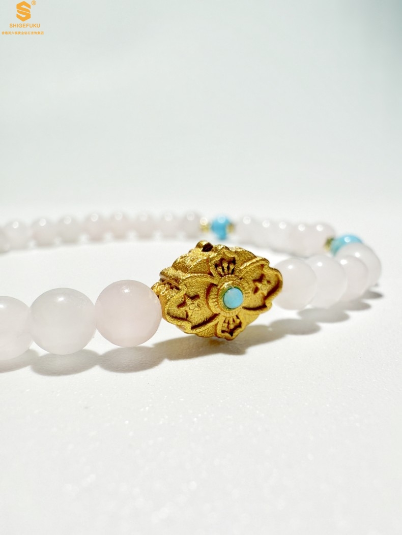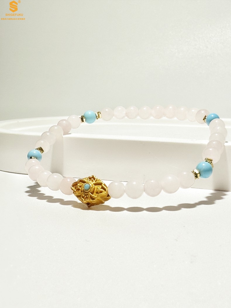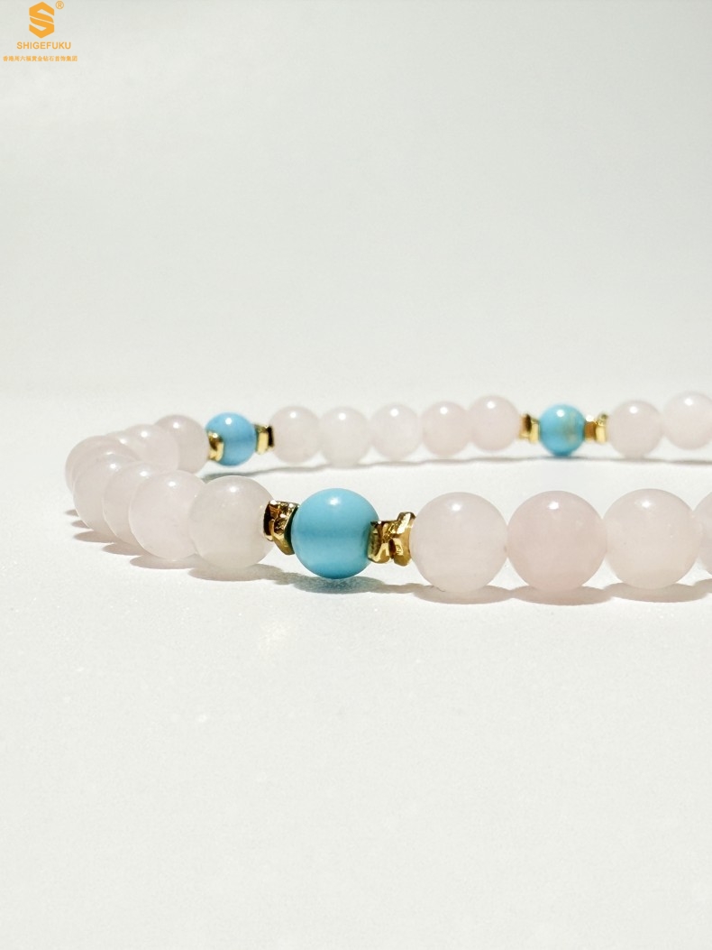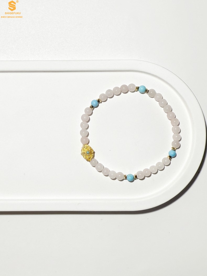 【品名】原创「芙宁」新中式国风粉水晶绿松石幸运桃花手链