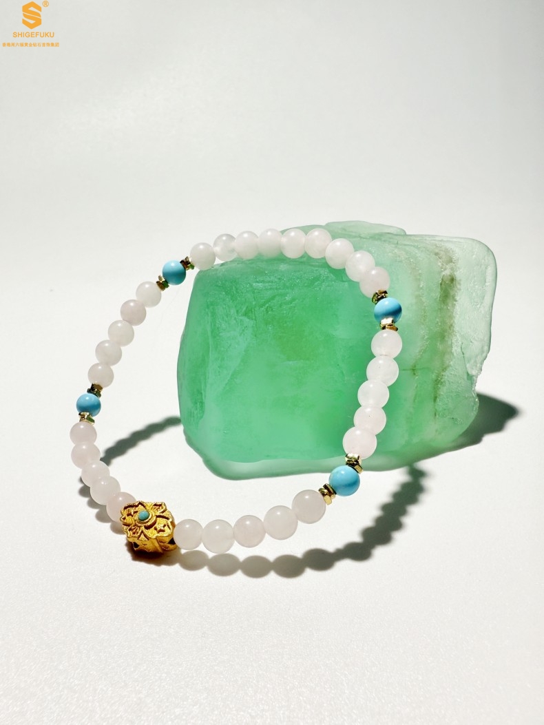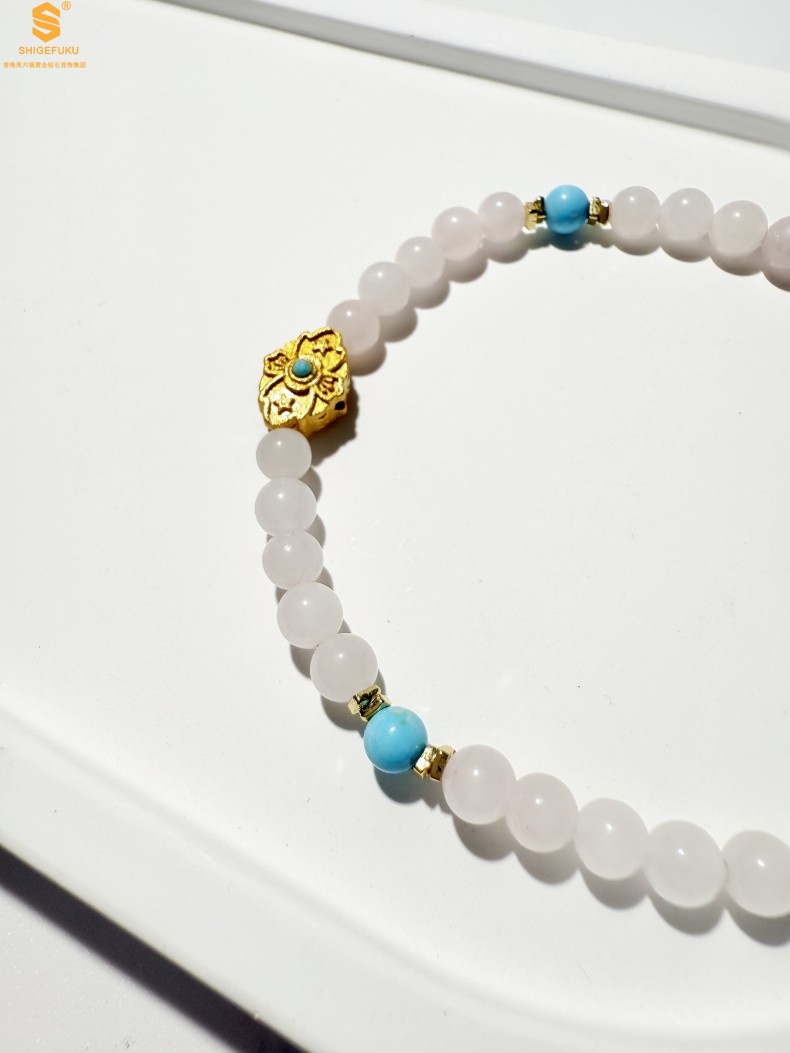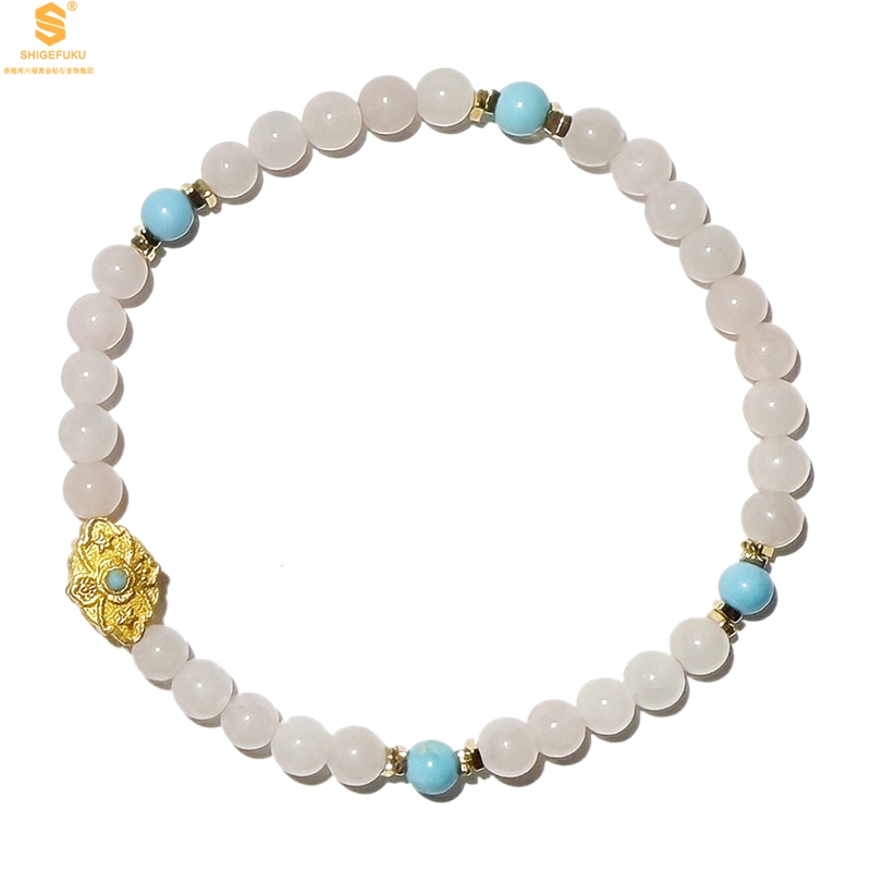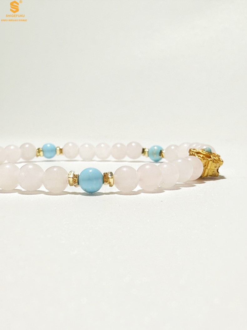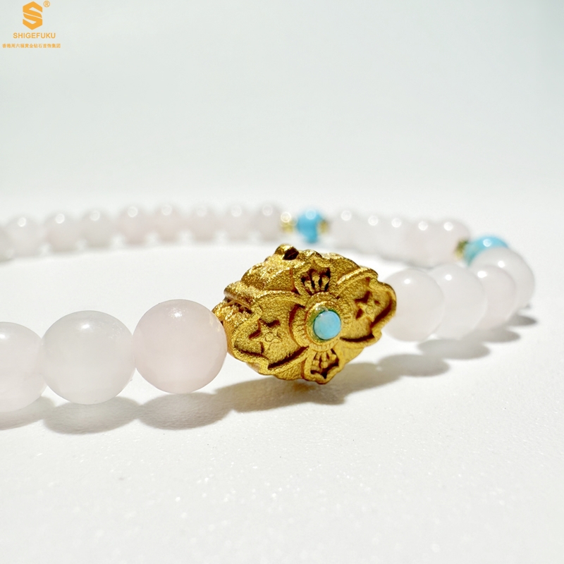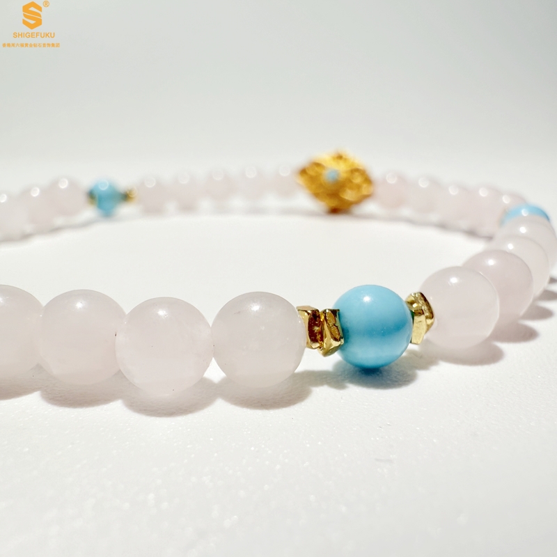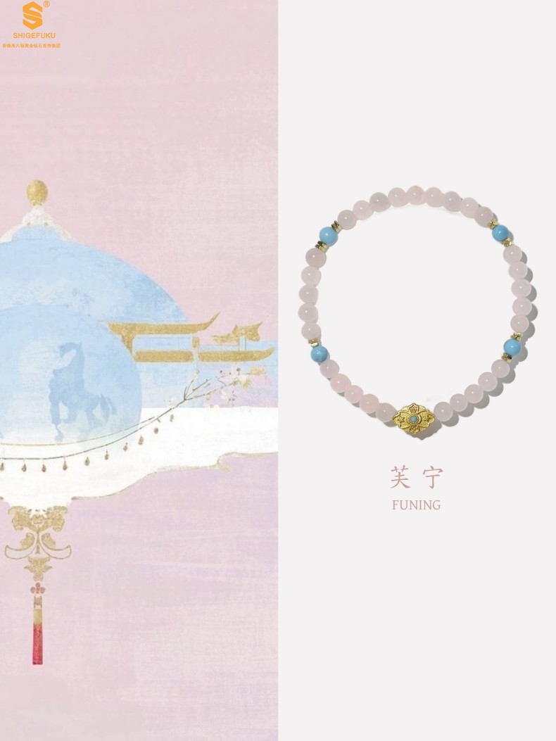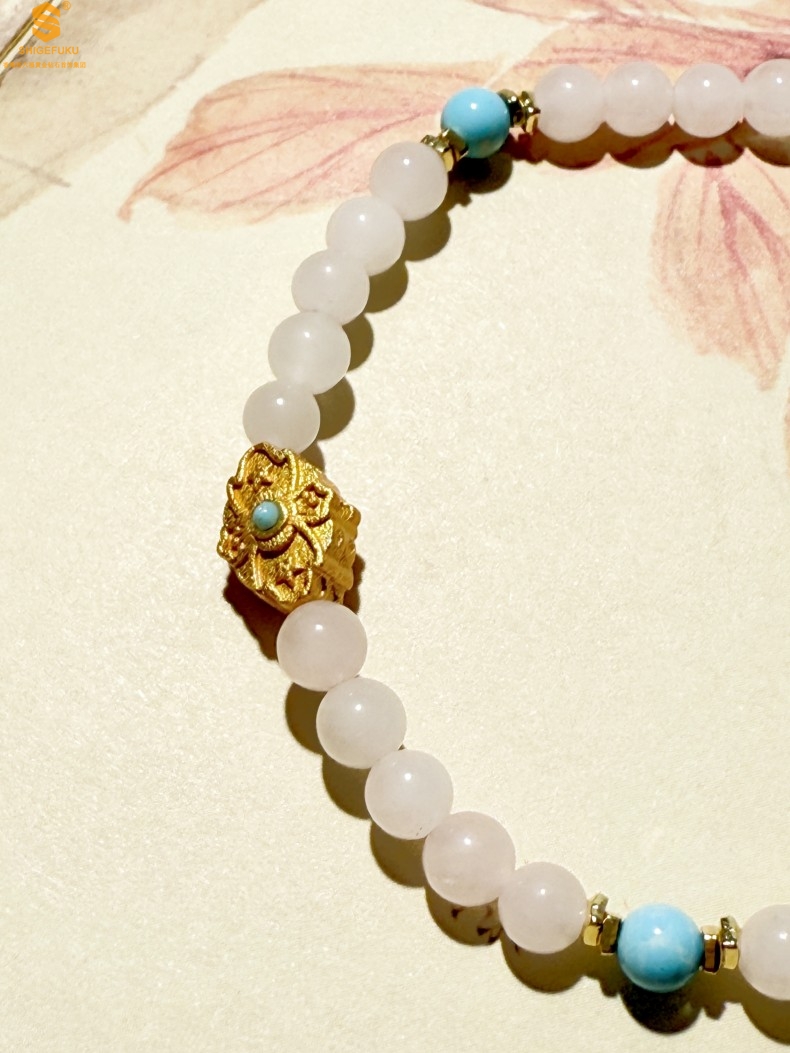 【品名】原创「芙宁」新中式国风粉水晶绿松石幸运桃花手链