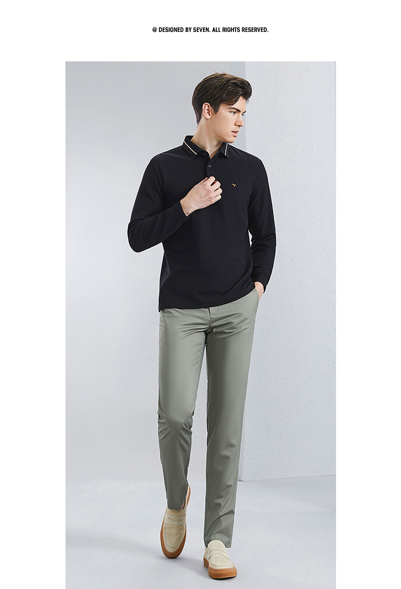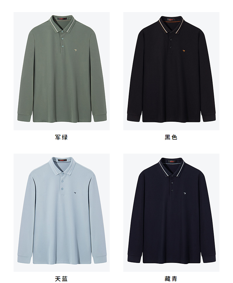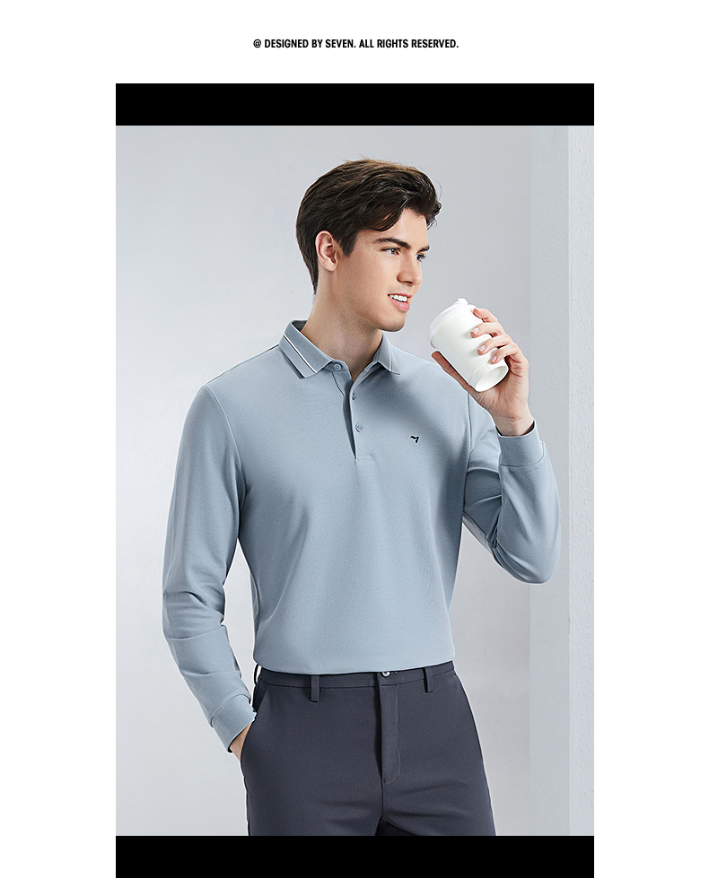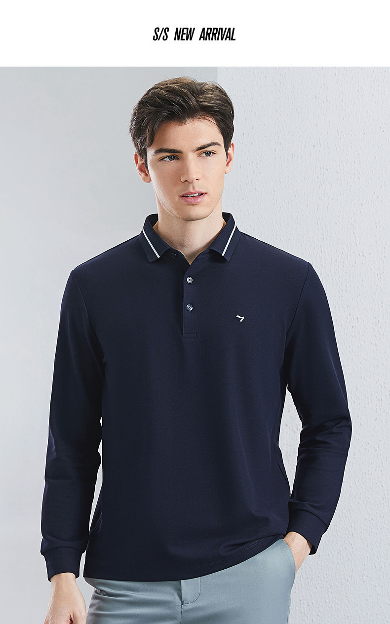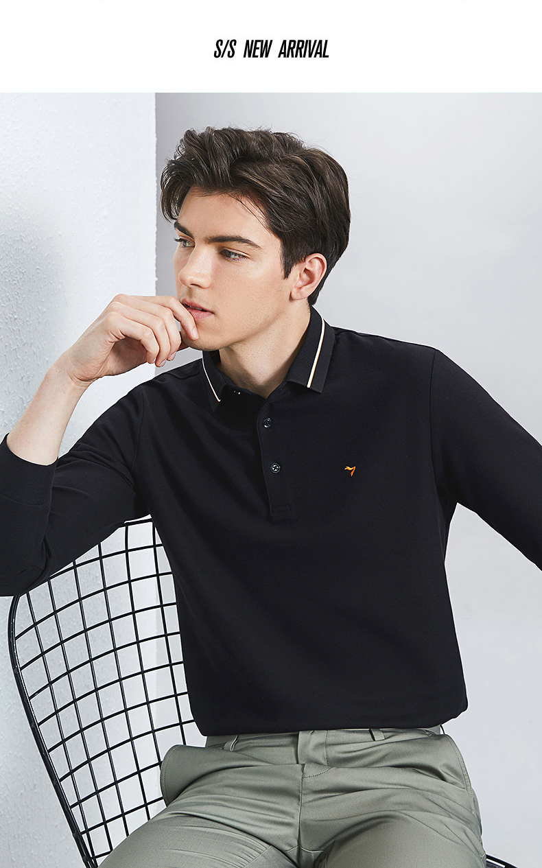 【不变形领】柒牌男装长袖polo衫男2024春季新款商务休闲翻领体恤 126T73010