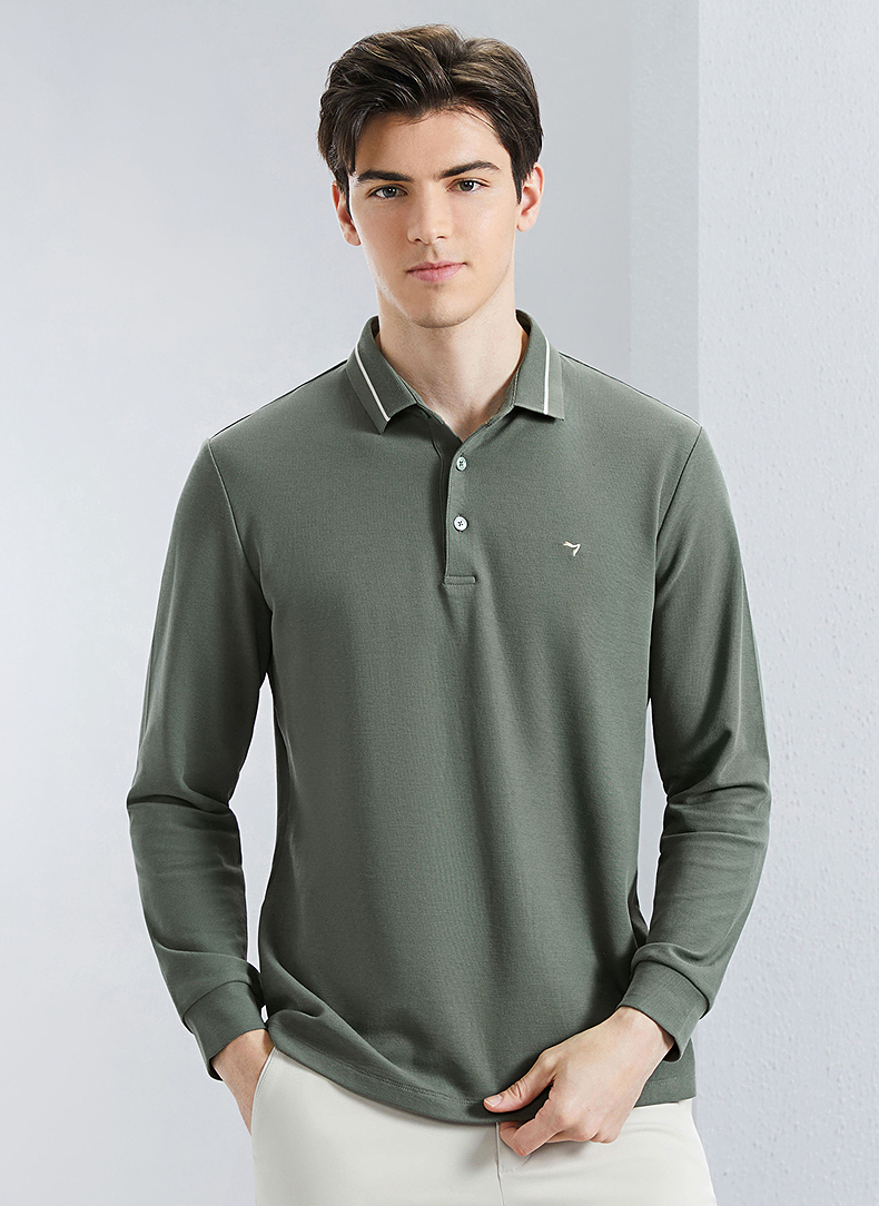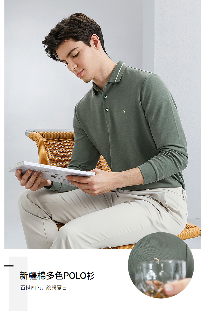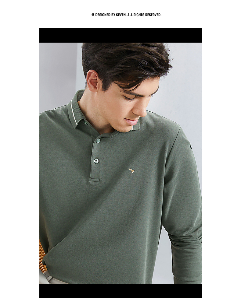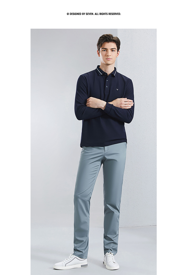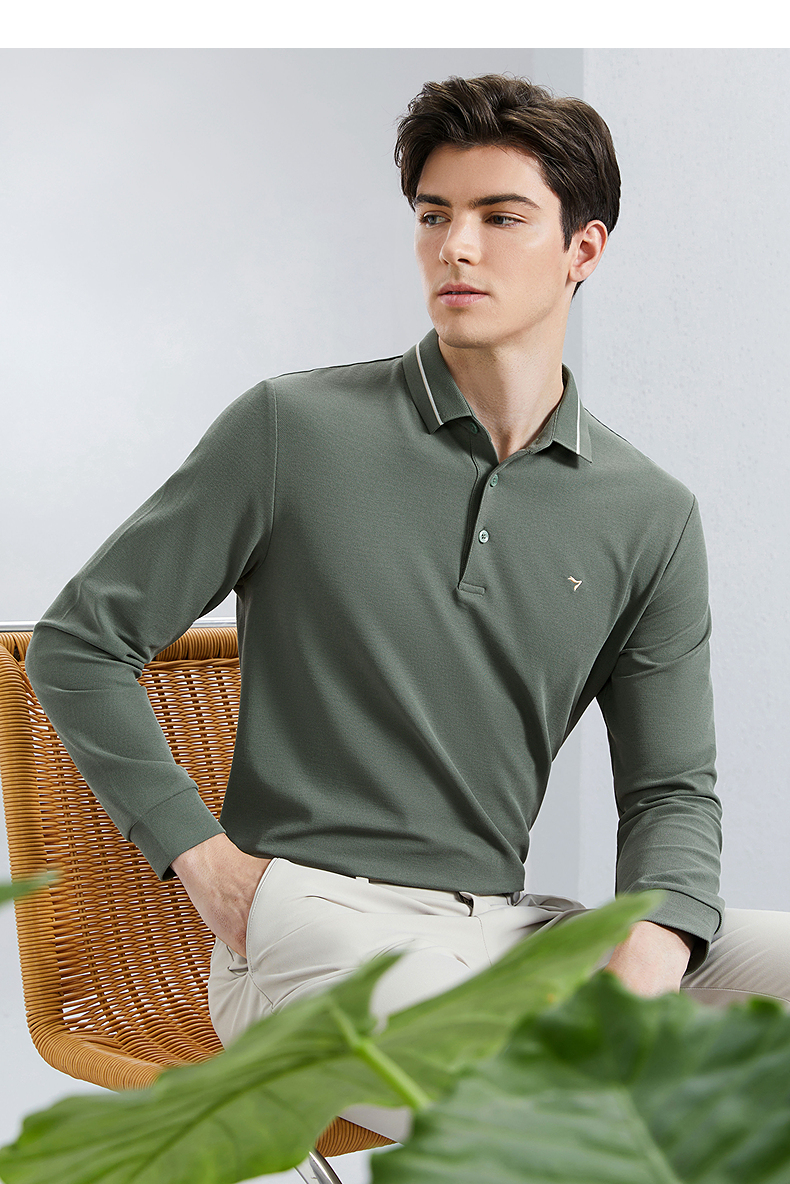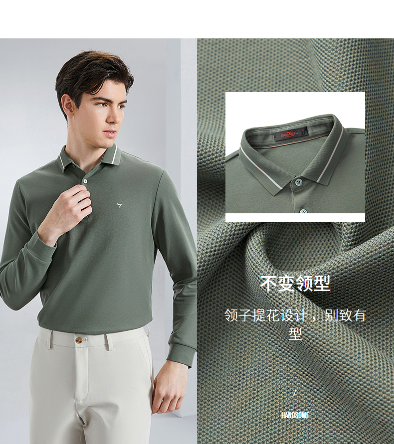 【不变形领】柒牌男装长袖polo衫男2024春季新款商务休闲翻领体恤 126T73010