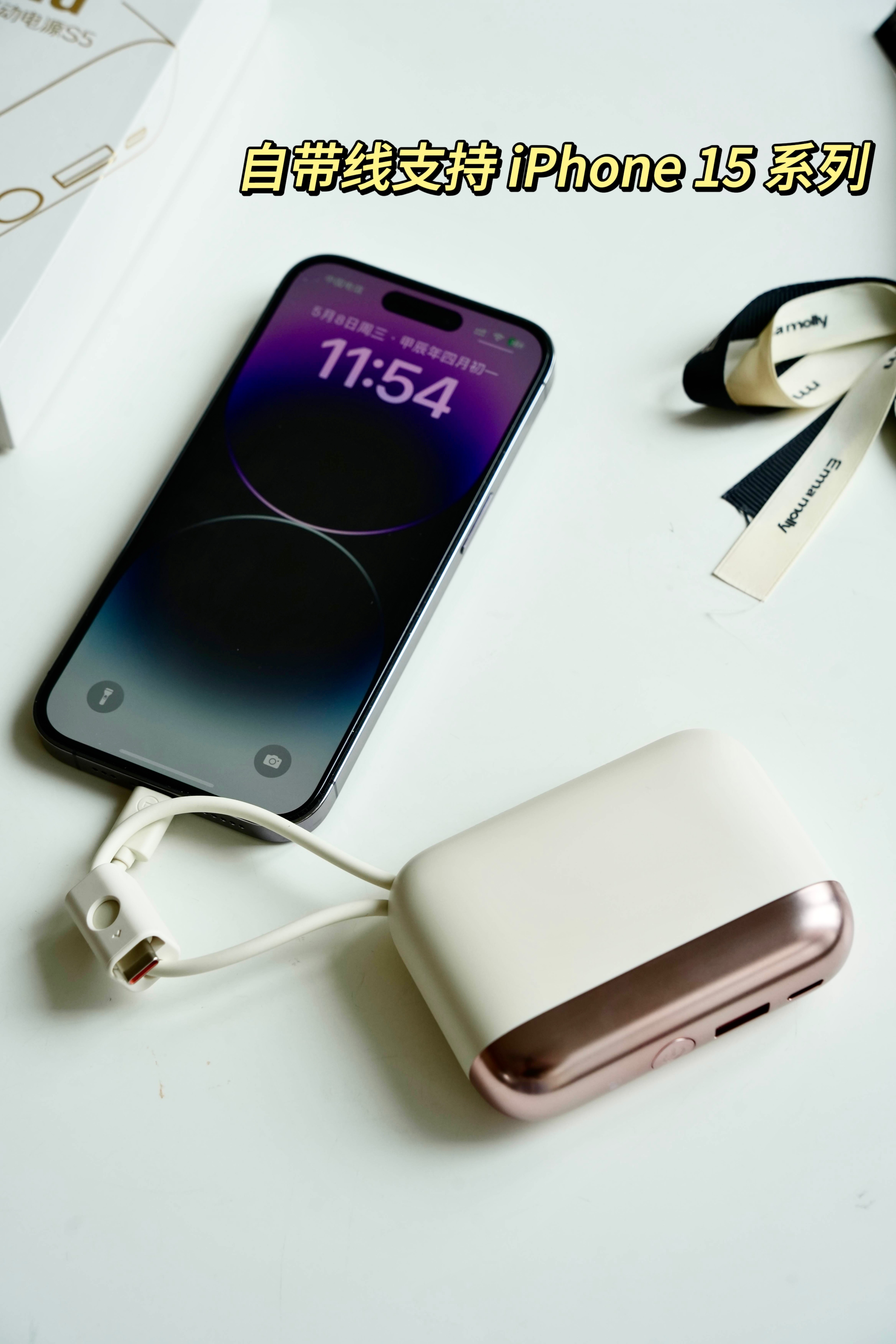 自带双线,Type-C+Lightning,支持绝大多数手0机,平板等设备的充电。