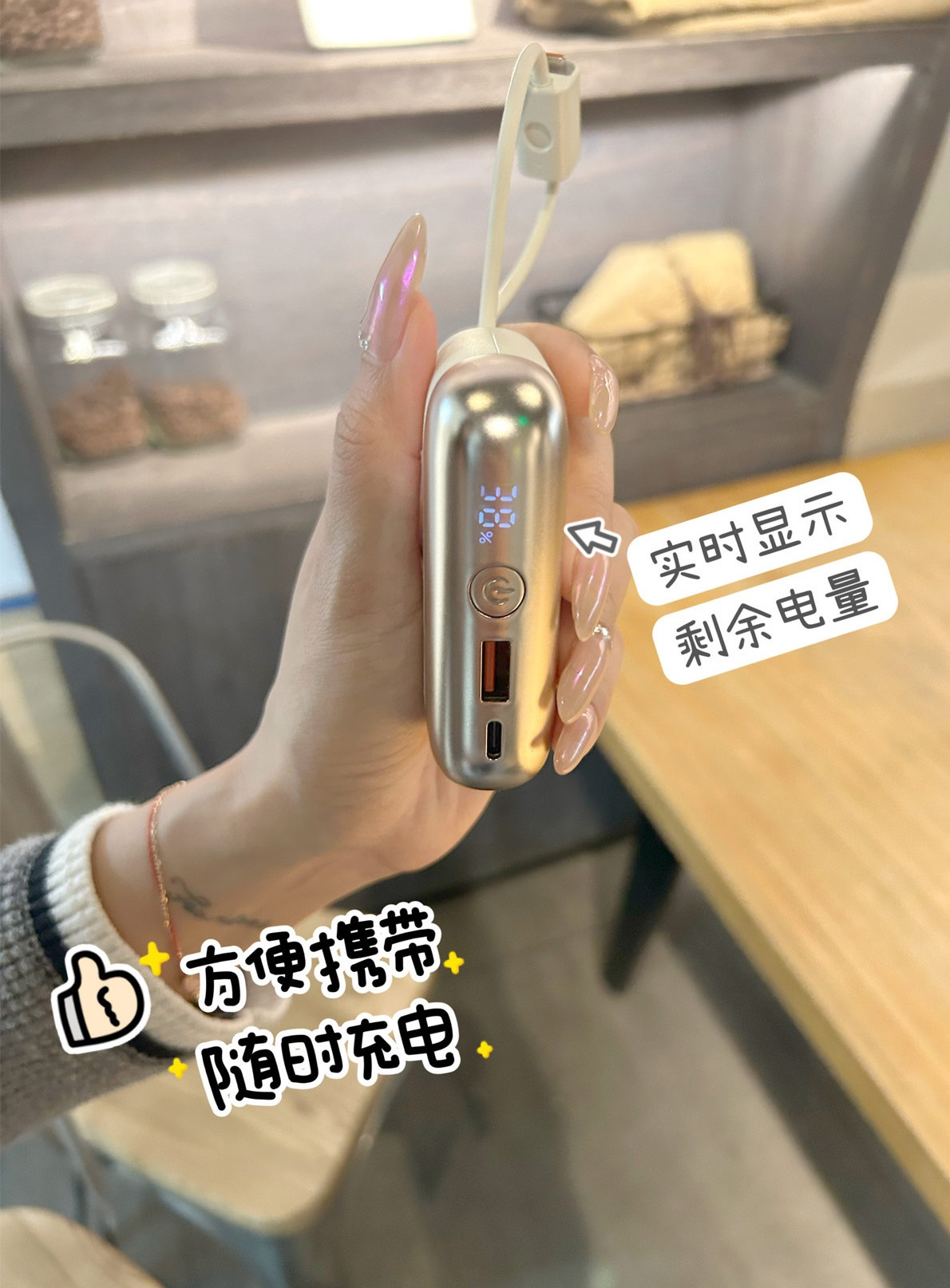 这款充电宝就很好兼具了“体积小“和“容量大”的优点出门随身携带,放在包里一点儿都不占地儿,真的超方便 ~