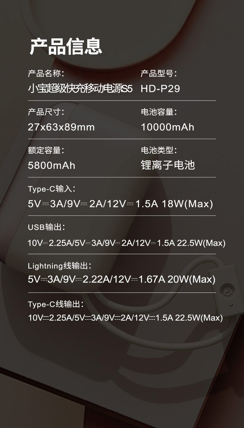 产品名称:幻响小宝超级快充移动电源S5