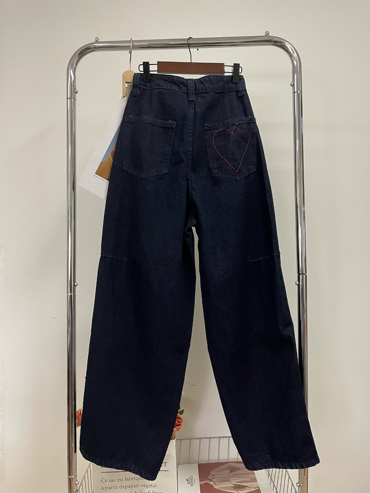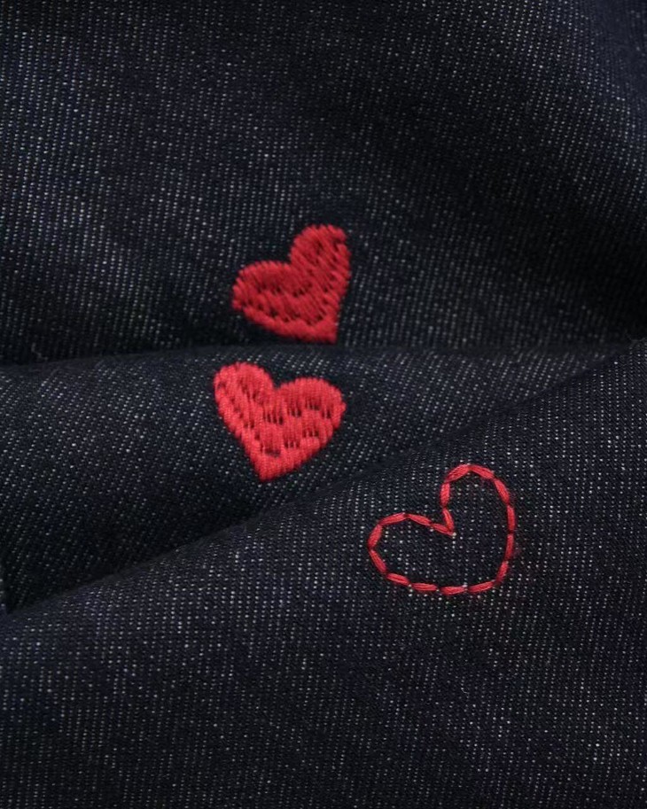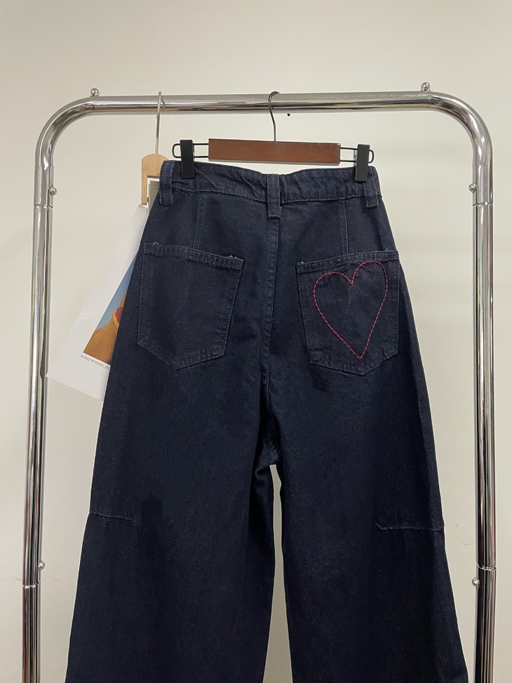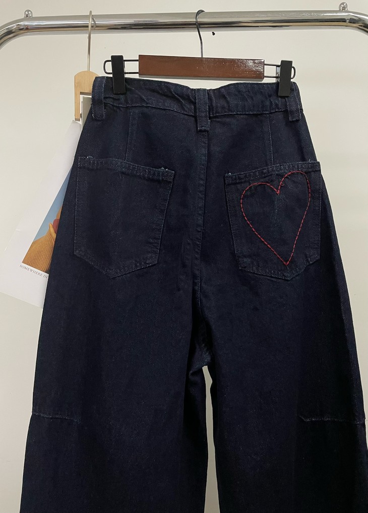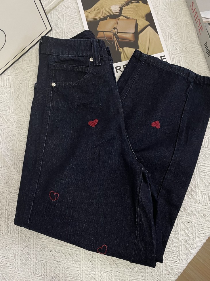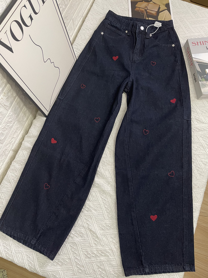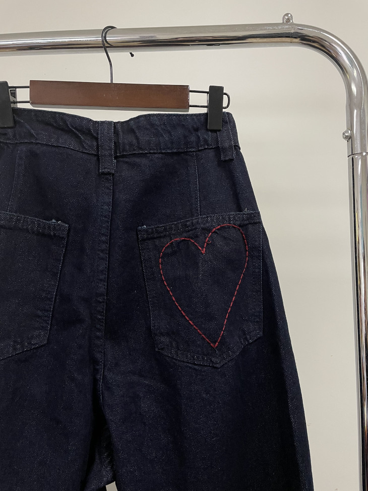 看看这裤型和刺绣,绝对又是王炸‼️ 爱心刺绣+弯刀立体剪裁 !显瘦遮胯 暗藏心机的明线立体弧形线, 一上身就是显瘦好穿,搭配率又高 实穿性强,想不到不买它的理由 而且是明星同款,价格上你们自行对比 我们家的价格真的很香了~ 蓝黑色的底色牛仔上,绣上红色的爱心♥️ 实心的、空心的,一整个爱住 普通的弯刀裤估计姐妹们已经看多了, 这样充满小心机的款式必须自留一条‼️