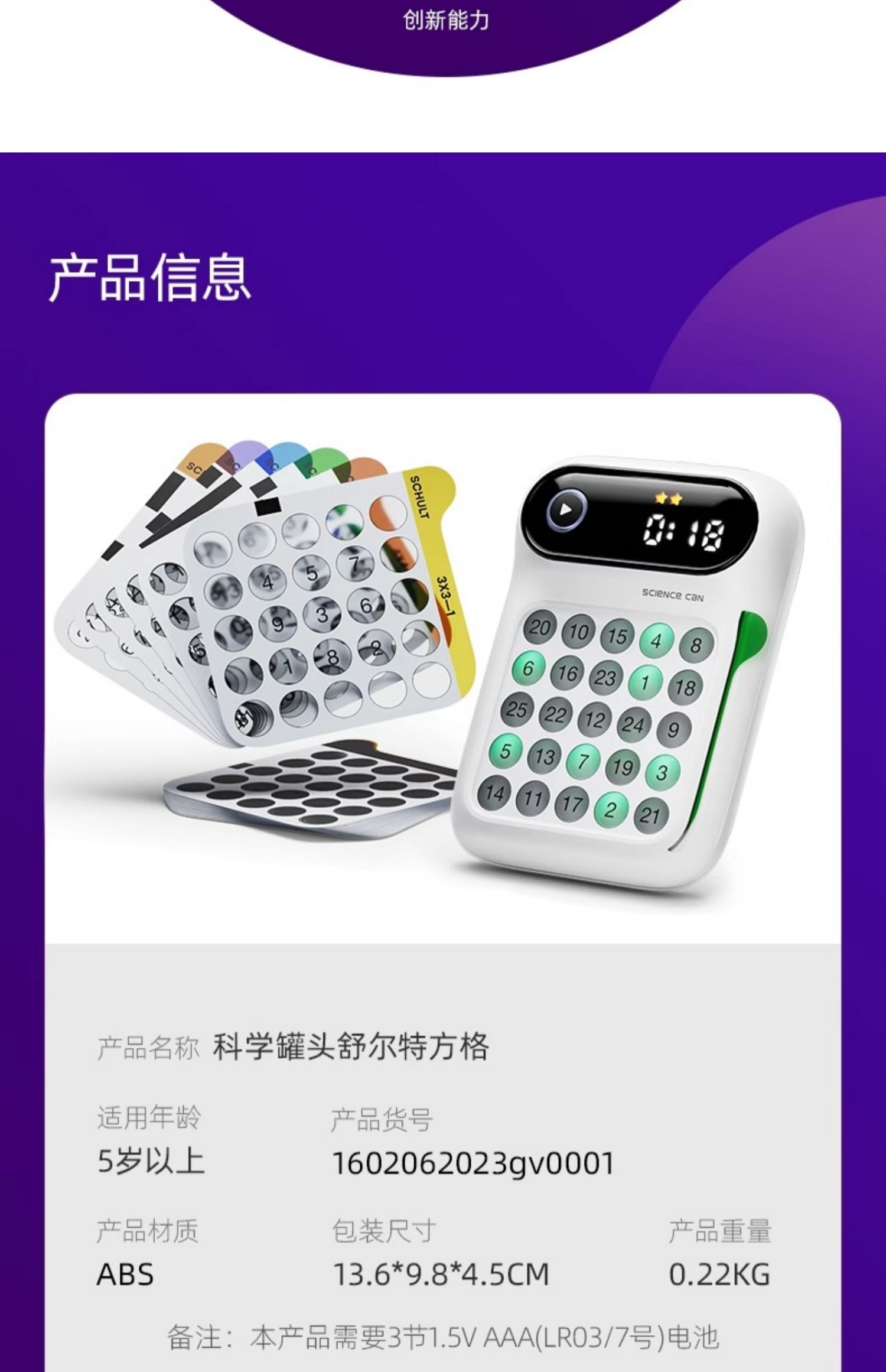 科学罐头舒尔特方格专注力注意力训练机器电子版6岁5以上益智玩具