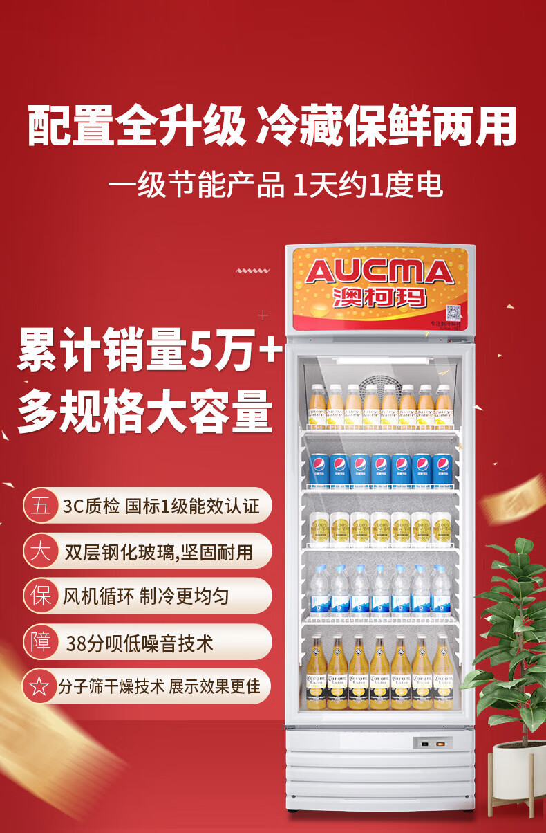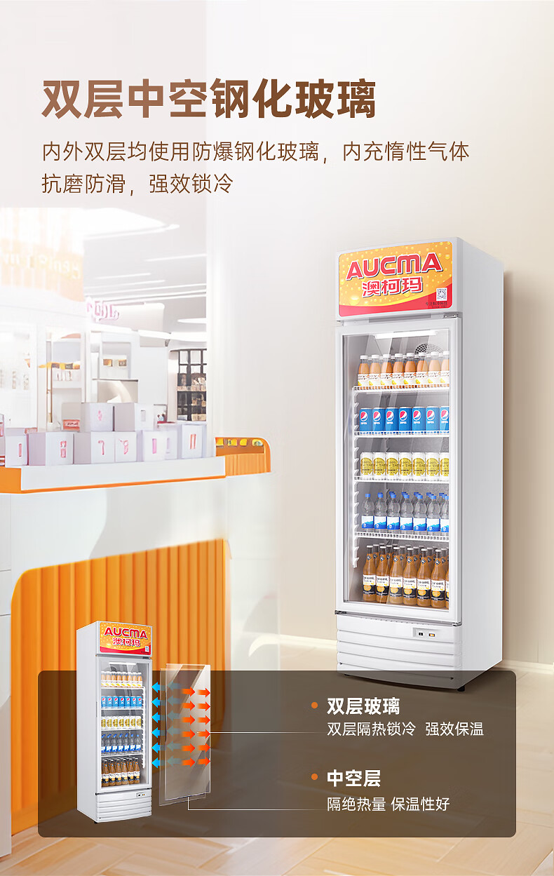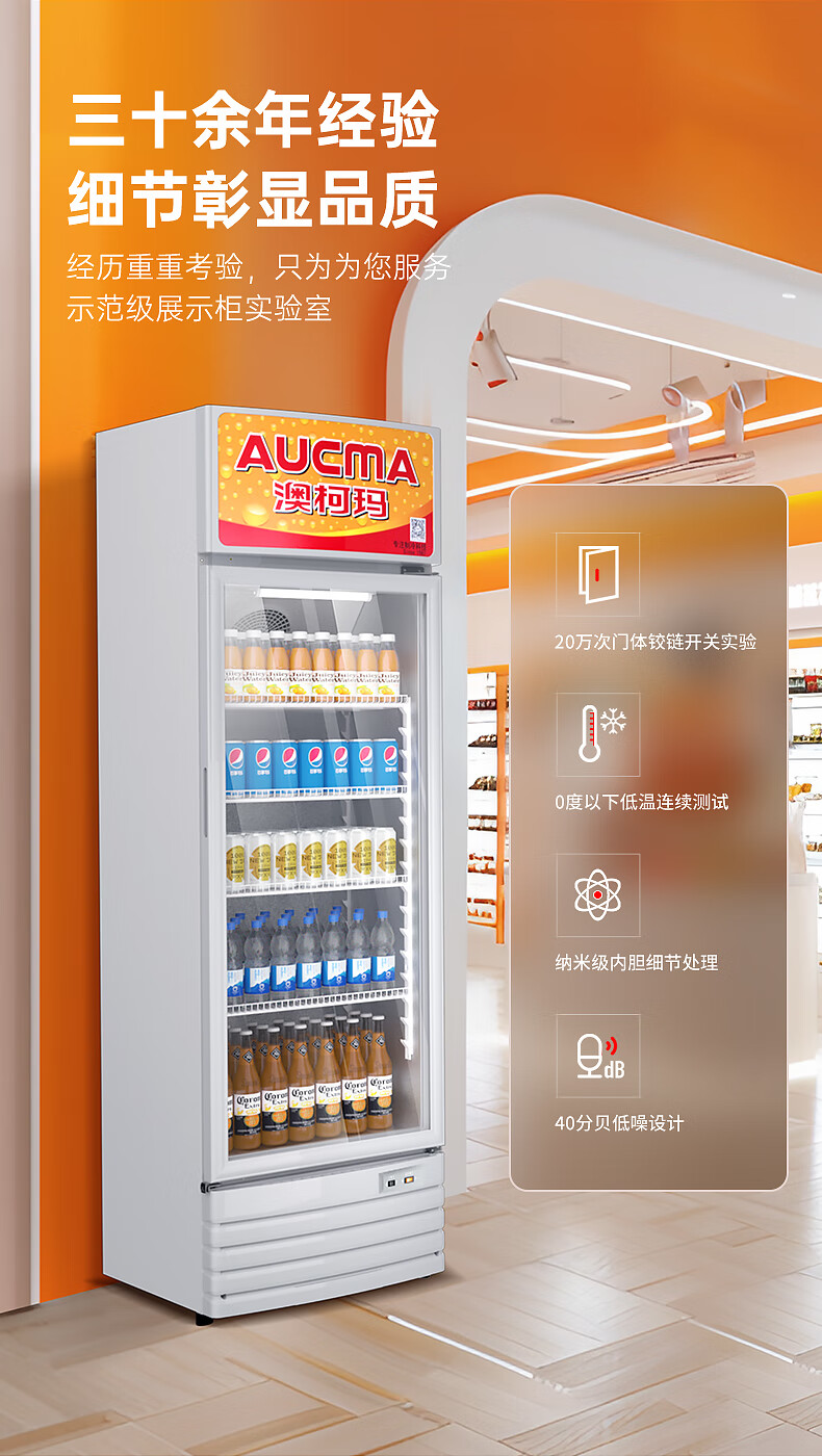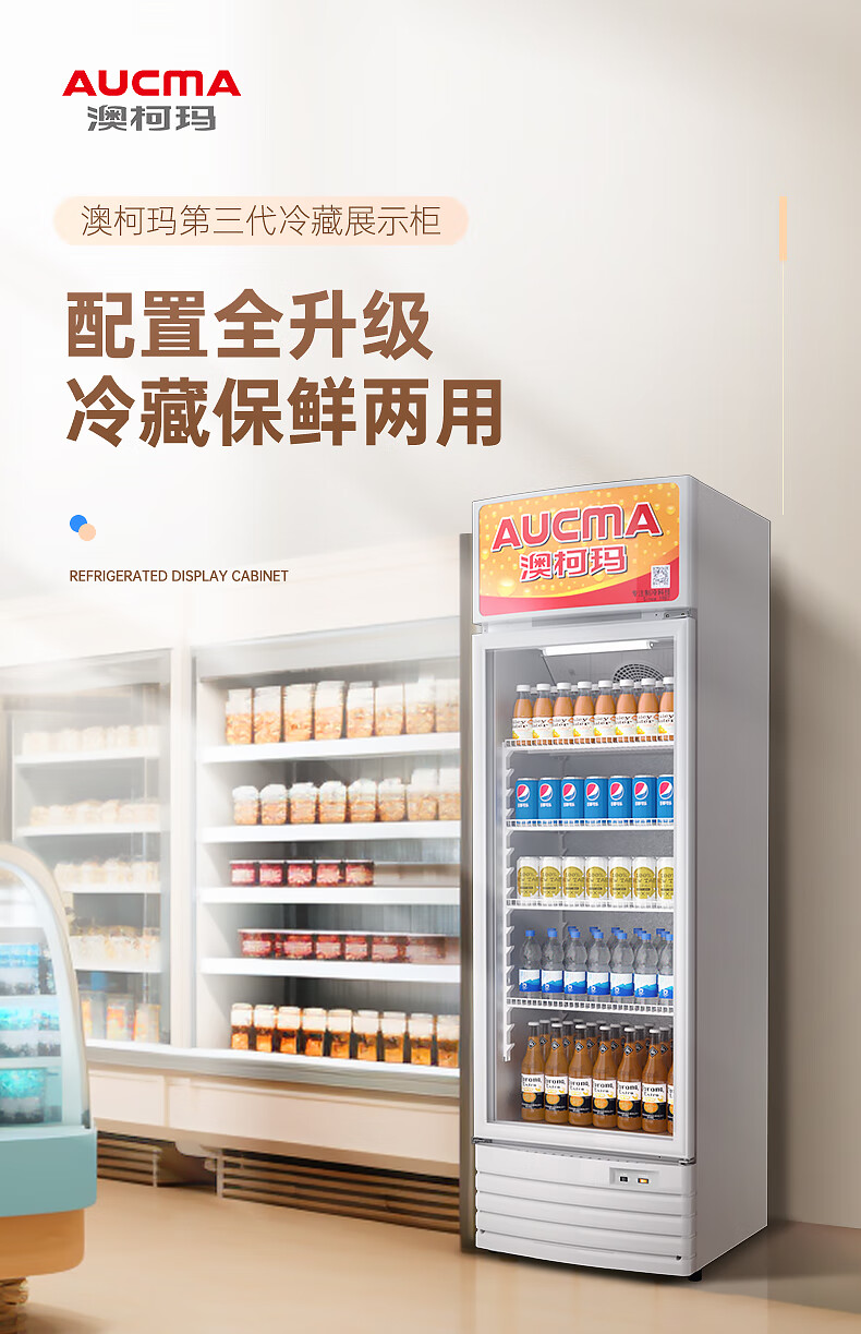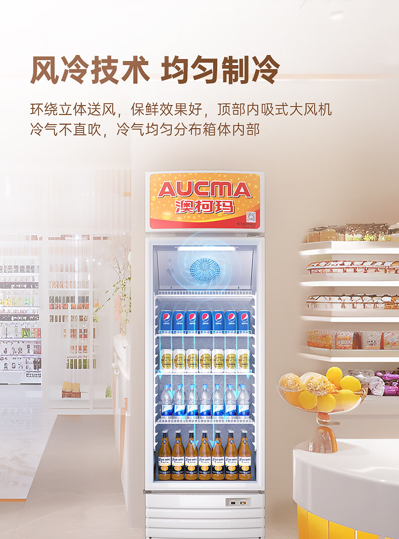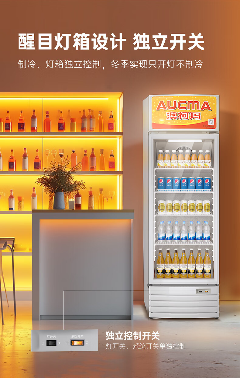 澳柯玛(AUCMA) 227升立式单门商用冷藏冰箱展示柜 超市饮料啤酒保鲜冷柜 冷饮茶叶陈列冰柜 SC-237