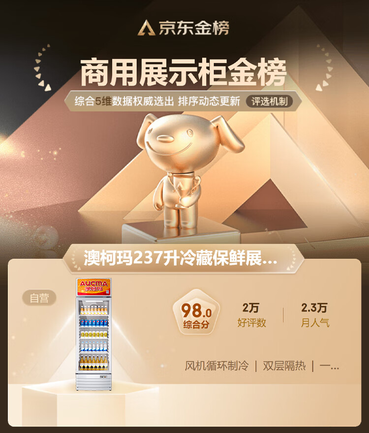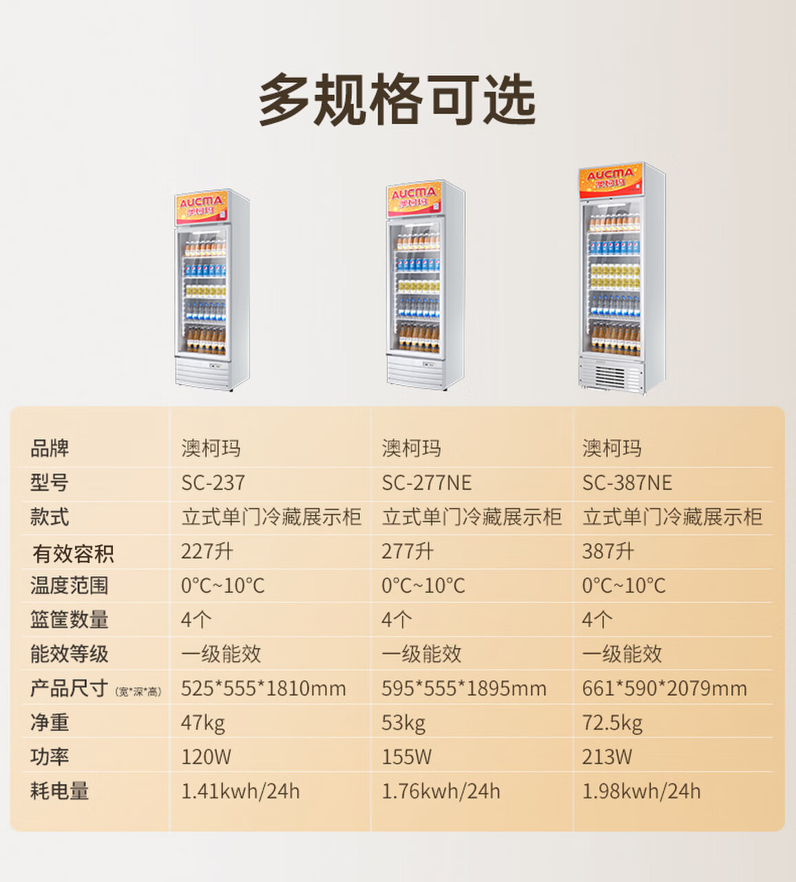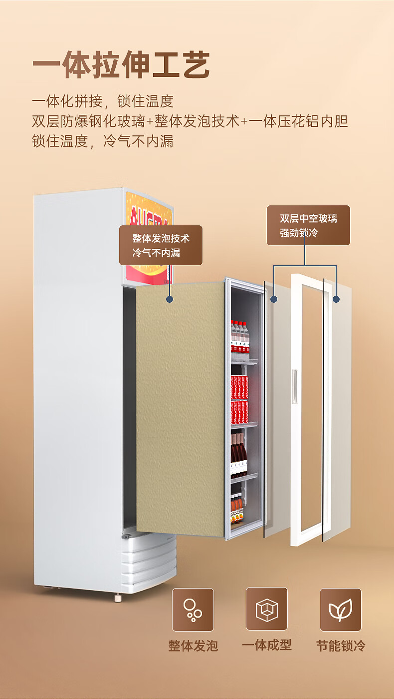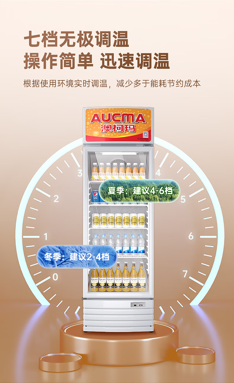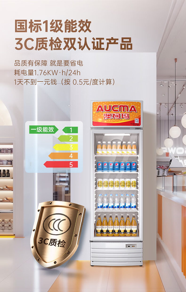 澳柯玛(AUCMA) 227升立式单门商用冷藏冰箱展示柜 超市饮料啤酒保鲜冷柜 冷饮茶叶陈列冰柜 SC-237