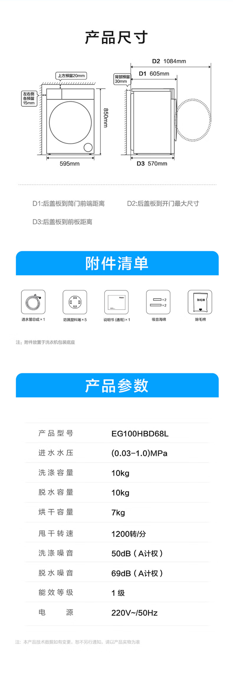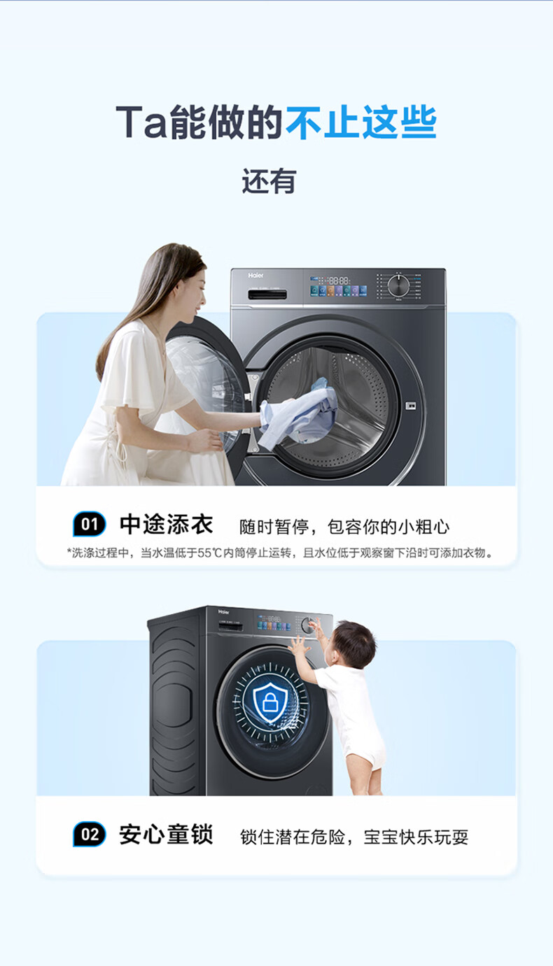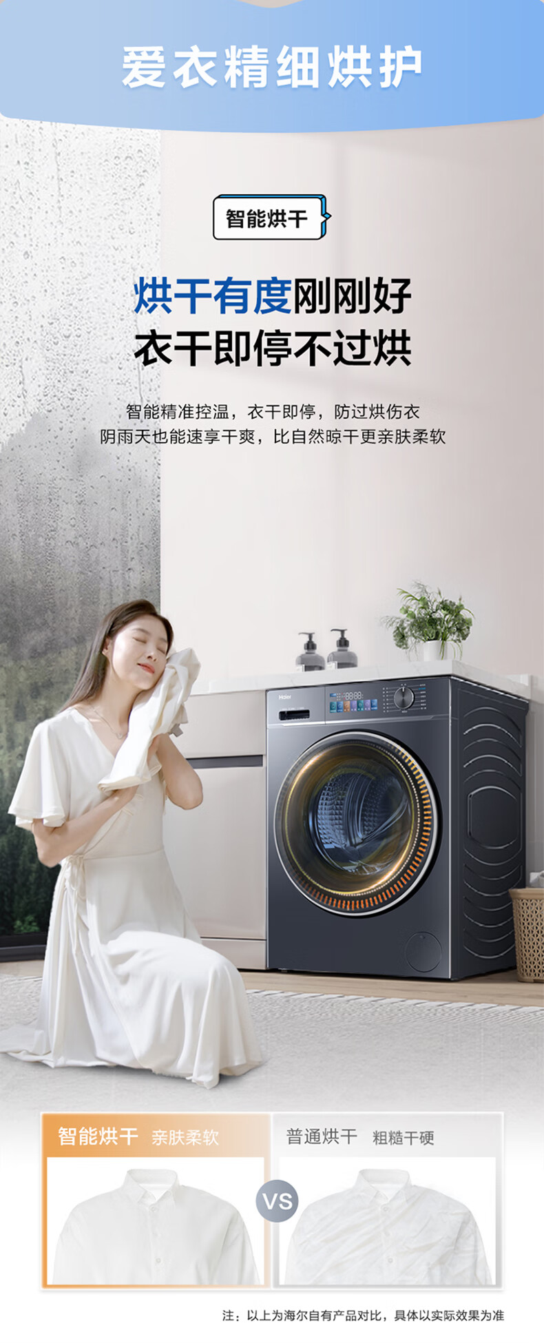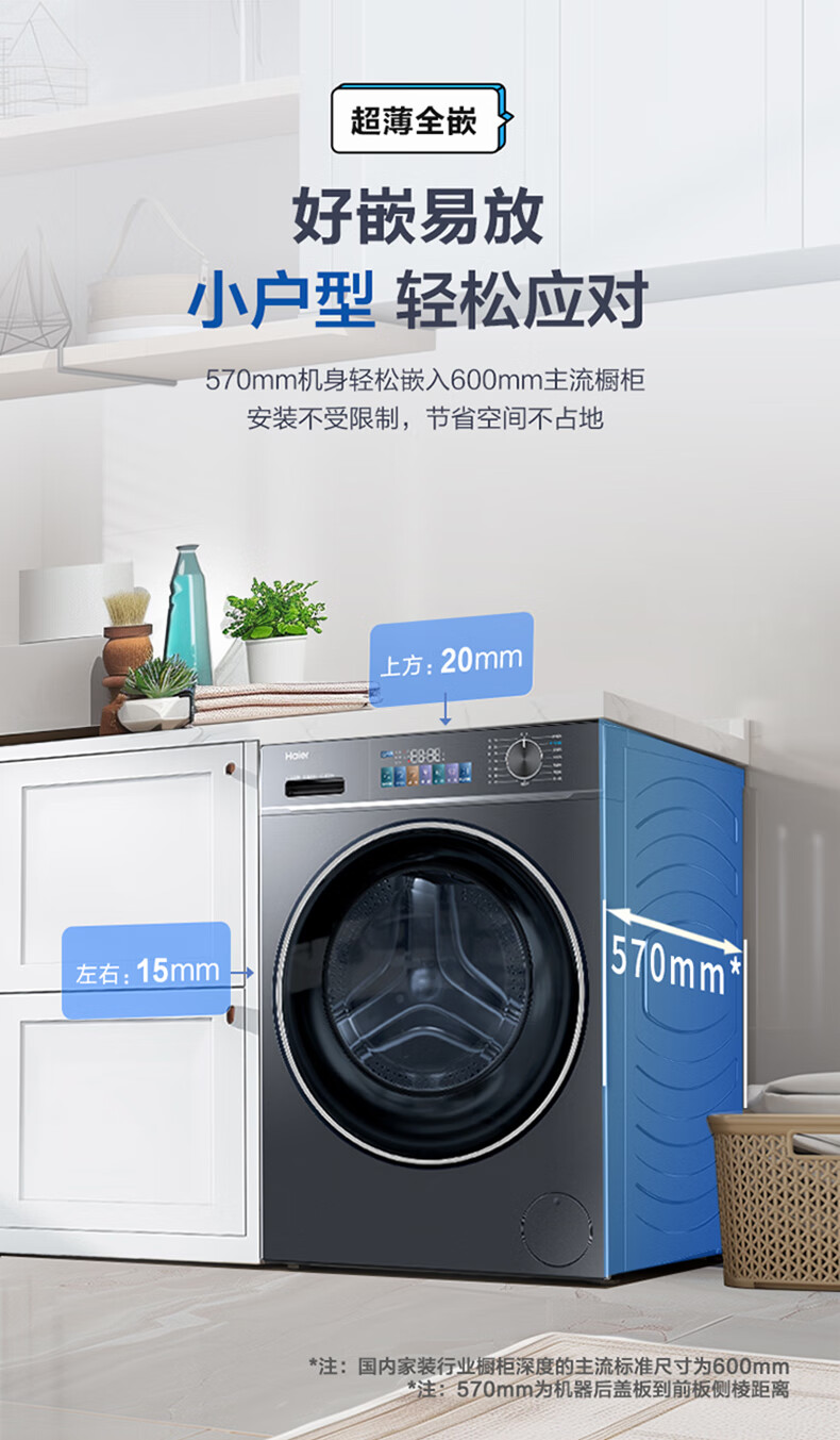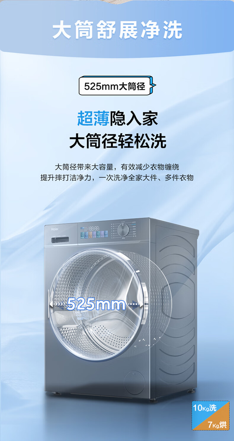 海尔(Haier)10kg超薄全嵌滚筒洗衣机全自动洗烘一体525大筒径智能投放除毛洗 双涡漩自清洁 纤美68L