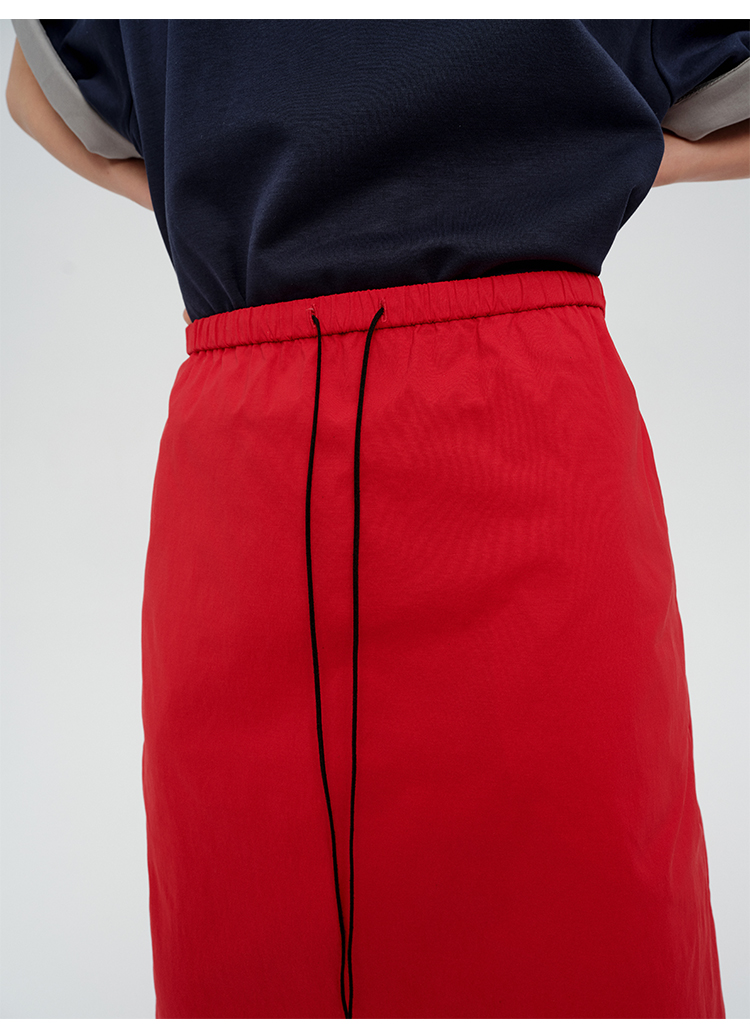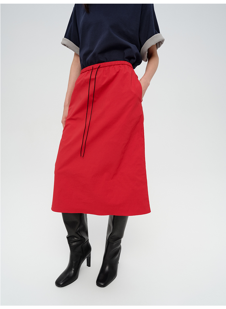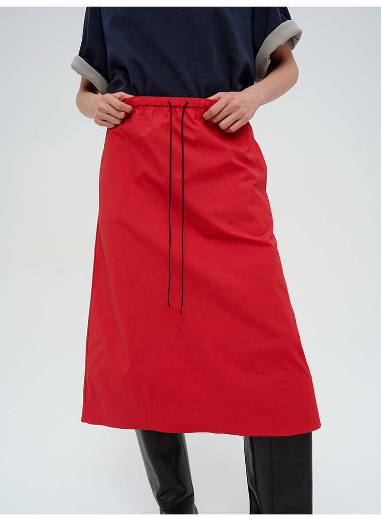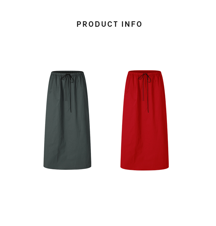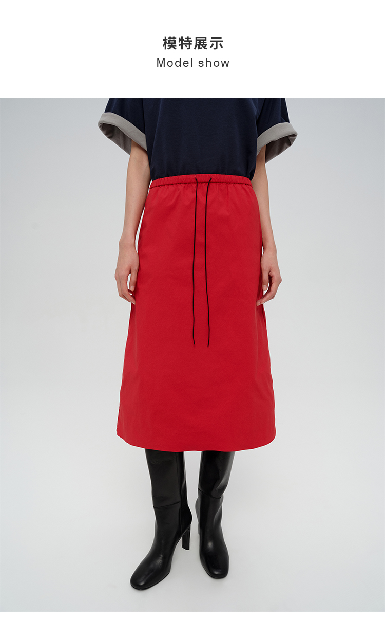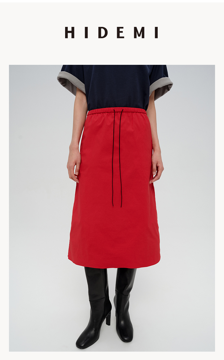 HIDEMI 极简麂皮抽绳松紧带干爽棉口袋休闲感半身裙 马斯正红/雾霾蓝灰