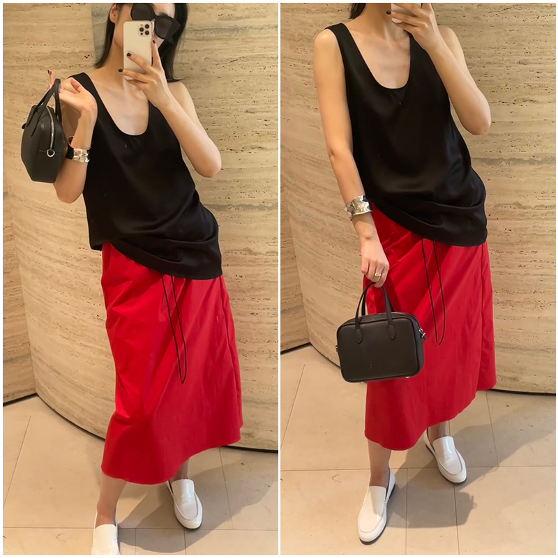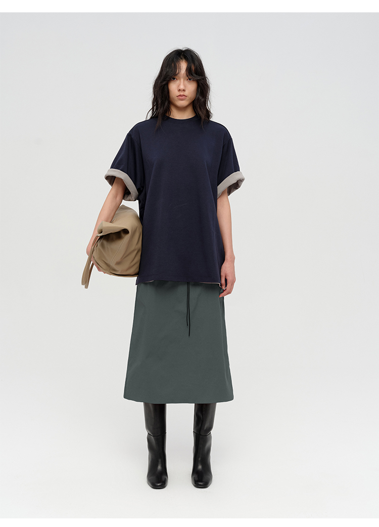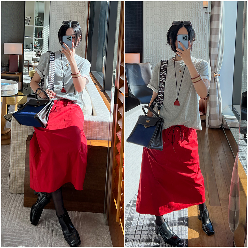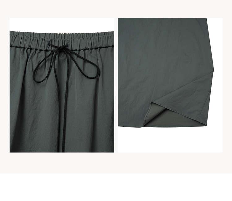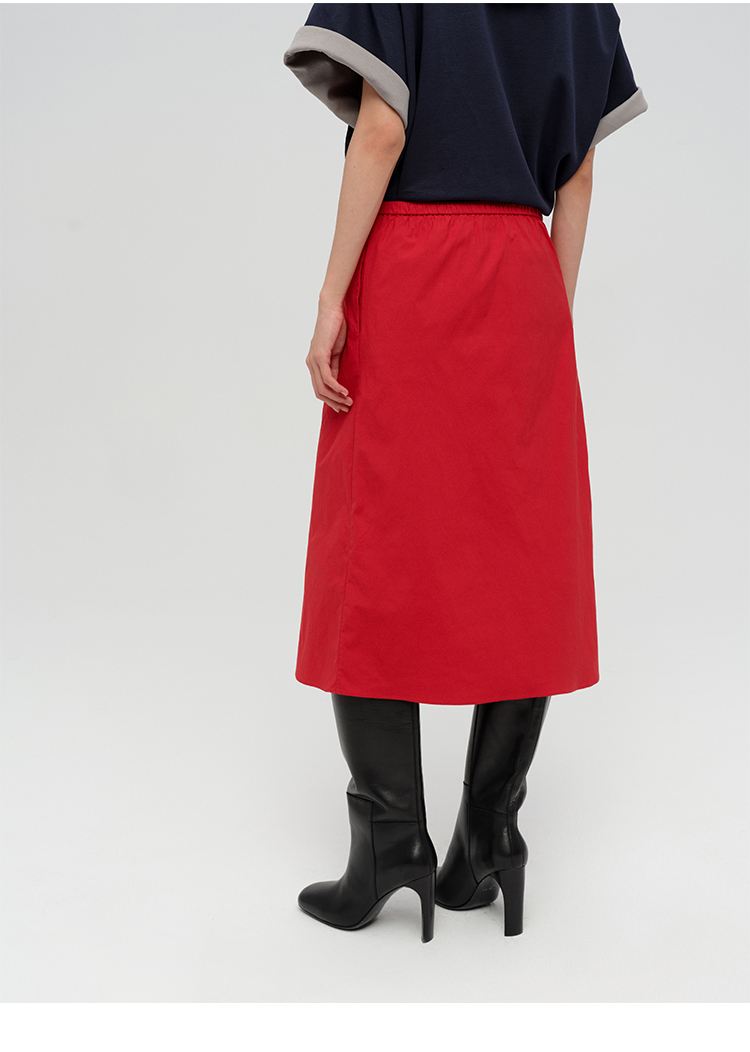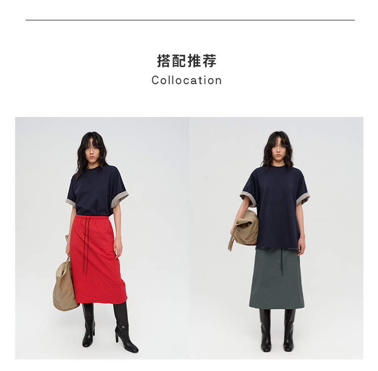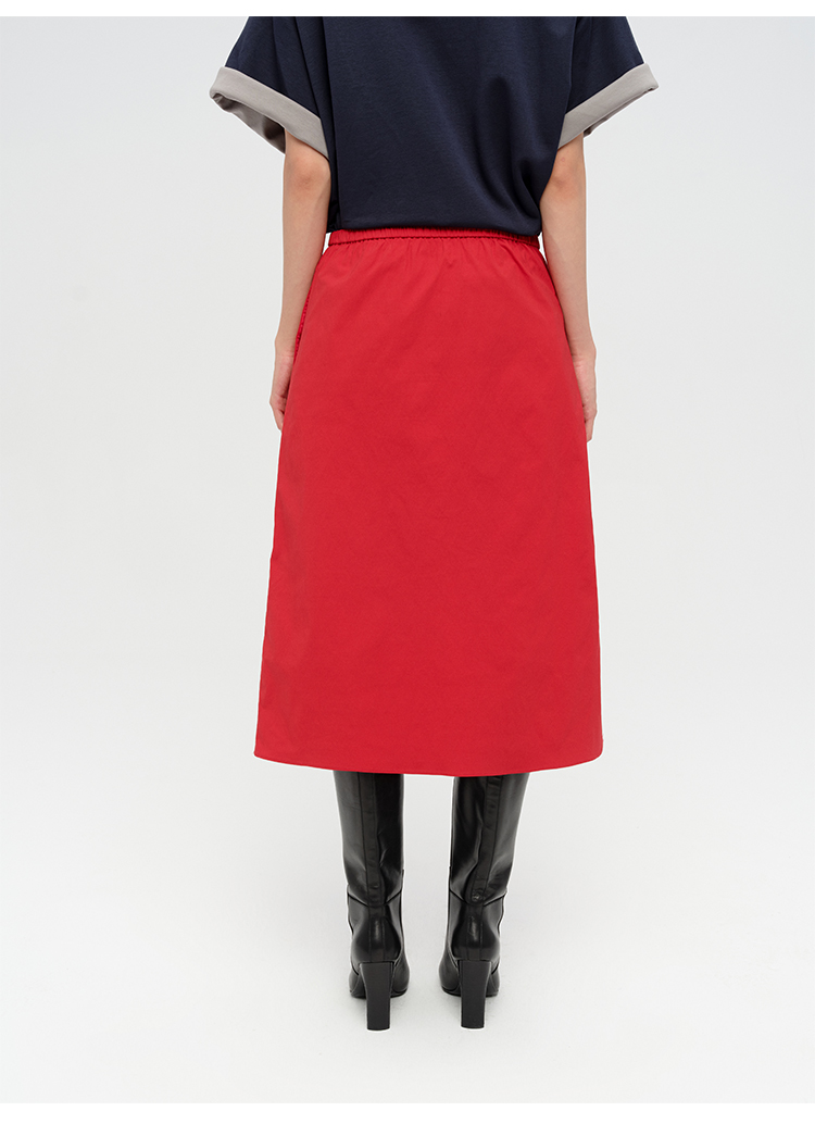 HIDEMI 极简麂皮抽绳松紧带干爽棉口袋休闲感半身裙 马斯正红/雾霾蓝灰