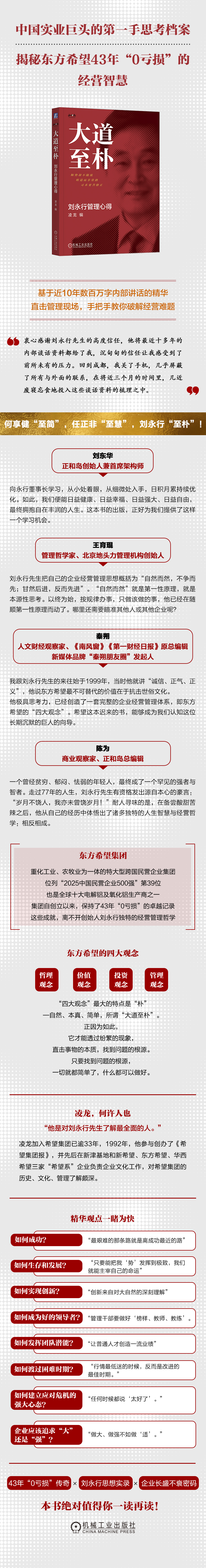 为系统呈现刘永行”大道至朴”的管理智慧,资深媒体人凌龙长期跟踪研究,从数百万字素材中萃取精华,以时间为脉络,“原汁原味”地展示了刘永行“现场主义”的管理实践。书中的大量内容源自刘永行在旗下各公司检查指导工作时的即席谈话,强烈的实践性与现场感,对企业管理者极具借鉴价值。