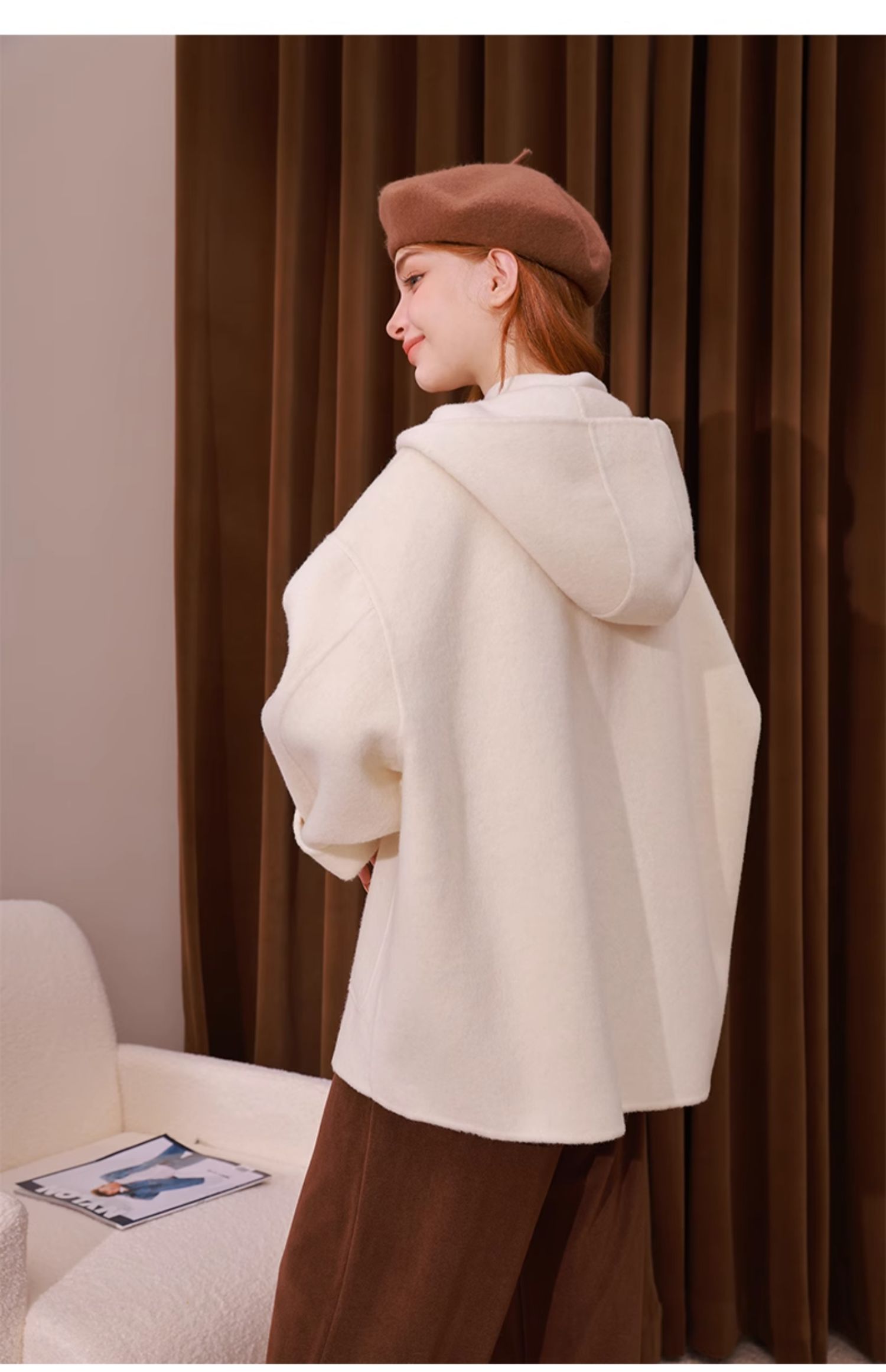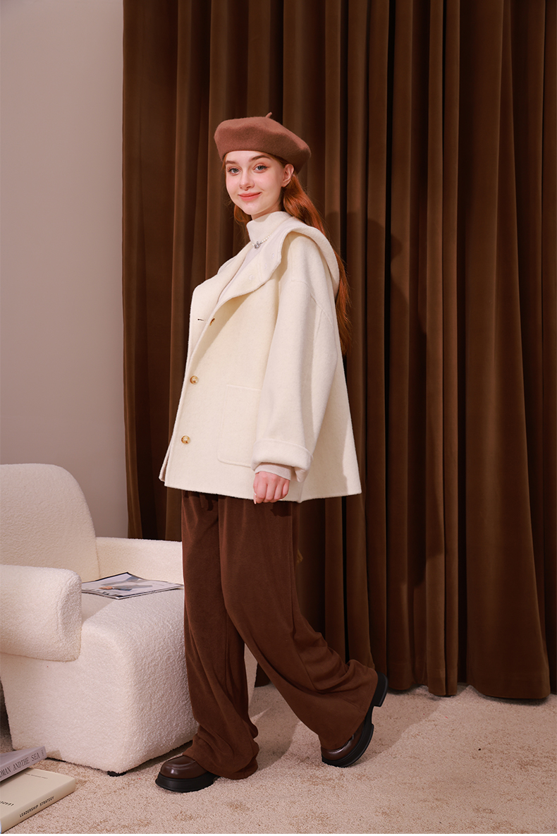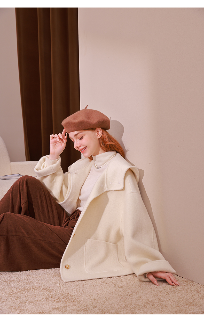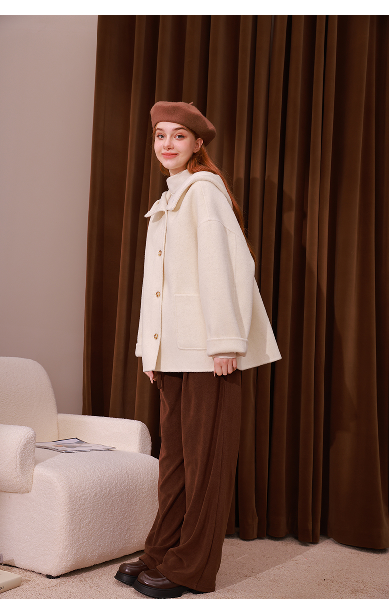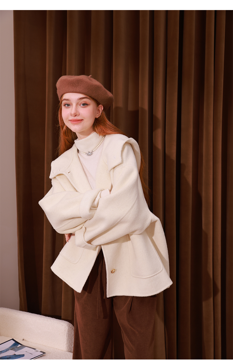 mc2单排扣双面羊绒气质呢大衣女2023秋冬新款时尚连帽温柔高级感