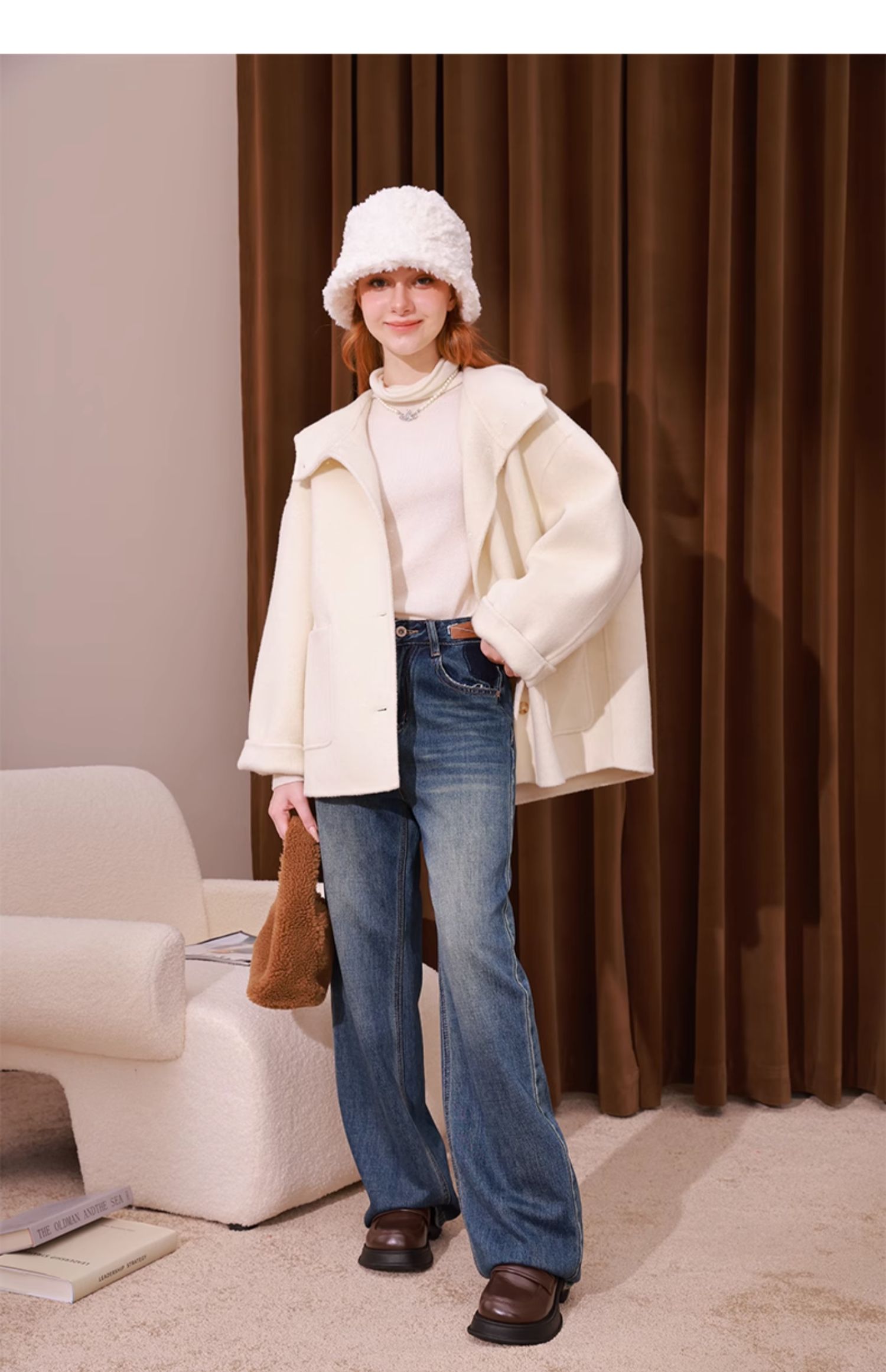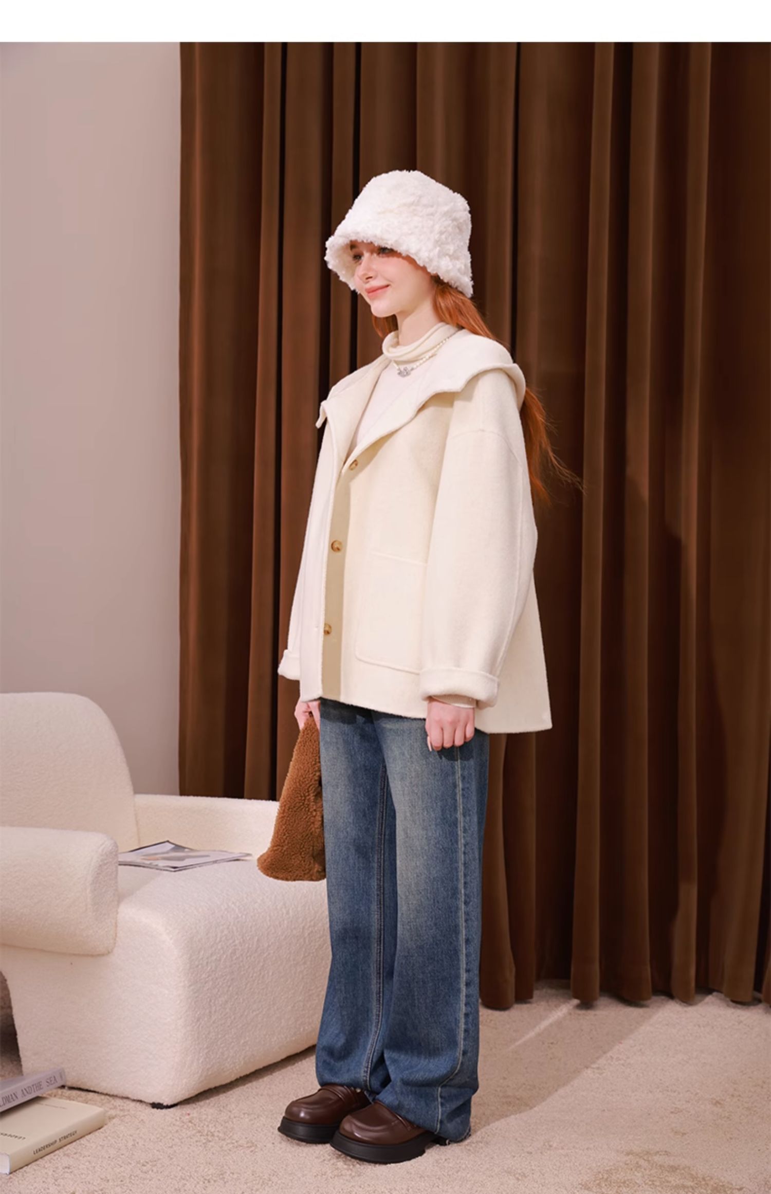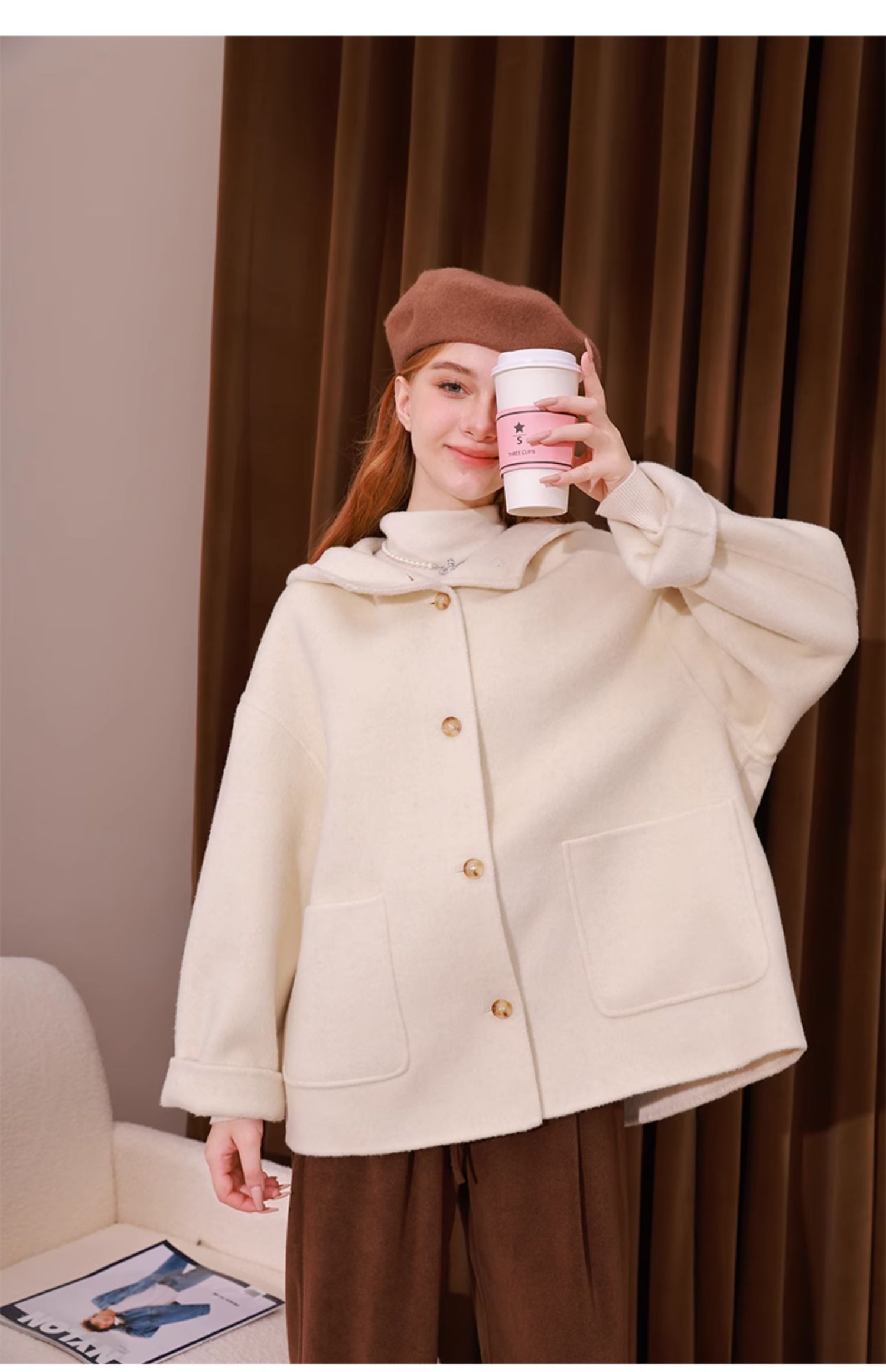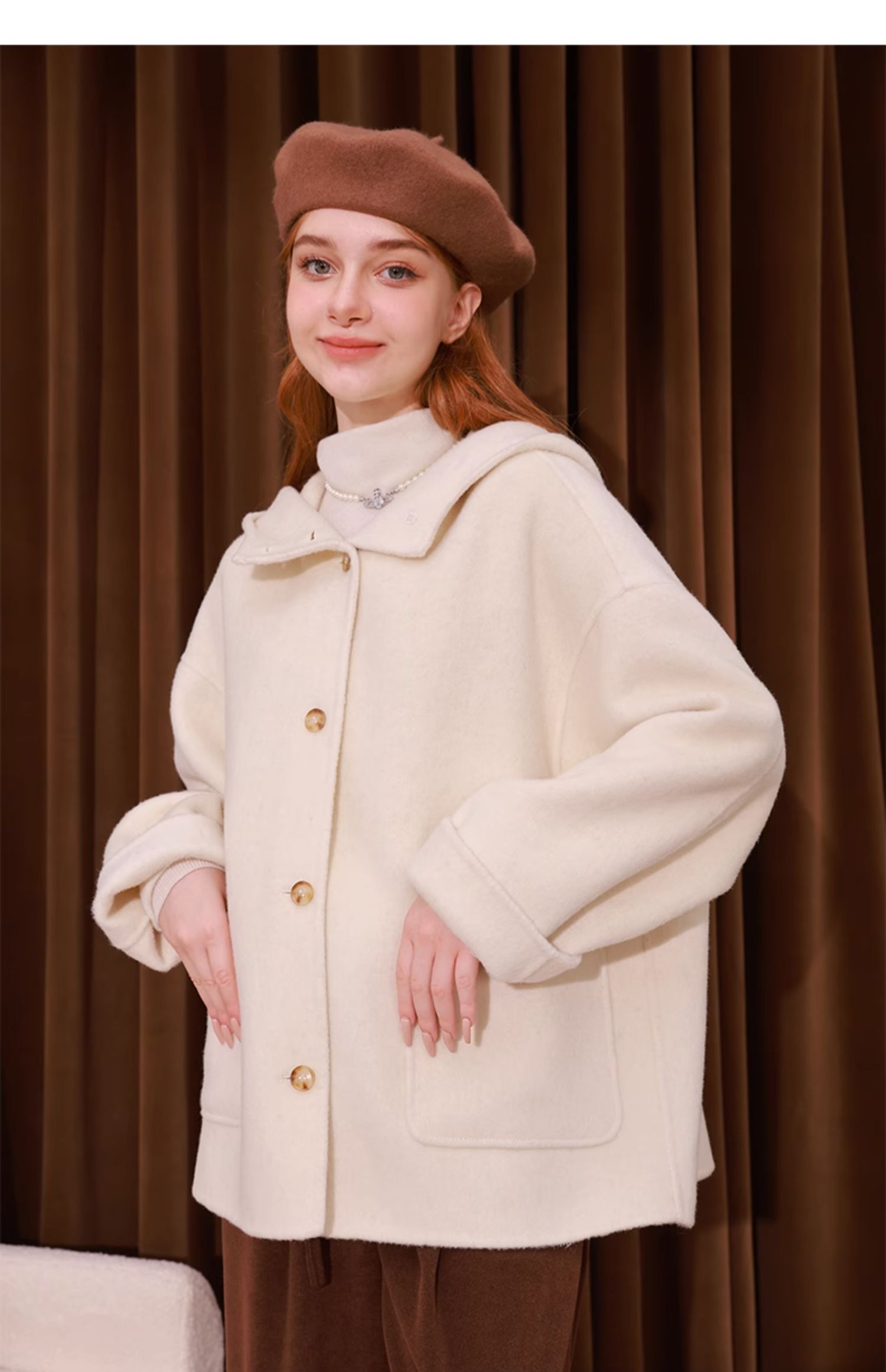 mc2单排扣双面羊绒气质呢大衣女2023秋冬新款时尚连帽温柔高级感