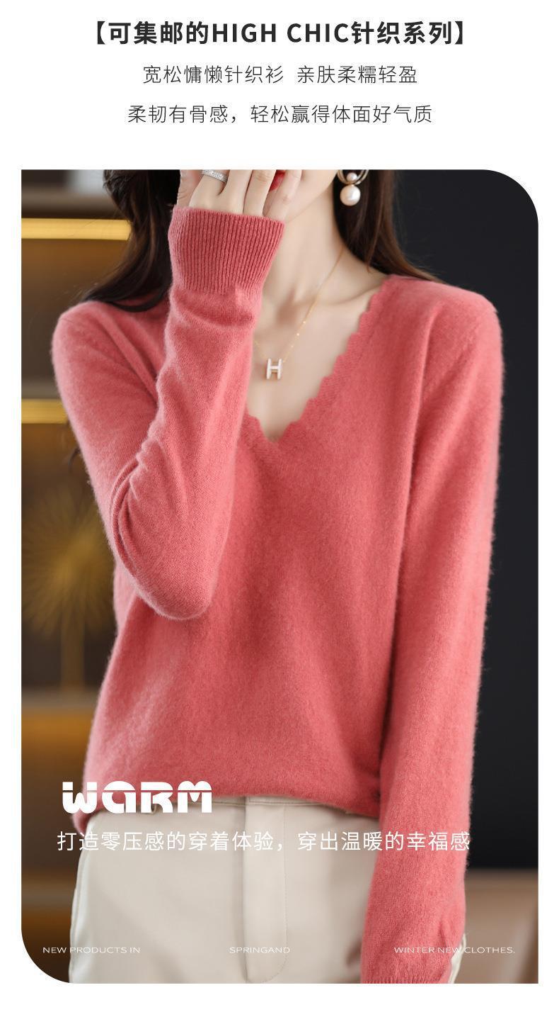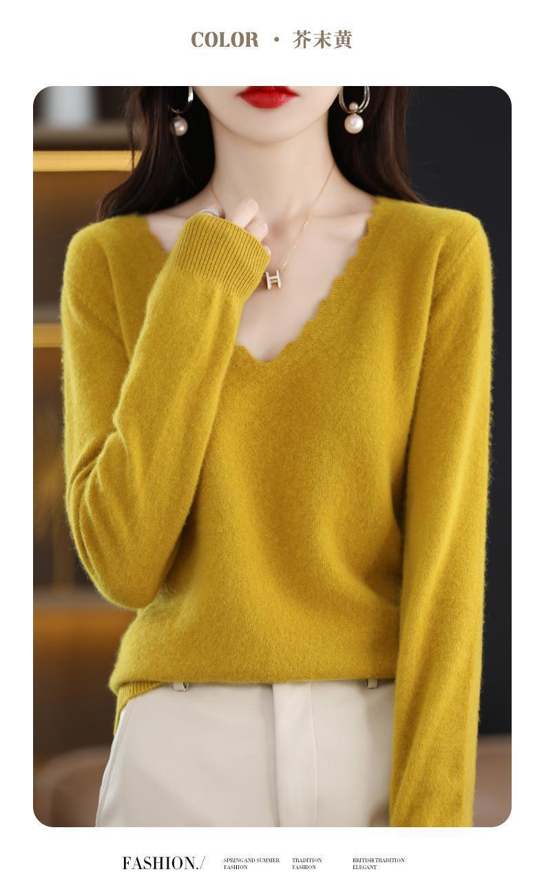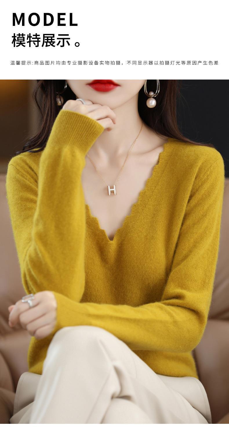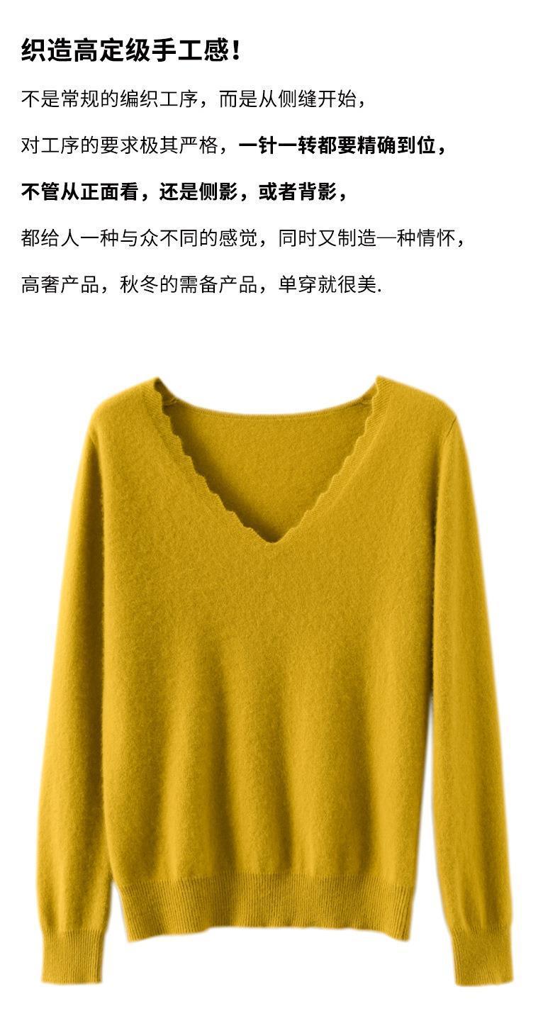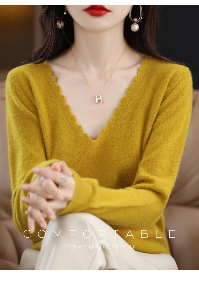 绿色性感毛衣花边V领女款长袖针织衫宽松显瘦打底衫纯色显瘦上衣