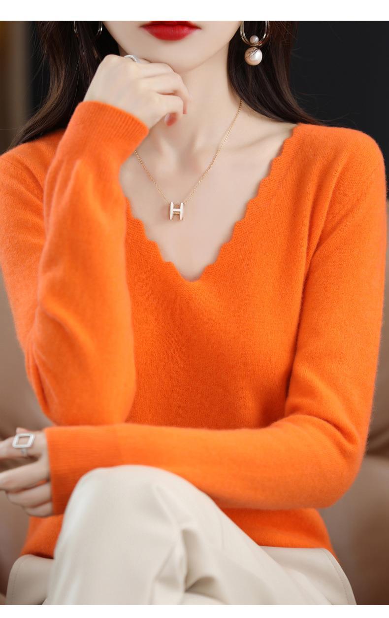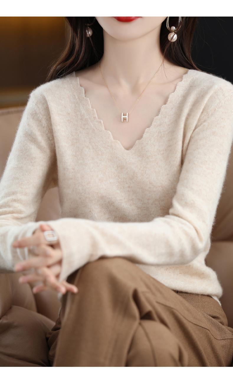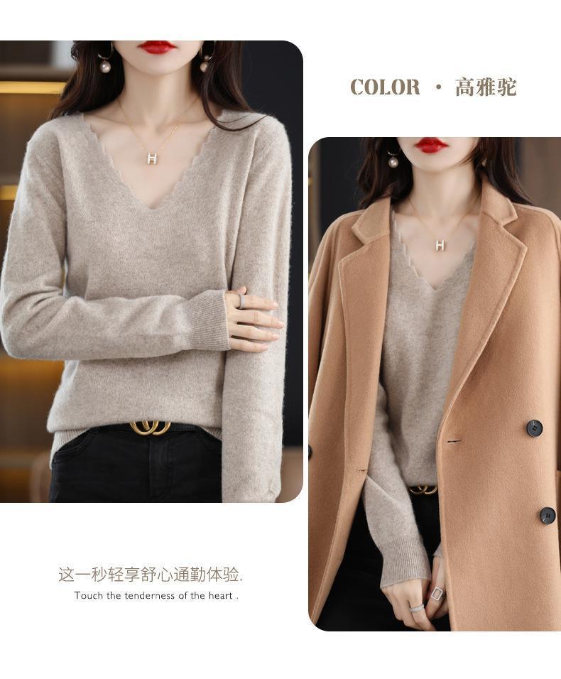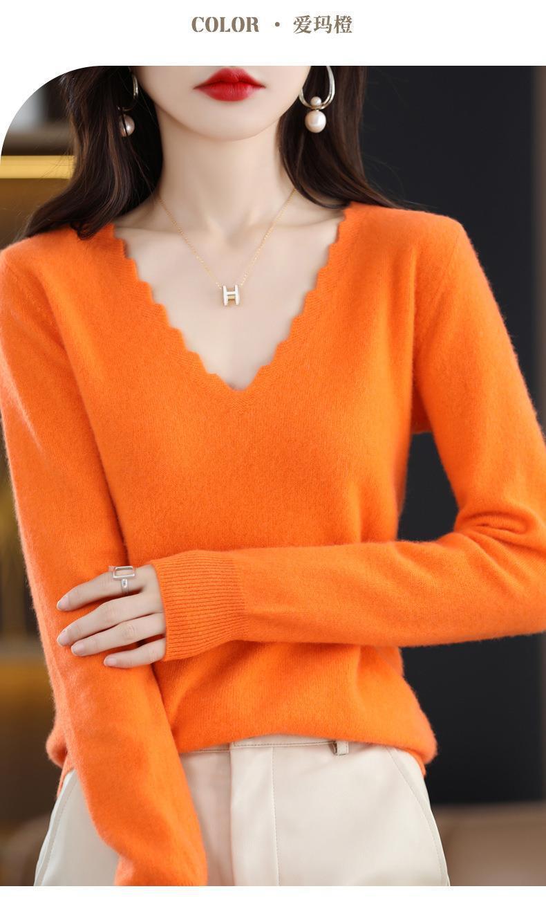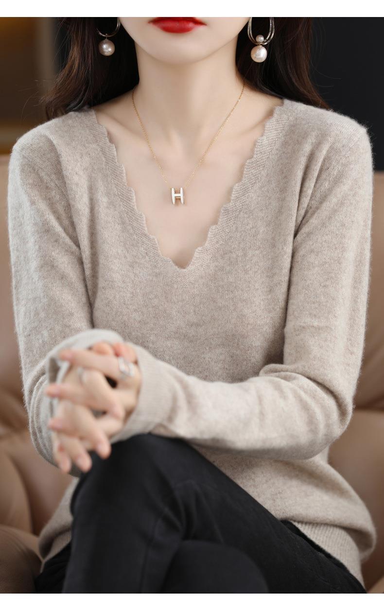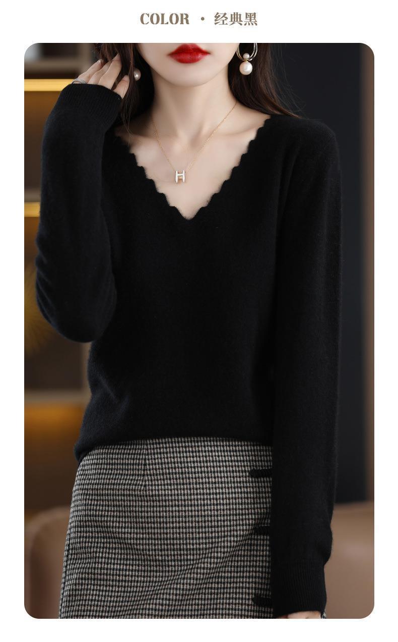 绿色性感毛衣花边V领女款长袖针织衫宽松显瘦打底衫纯色显瘦上衣
